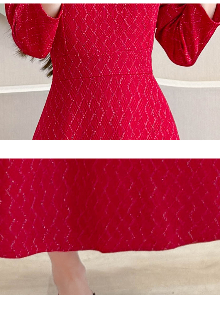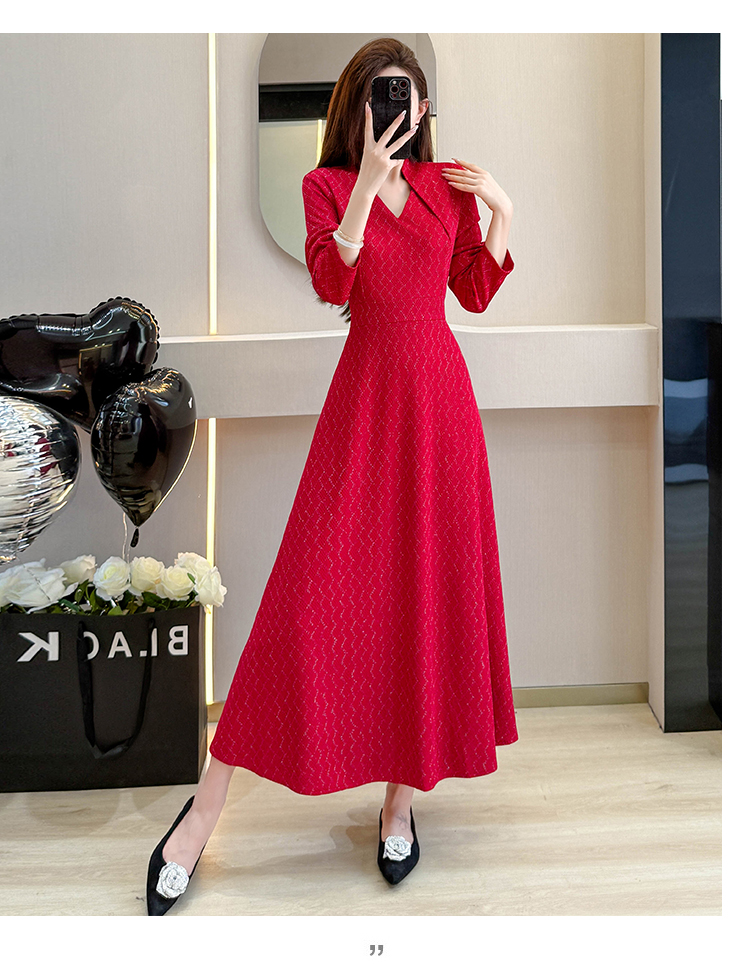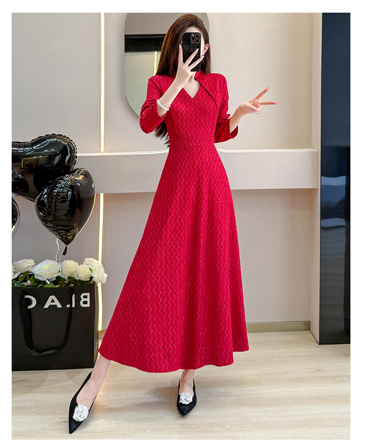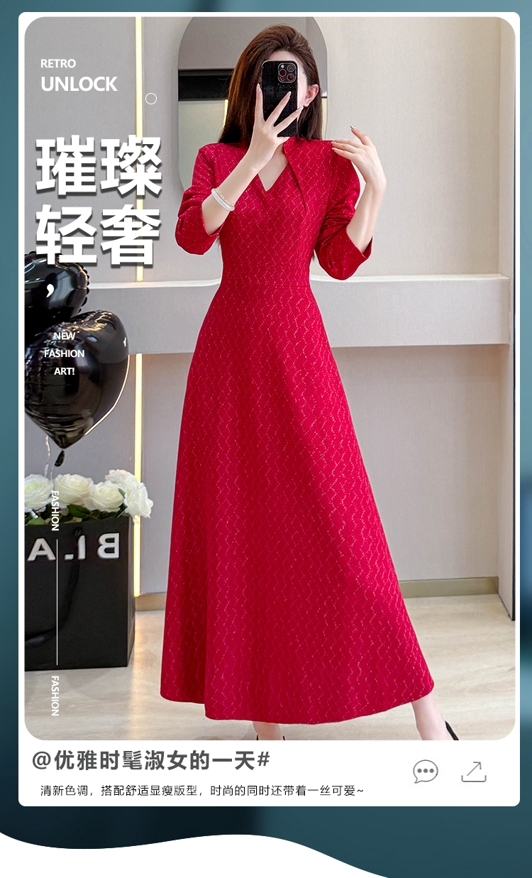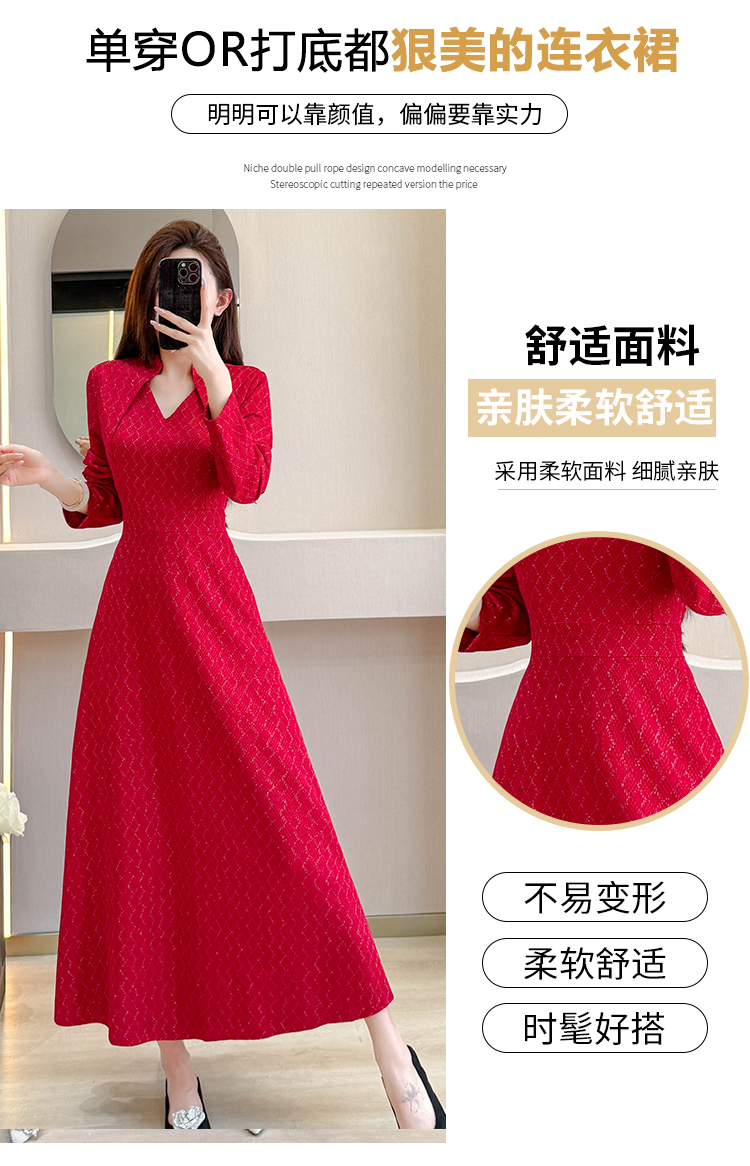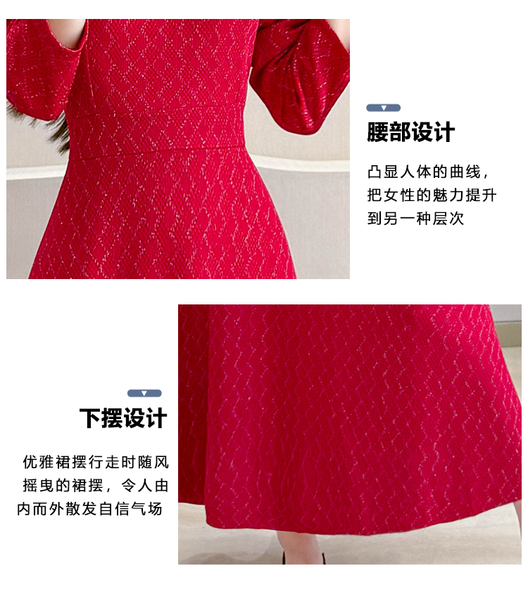 MY15311# 红色连衣裙新款高级感气质显瘦裙子女提花长款连身裙女裝貨源服裝批發