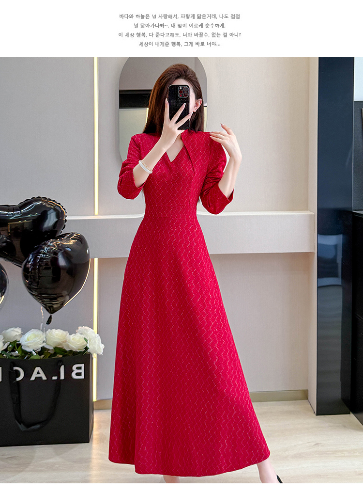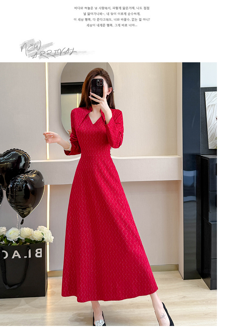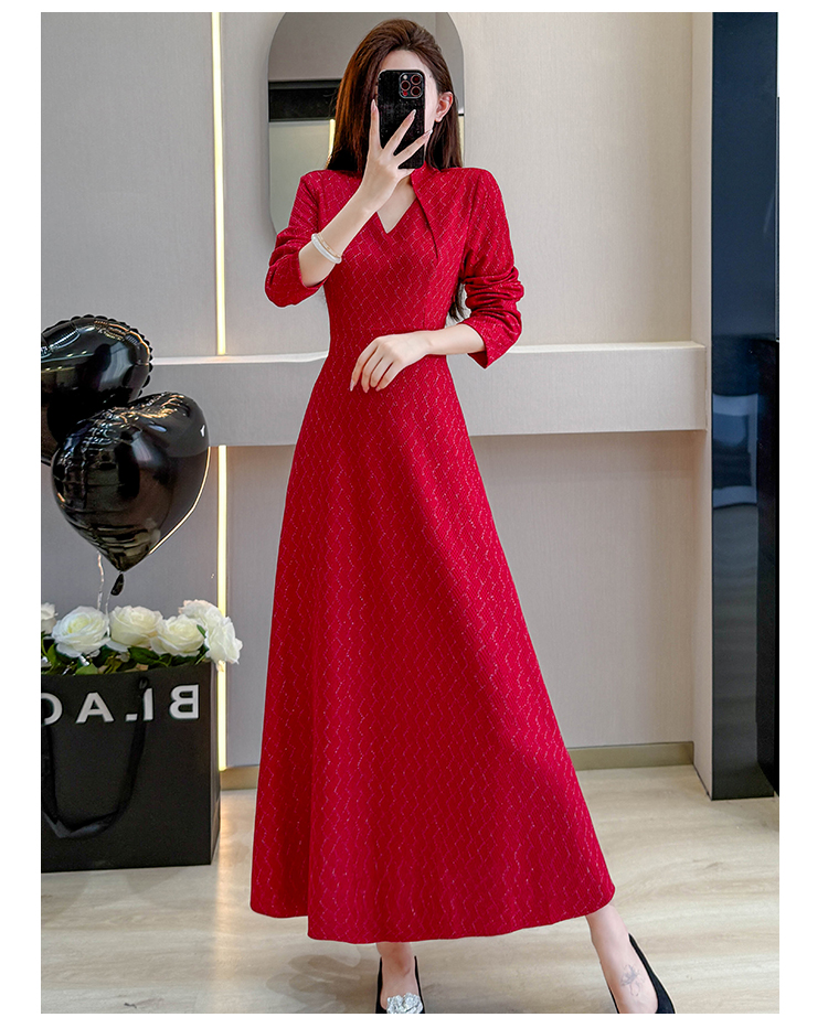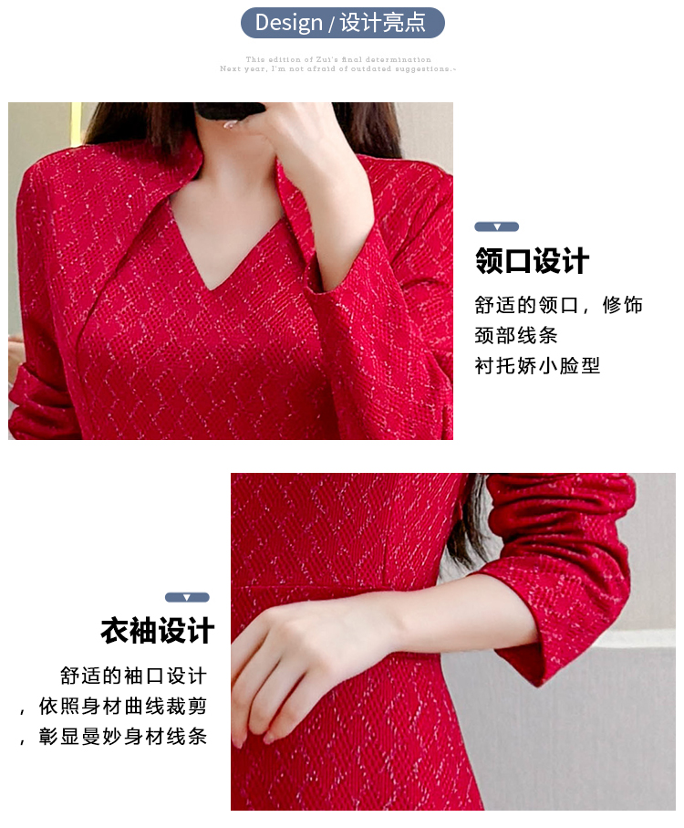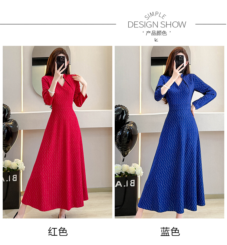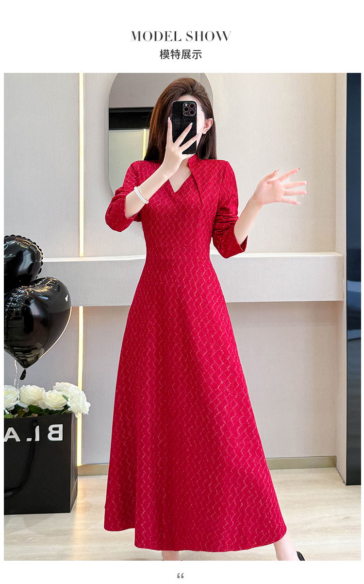 MY15311# 红色连衣裙新款高级感气质显瘦裙子女提花长款连身裙女裝貨源服裝批發