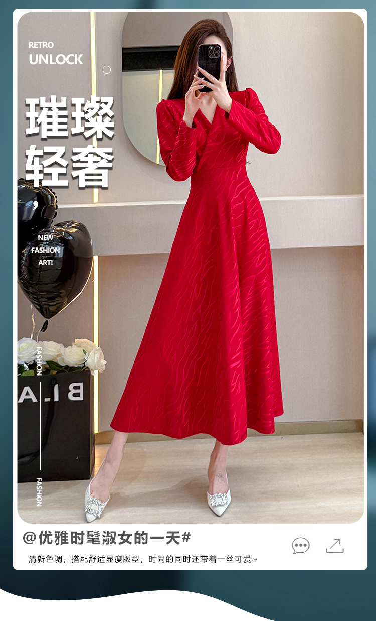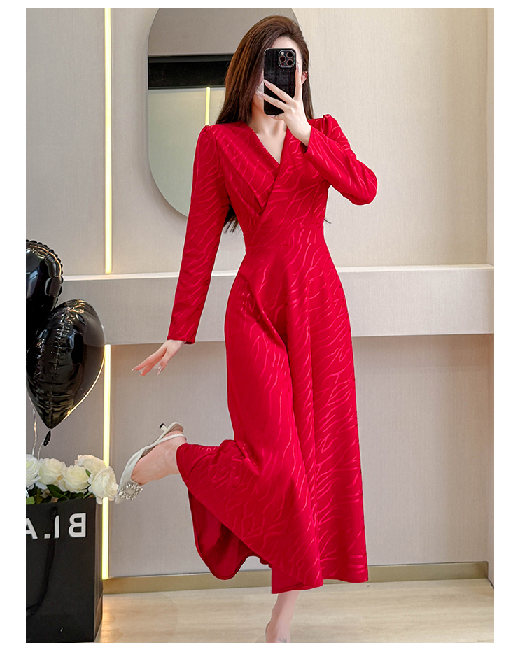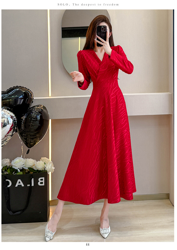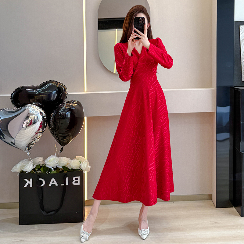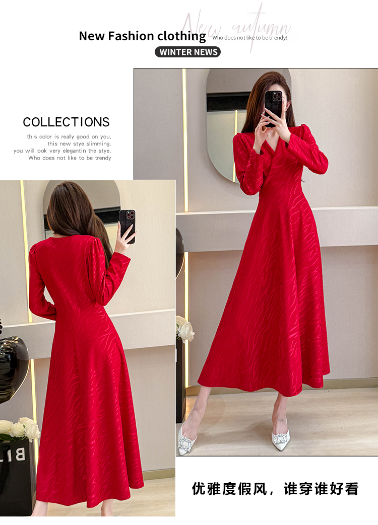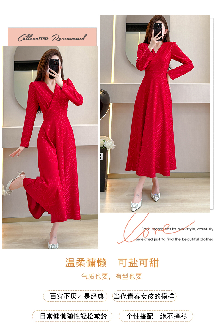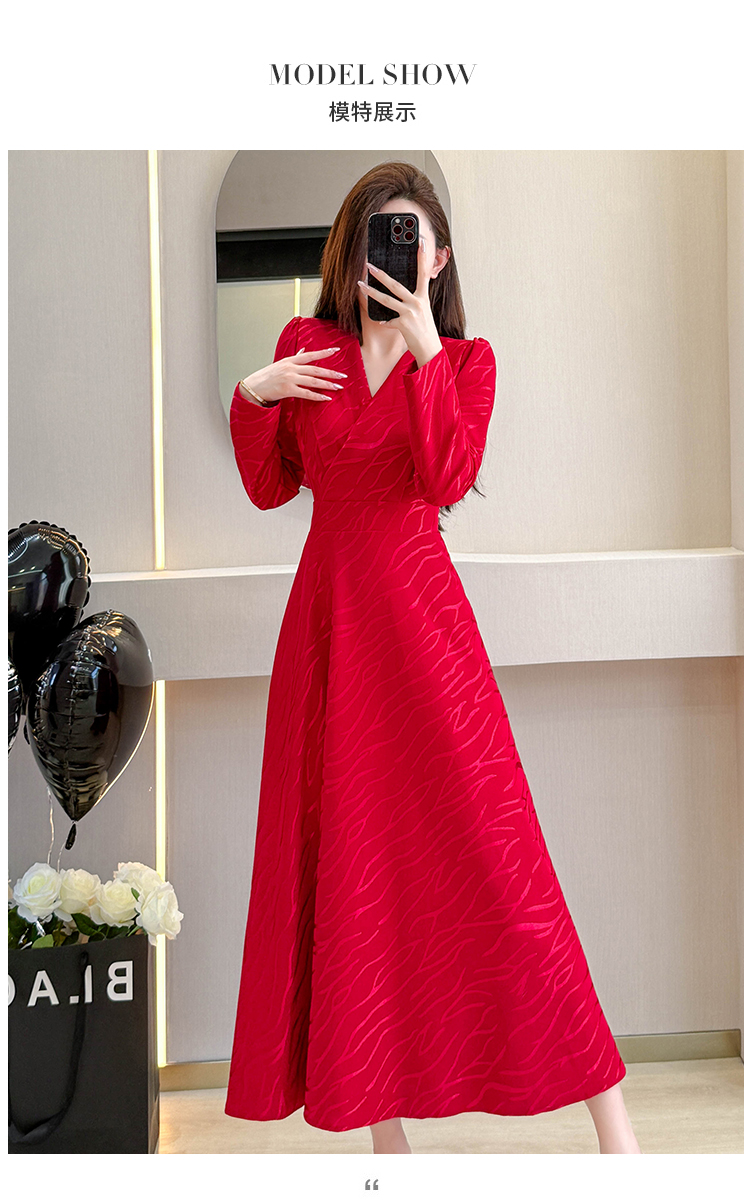 MY15312# 红色婚宴装连衣裙穿搭气质显瘦超长裙连身裙女裝貨源服裝批發