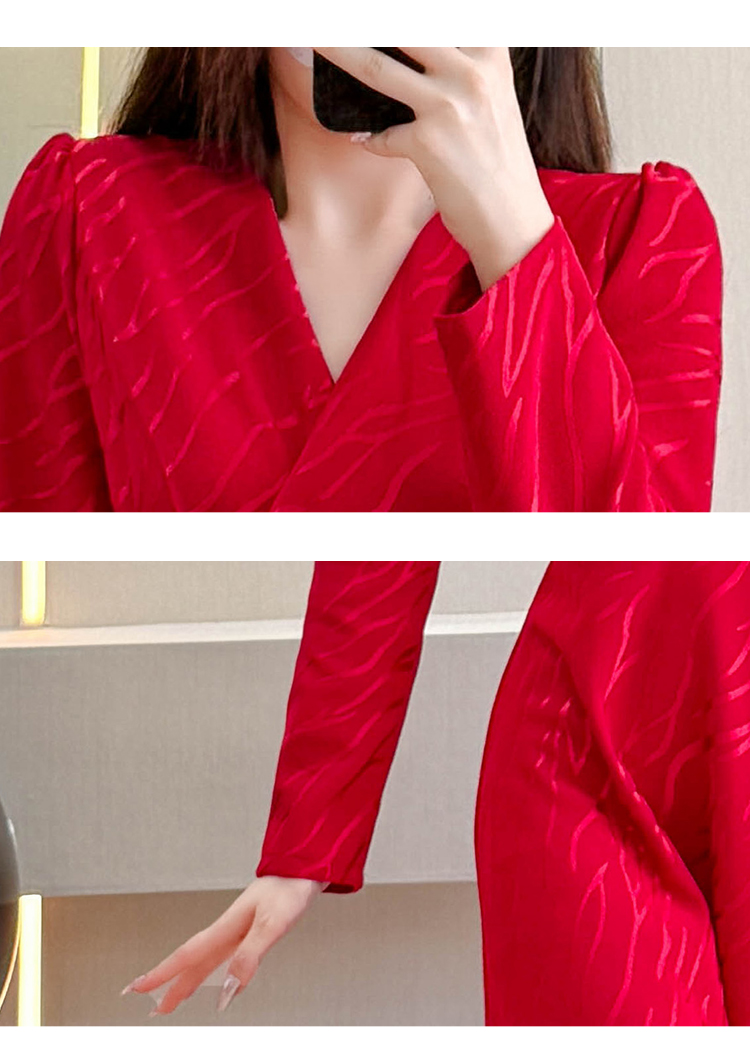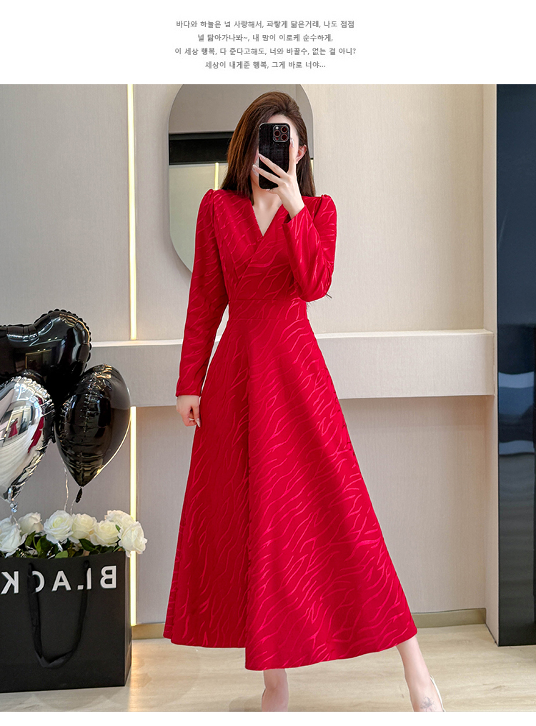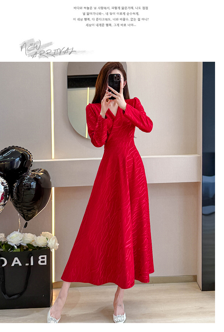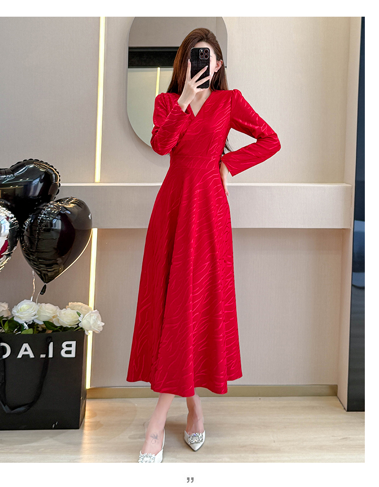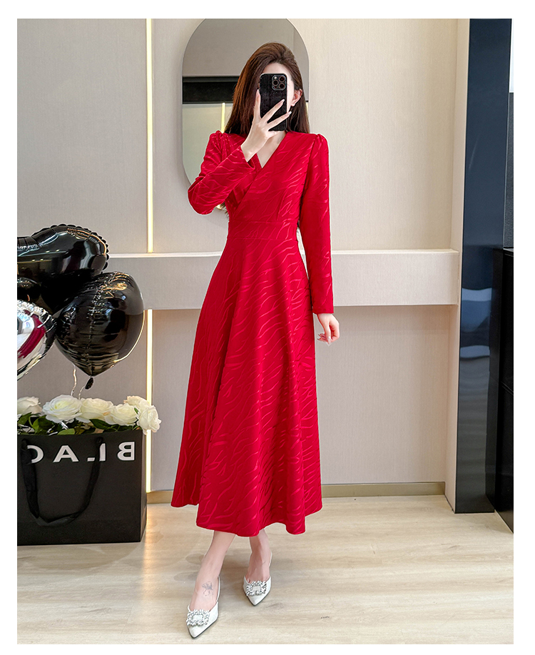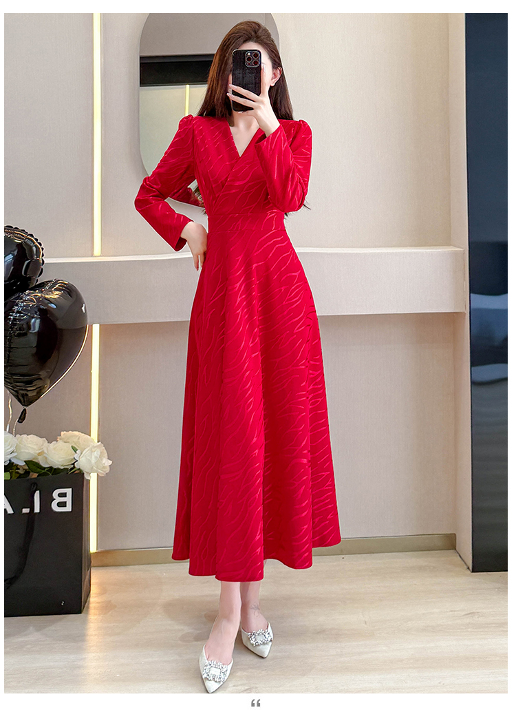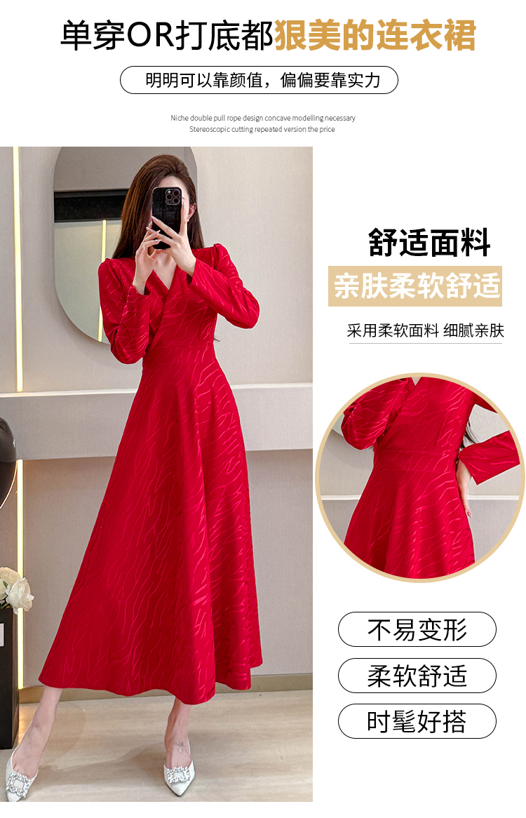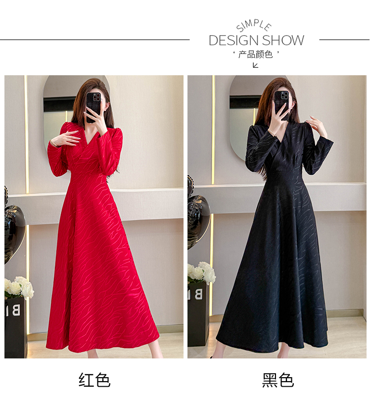 MY15312# 红色婚宴装连衣裙穿搭气质显瘦超长裙连身裙女裝貨源服裝批發
