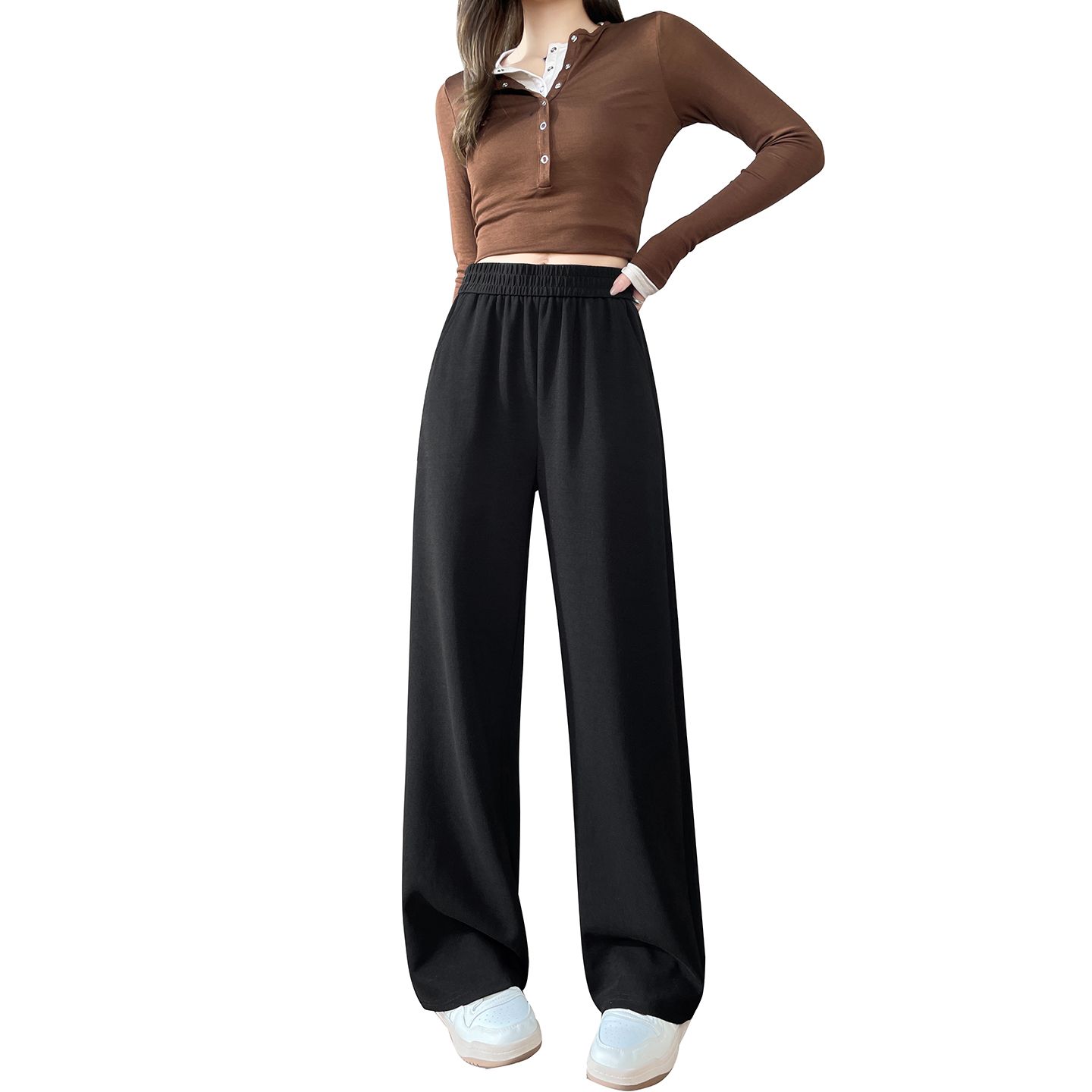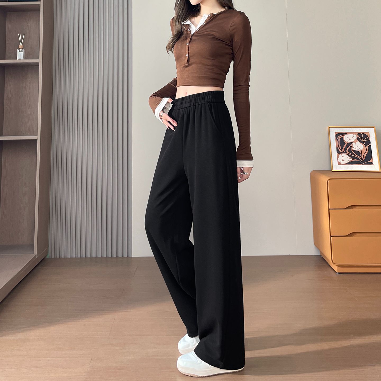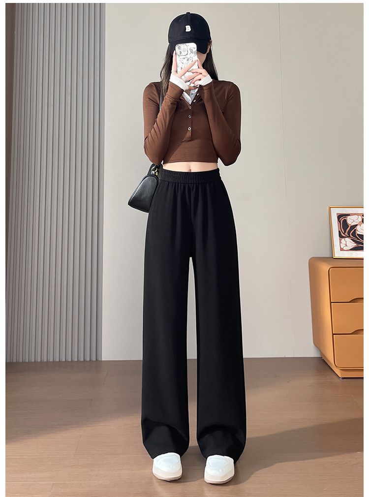 MY15332# 小个子休闲直筒裤新款高腰显瘦窄版阔腿裤女裝貨源服裝批發