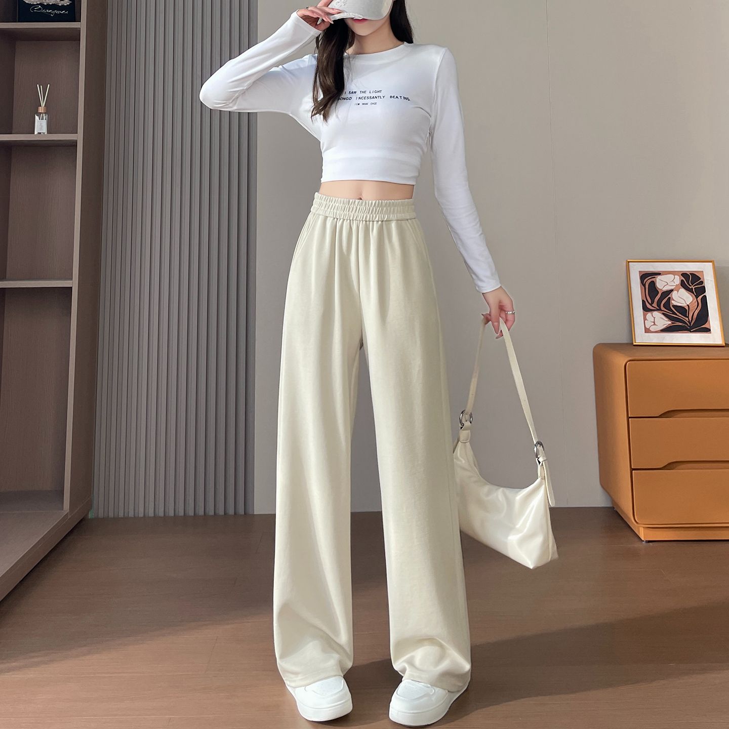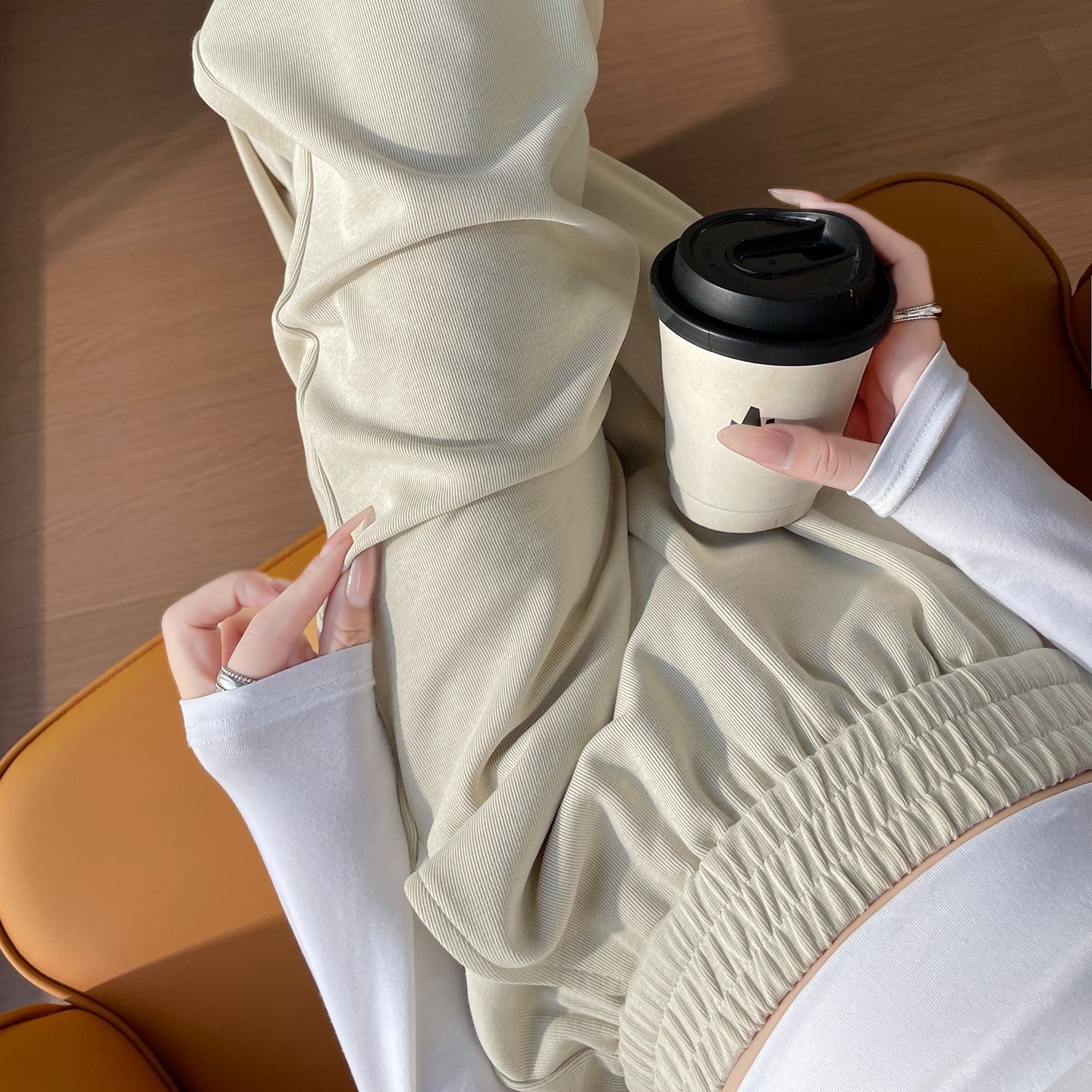 杏色长裤