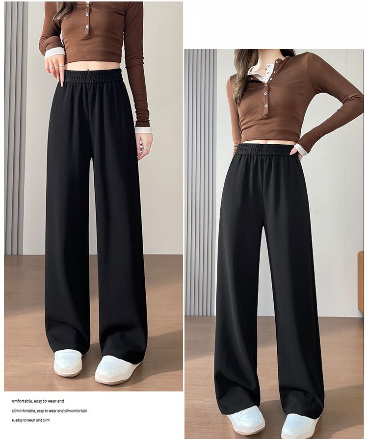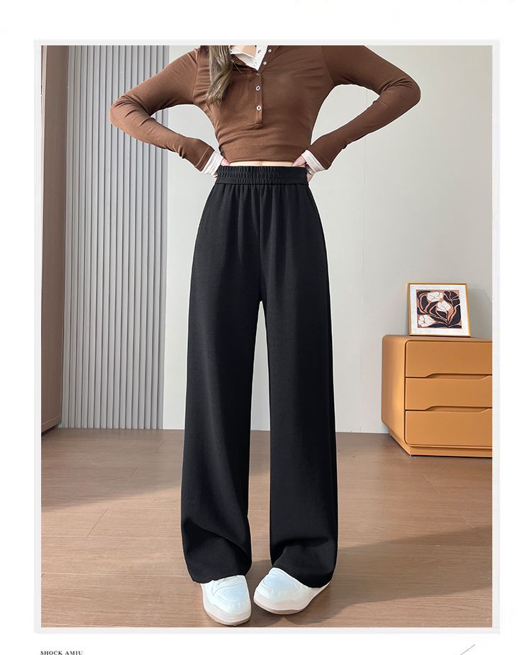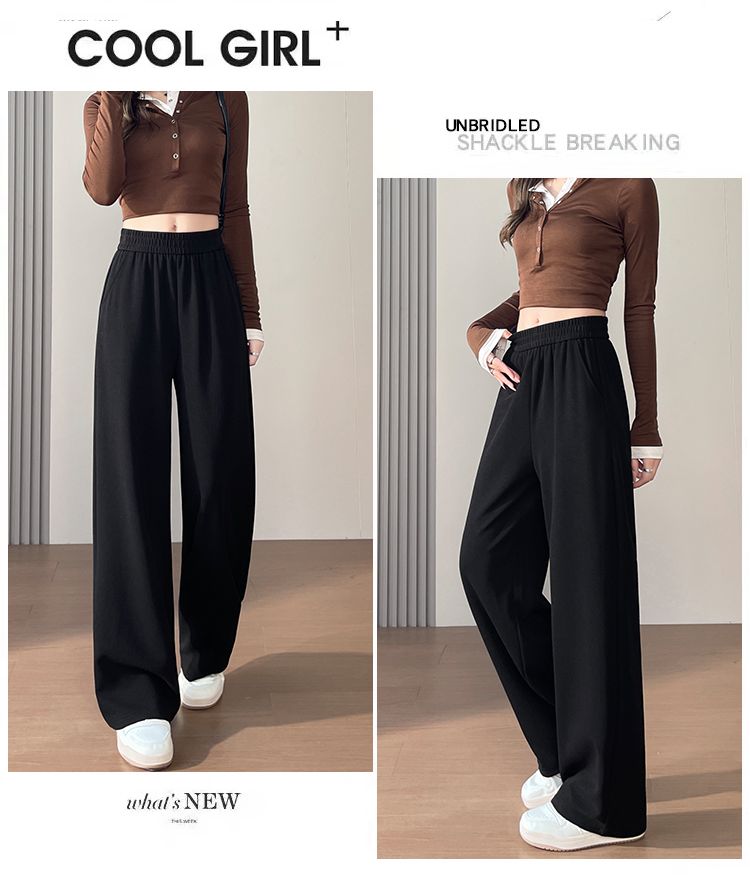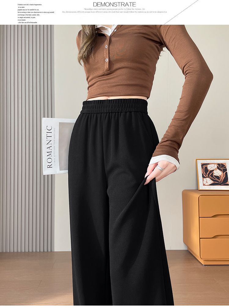 MY15374# 新款黑色微喇西装裤女松紧腰垂感大码梨形身材女士喇叭裤女裝...