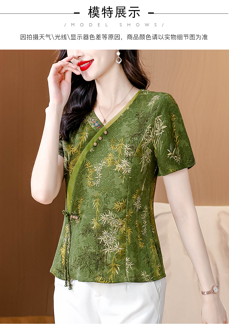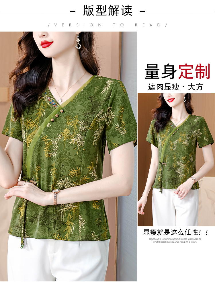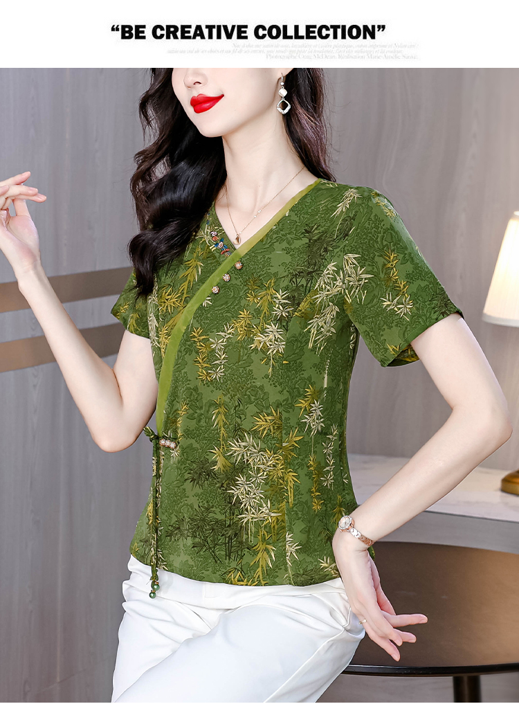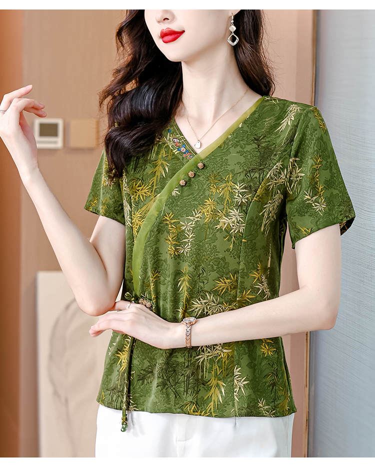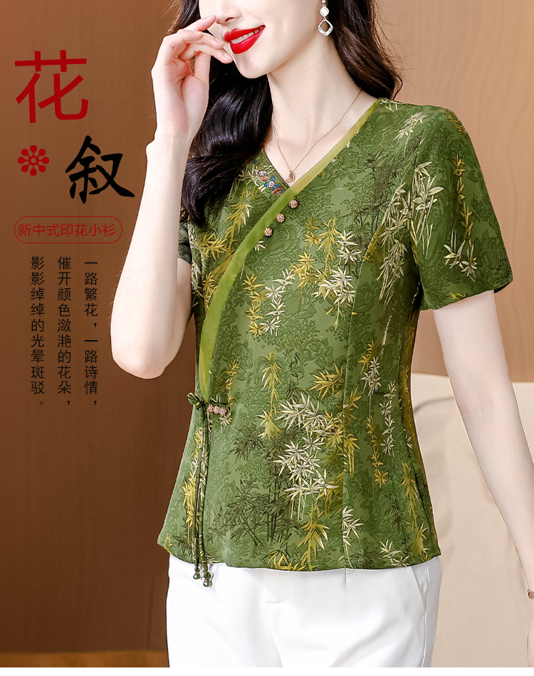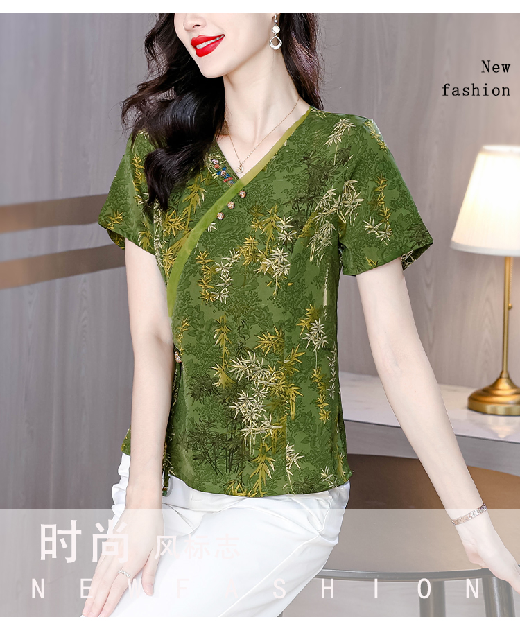 MY15340# 高级感时尚V领短袖雪纺衫女洋气小衫夏季新款小个子减龄打底上衣女裝貨源服裝批發