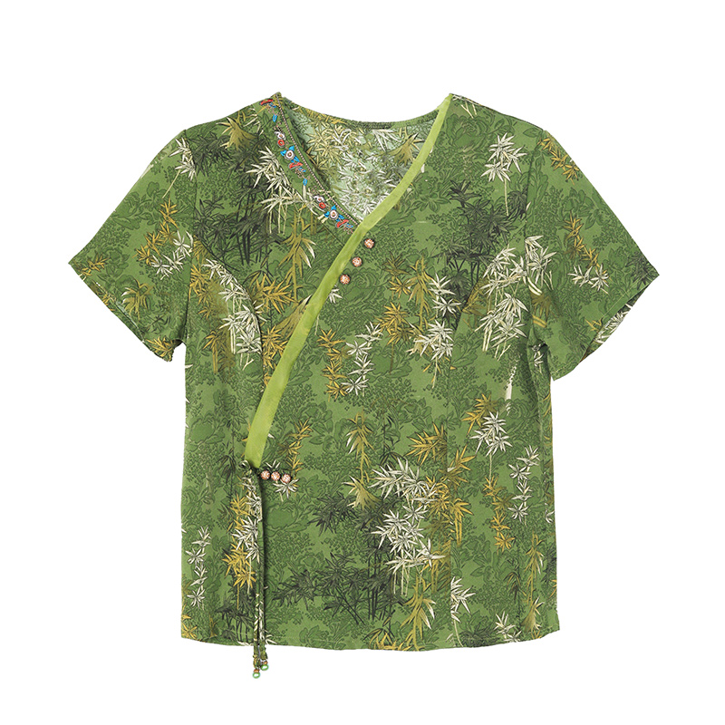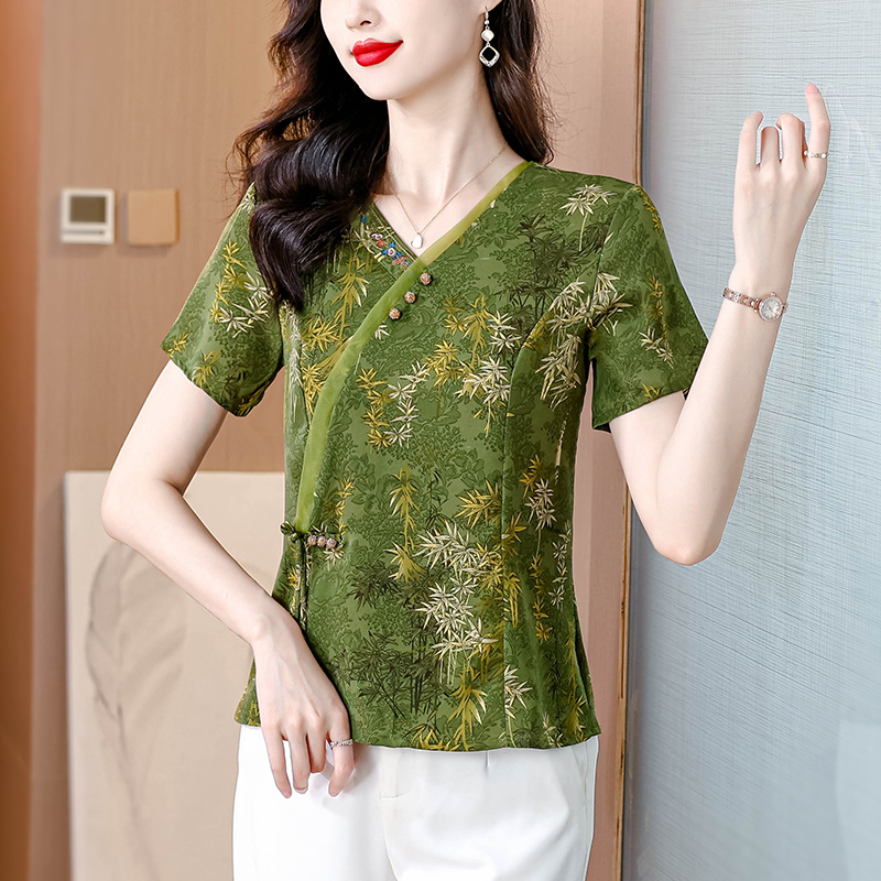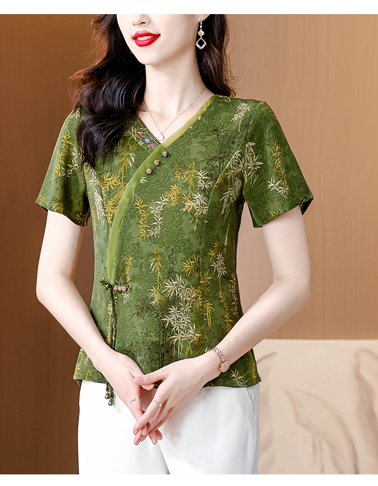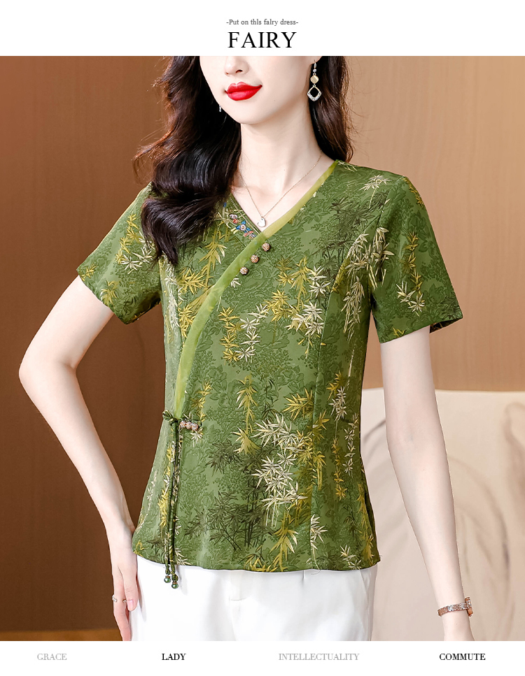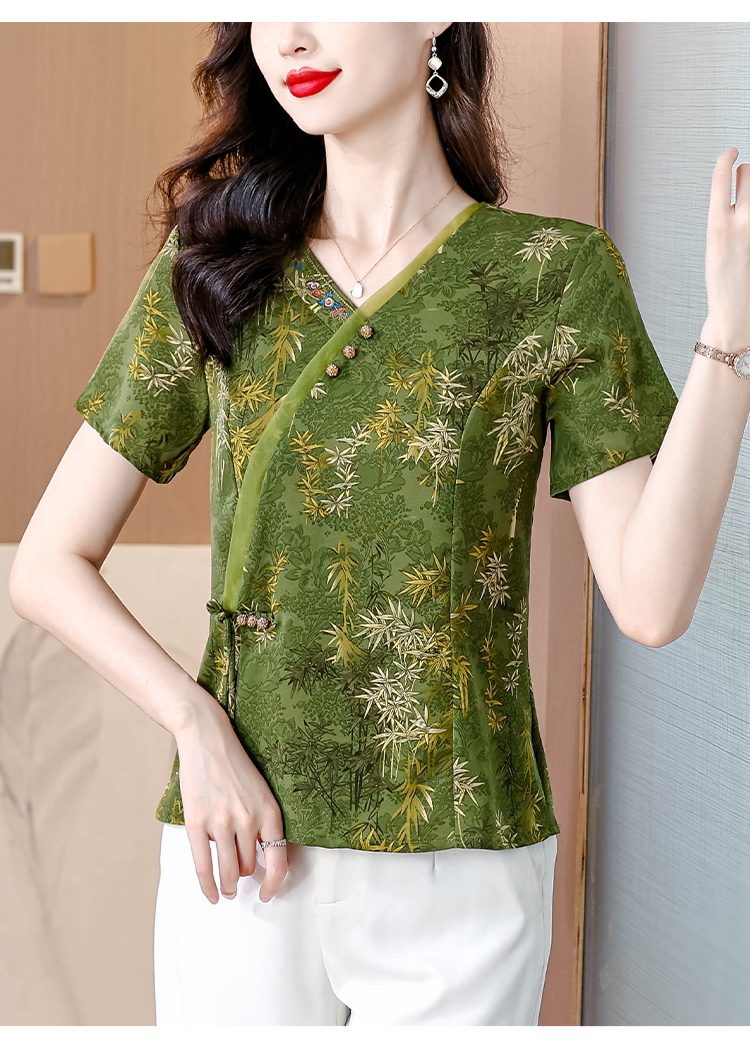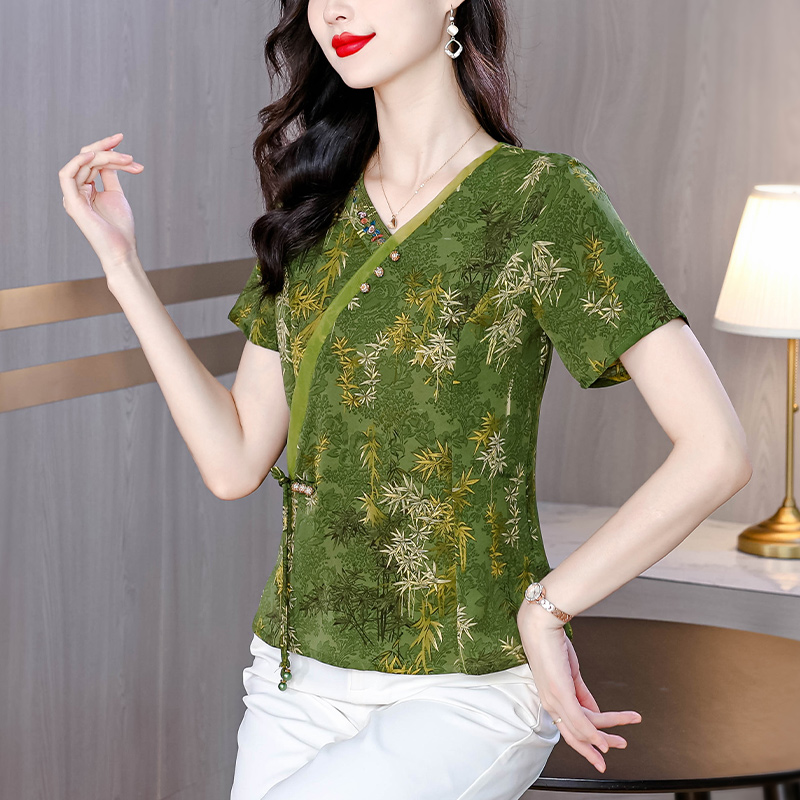 MY15340# 高级感时尚V领短袖雪纺衫女洋气小衫夏季新款小个子减龄打底上衣女裝貨源服裝批發