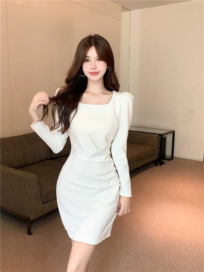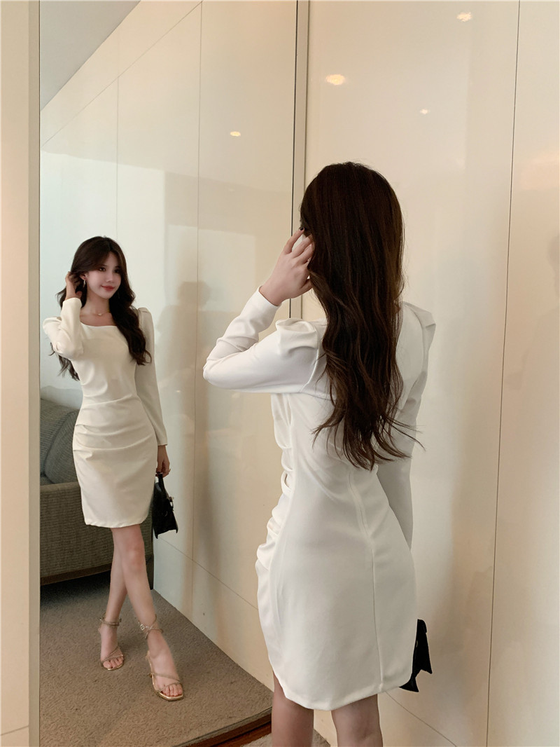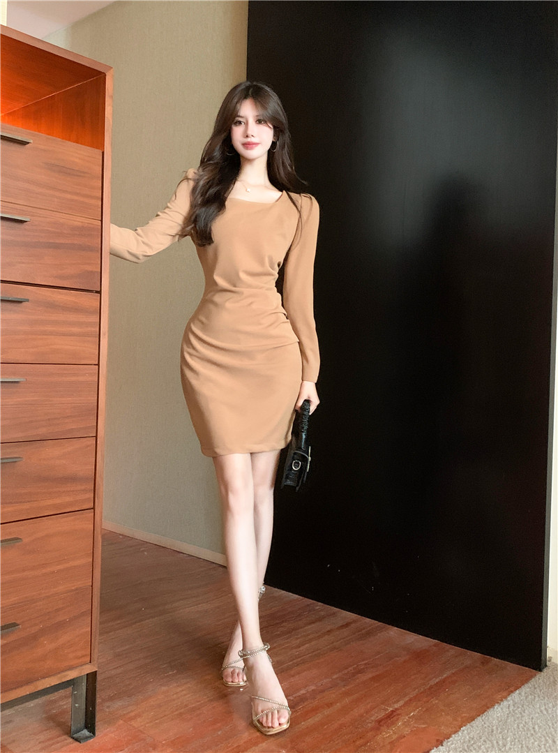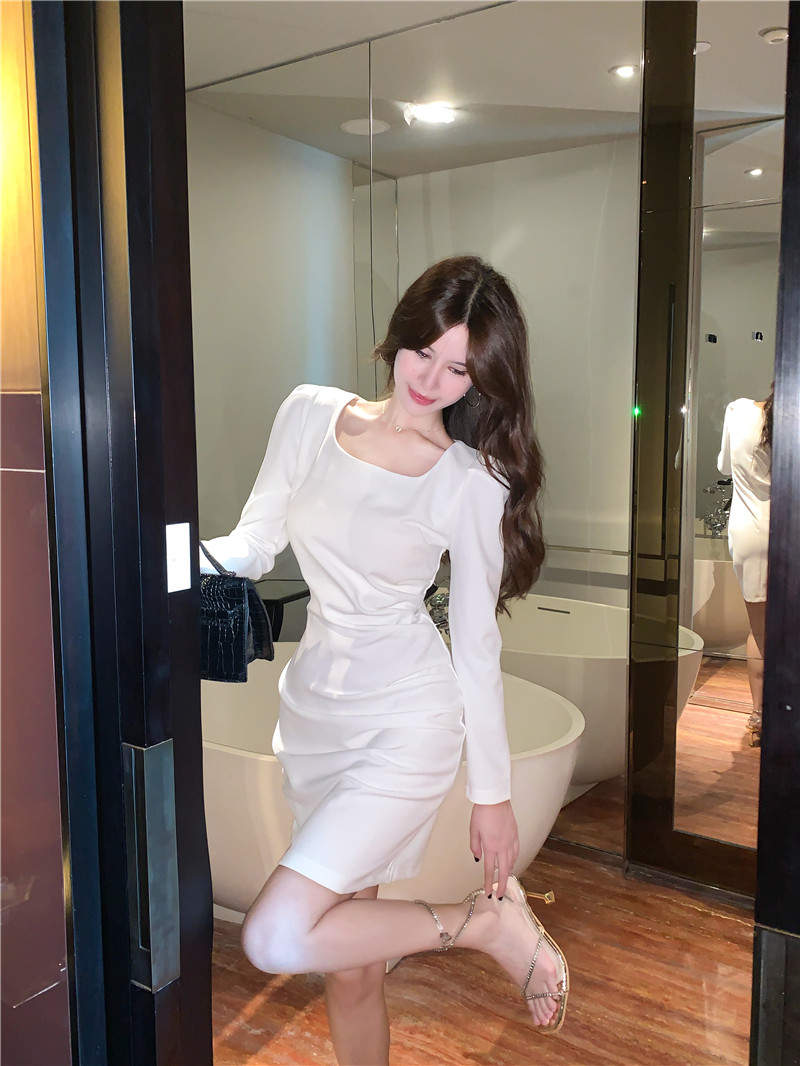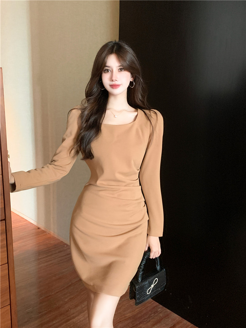 MY15342# 直播爆款!纯欲风连衣裙女装韩版显瘦气质褶皱工作裙子女裝貨源服裝批發