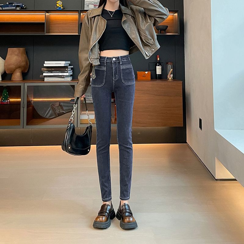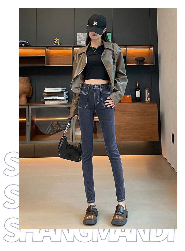 MY15377# 新款小脚牛仔裤女高腰宽松显瘦紧身弹力铅笔裤子女裝貨源服裝批發