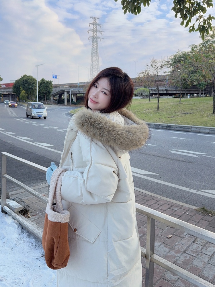 MY15605# 欧洲站加厚保暖宽松大毛领棉衣洋气时尚连帽中长款棉服女女裝貨源服裝批發
