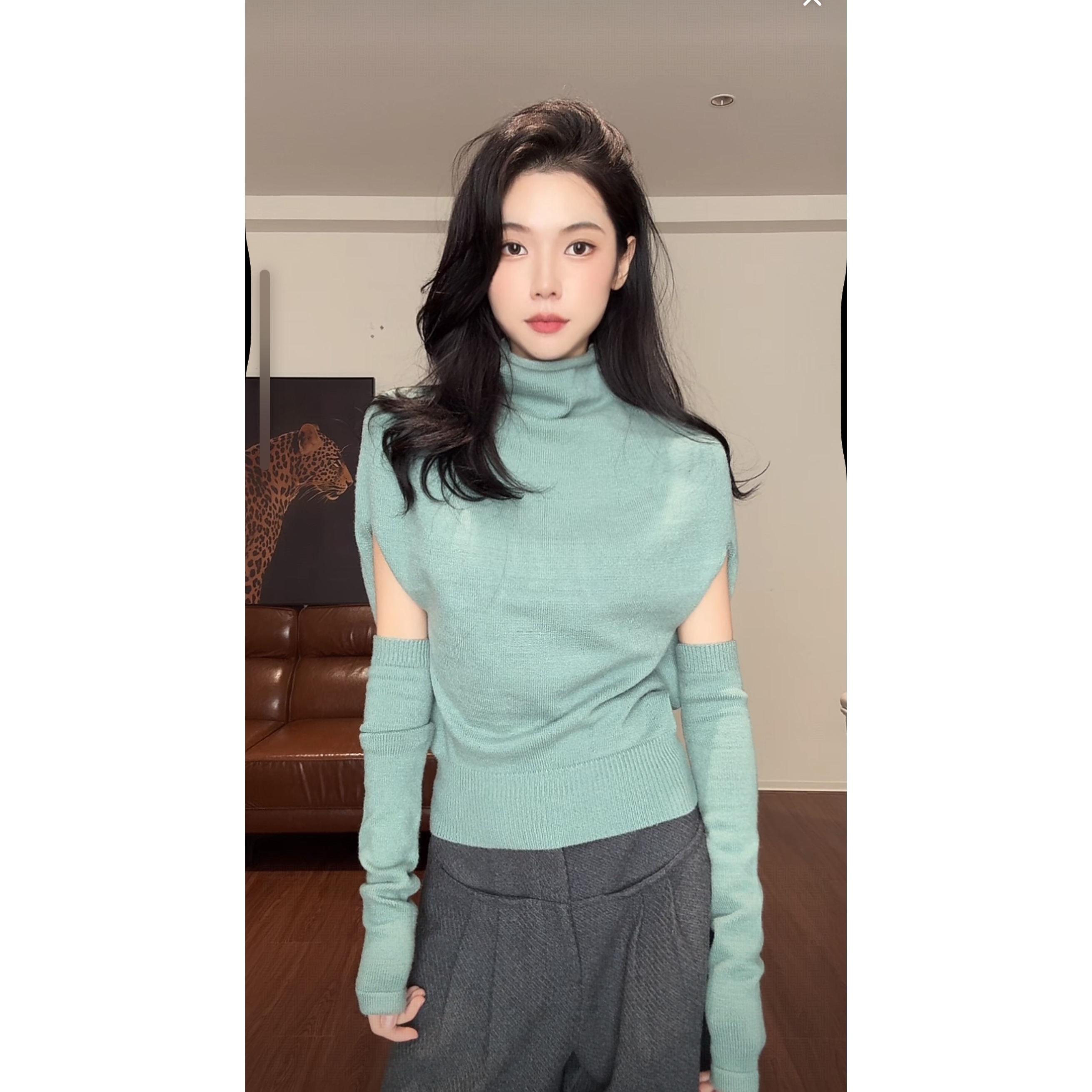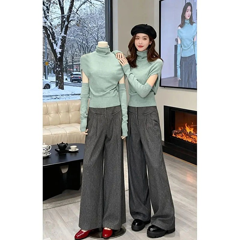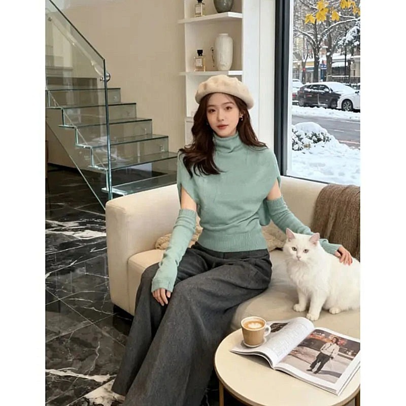 MY15623# 时尚百搭高领蝙蝠袖针织打底衫女新款韩系气质袖套收腰上衣女裝貨源服裝批發