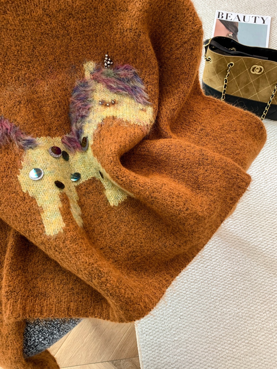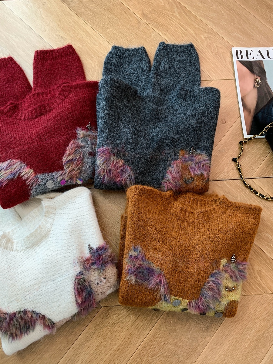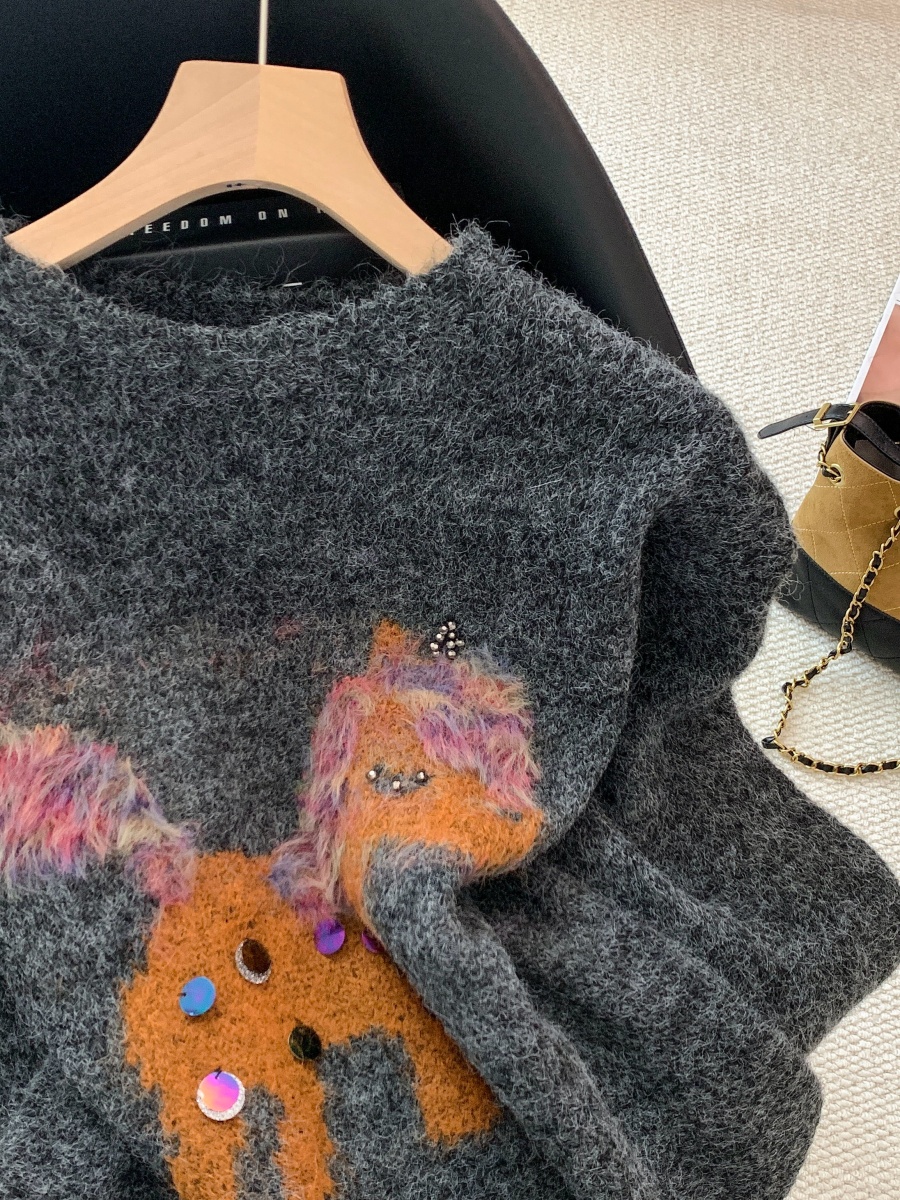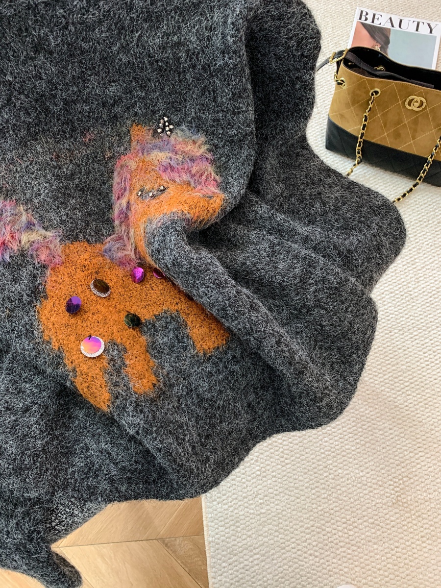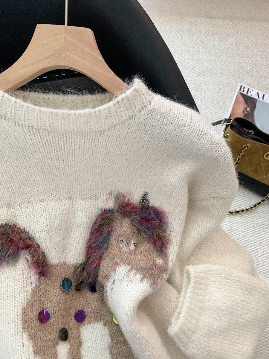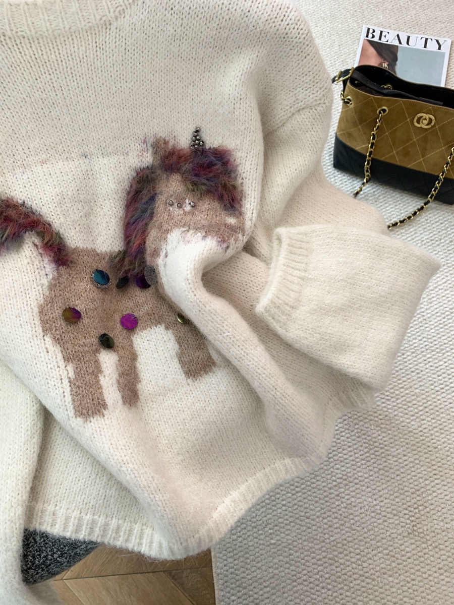 MY15645# 高级感慵懒风减龄卡通提花毛衣新款软糯百搭宽松上衣女裝貨源服裝批發