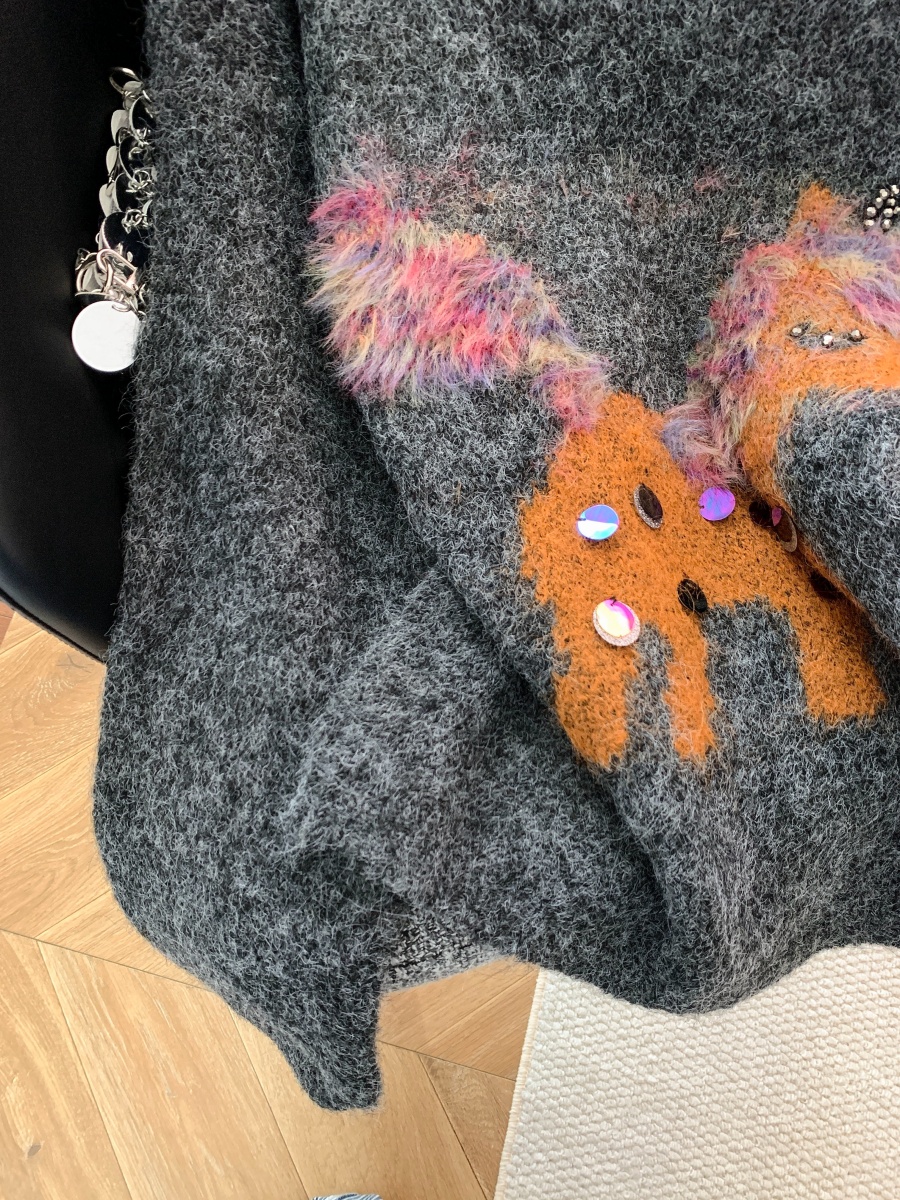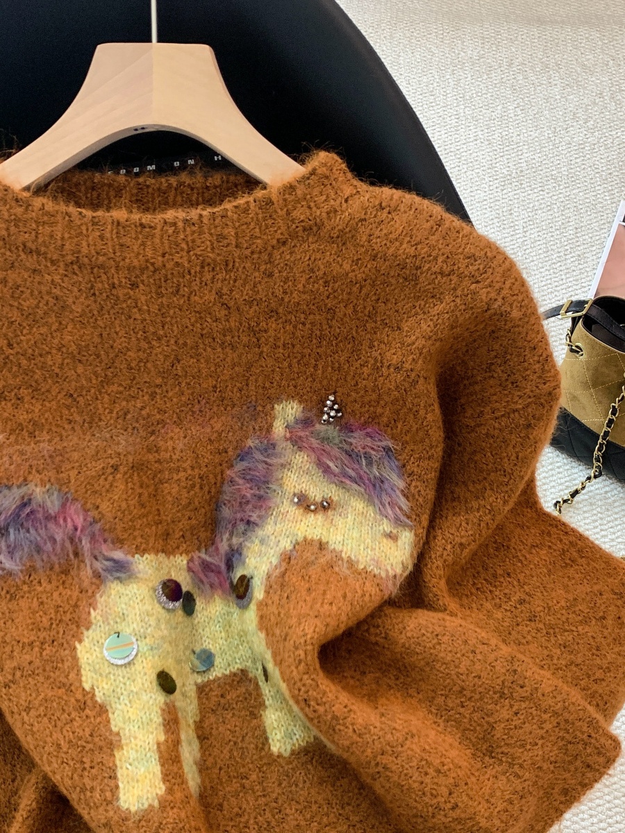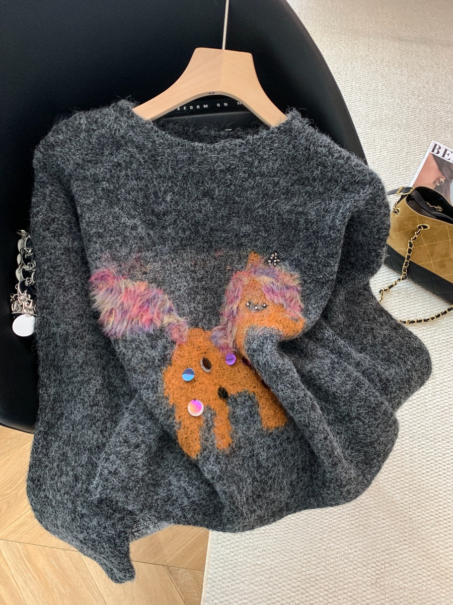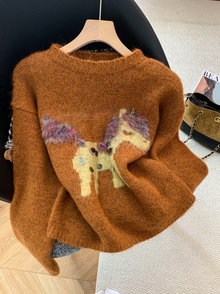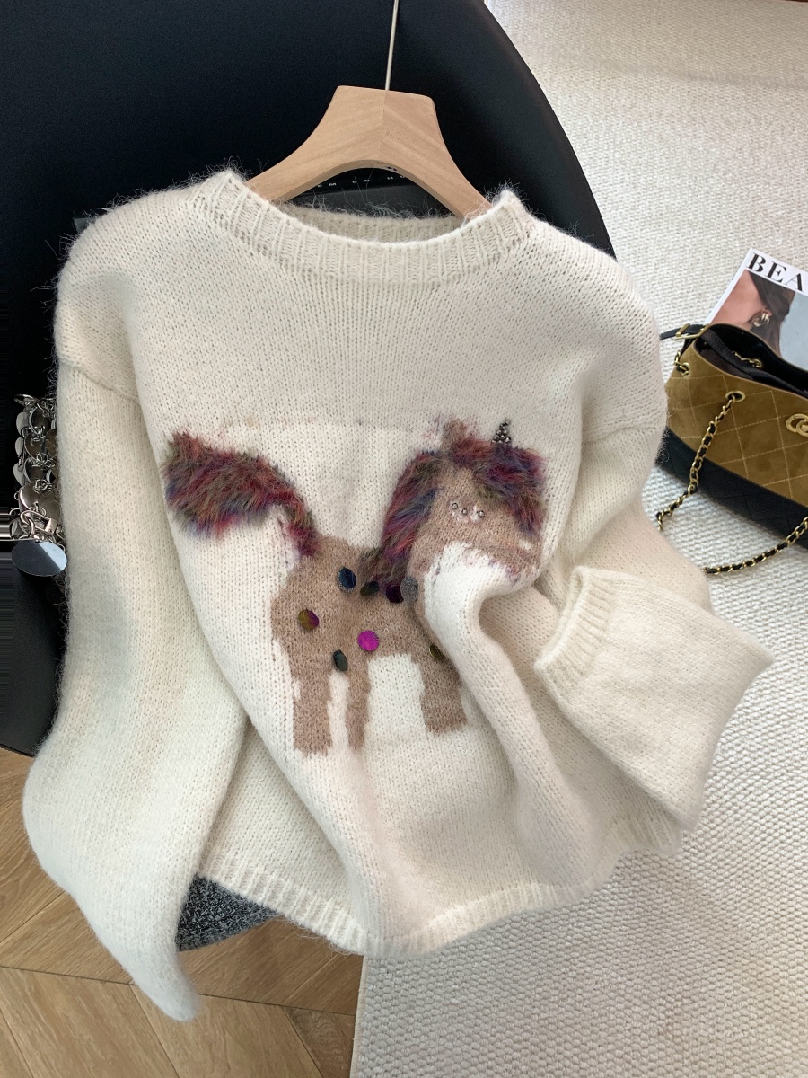 MY15645# 高级感慵懒风减龄卡通提花毛衣新款软糯百搭宽松上衣女裝貨源服裝批發