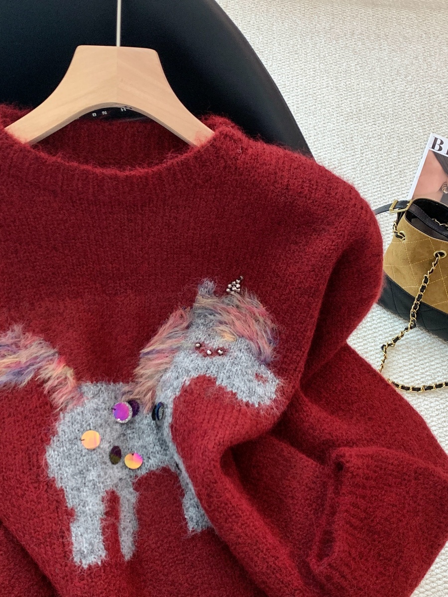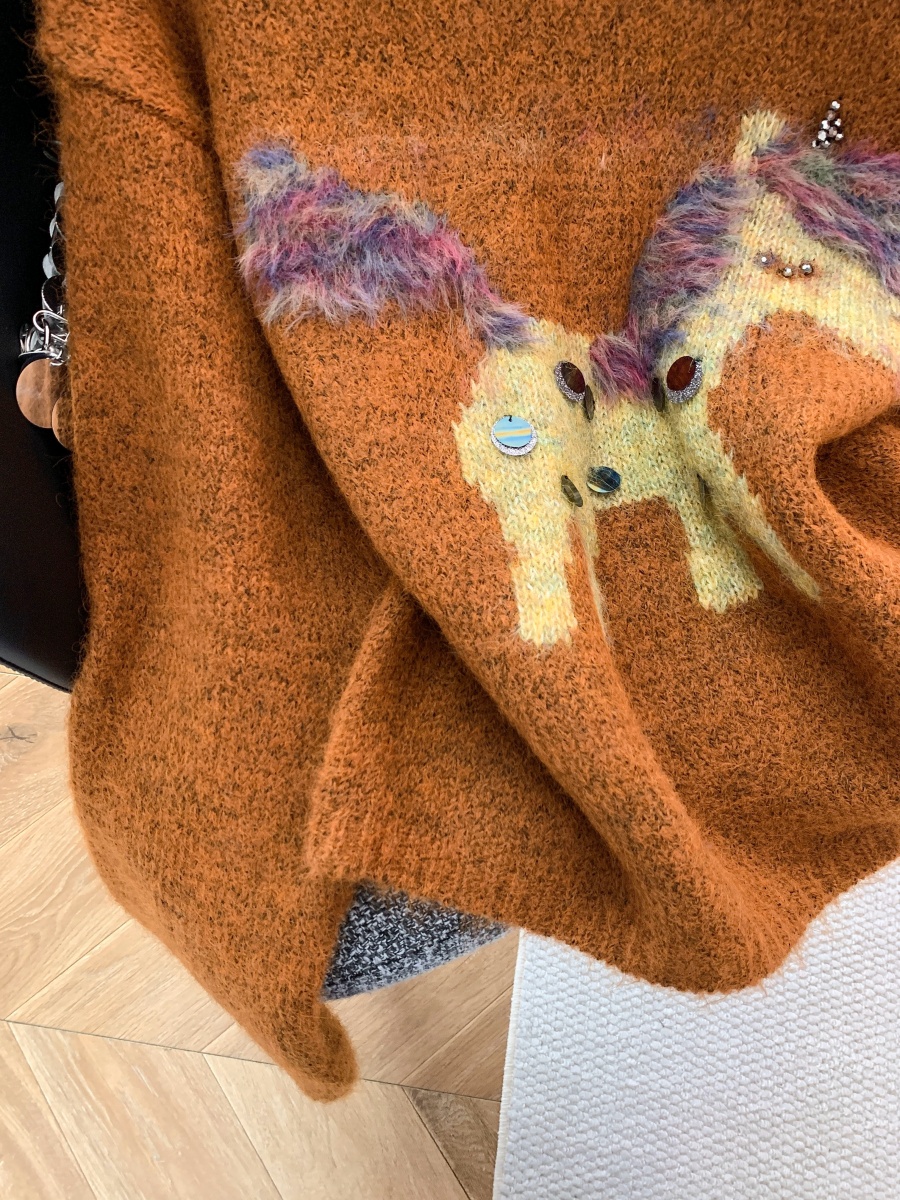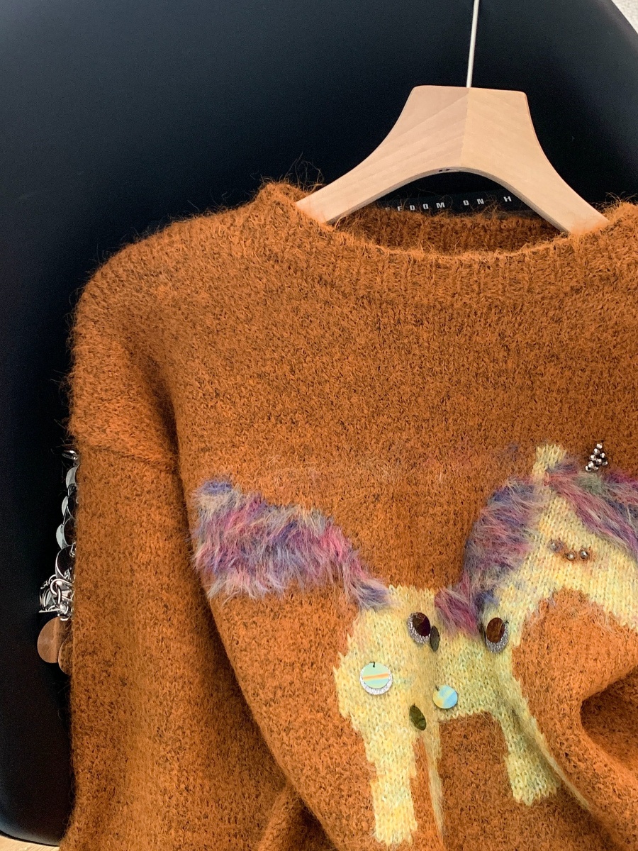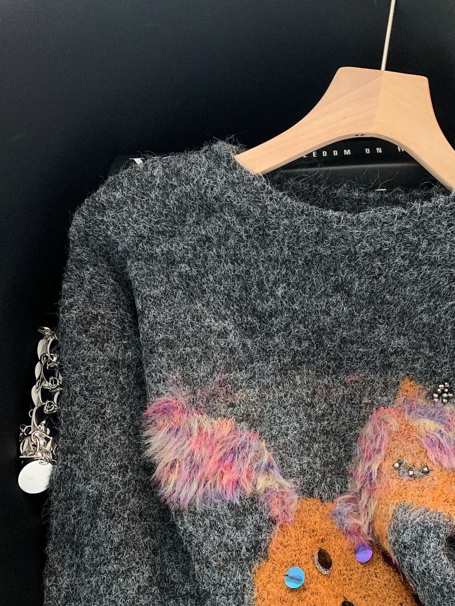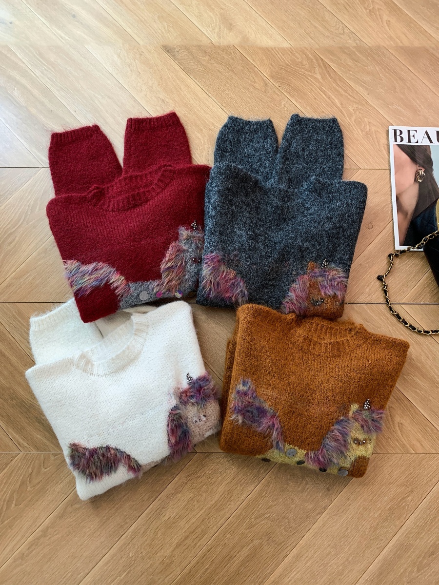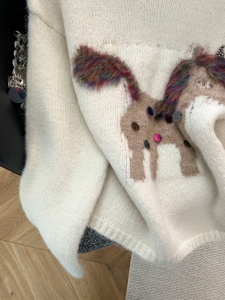 MY15645# 高级感慵懒风减龄卡通提花毛衣新款软糯百搭宽松上衣女裝貨源服裝批發