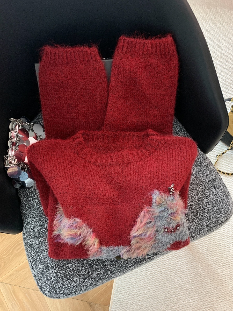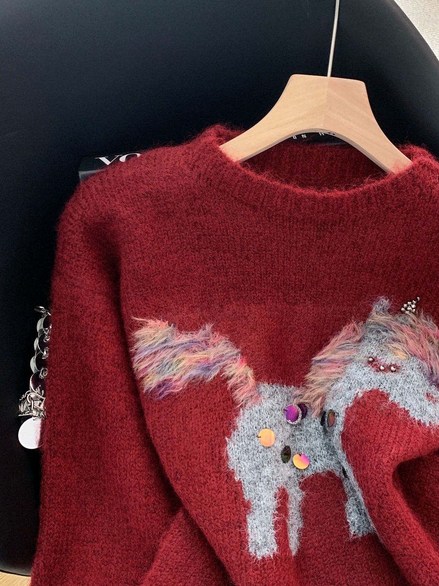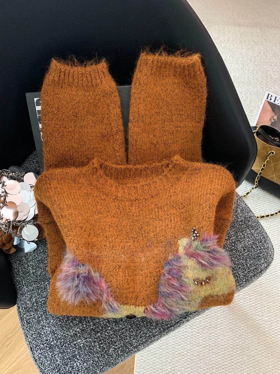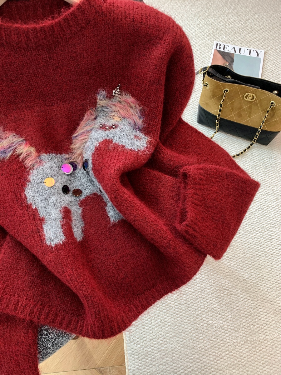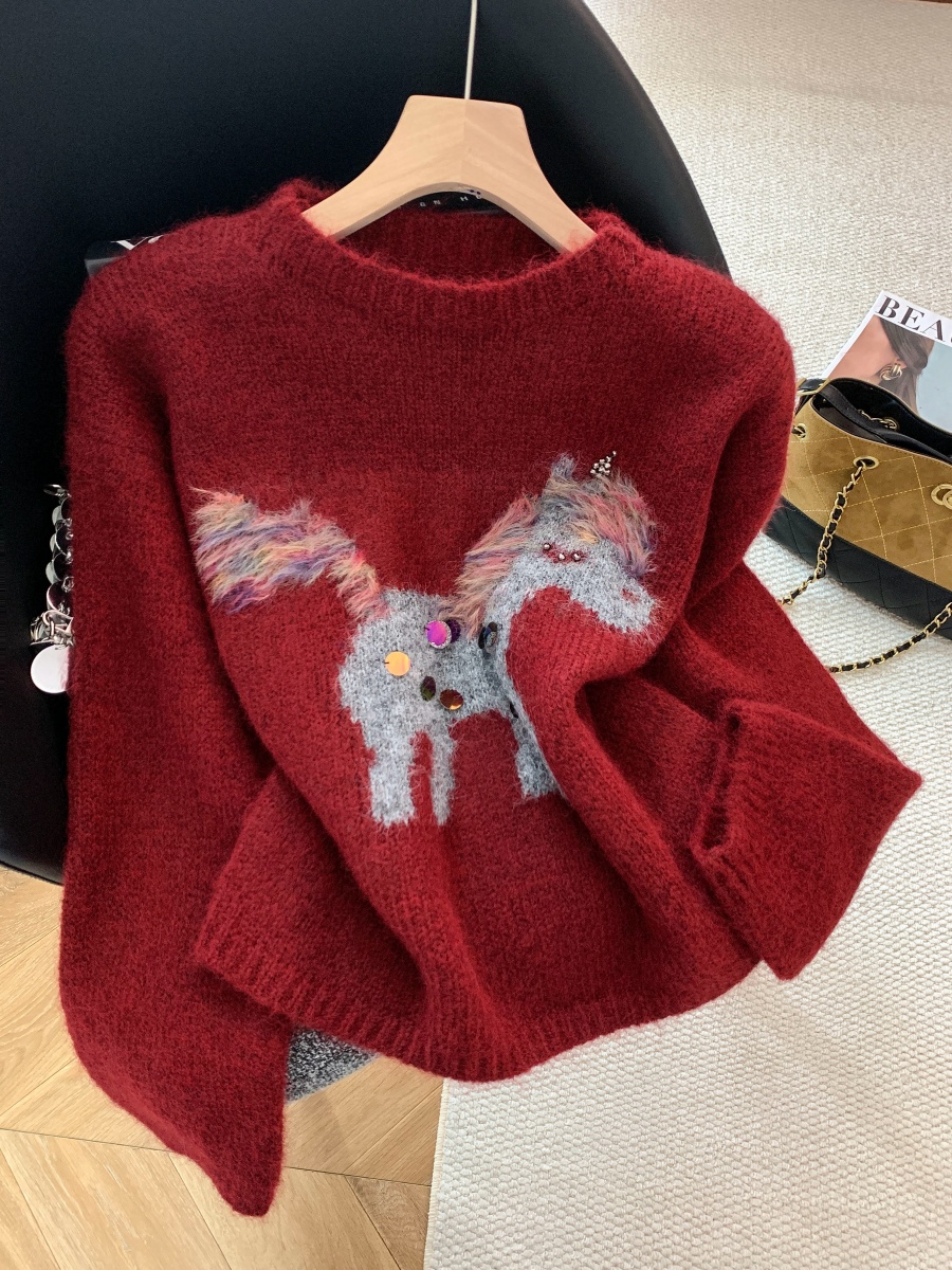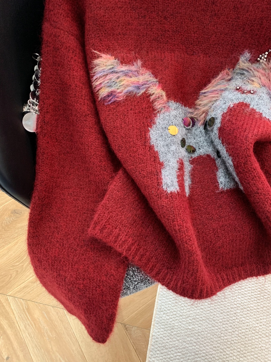 MY15645# 高级感慵懒风减龄卡通提花毛衣新款软糯百搭宽松上衣女裝貨源服裝批發