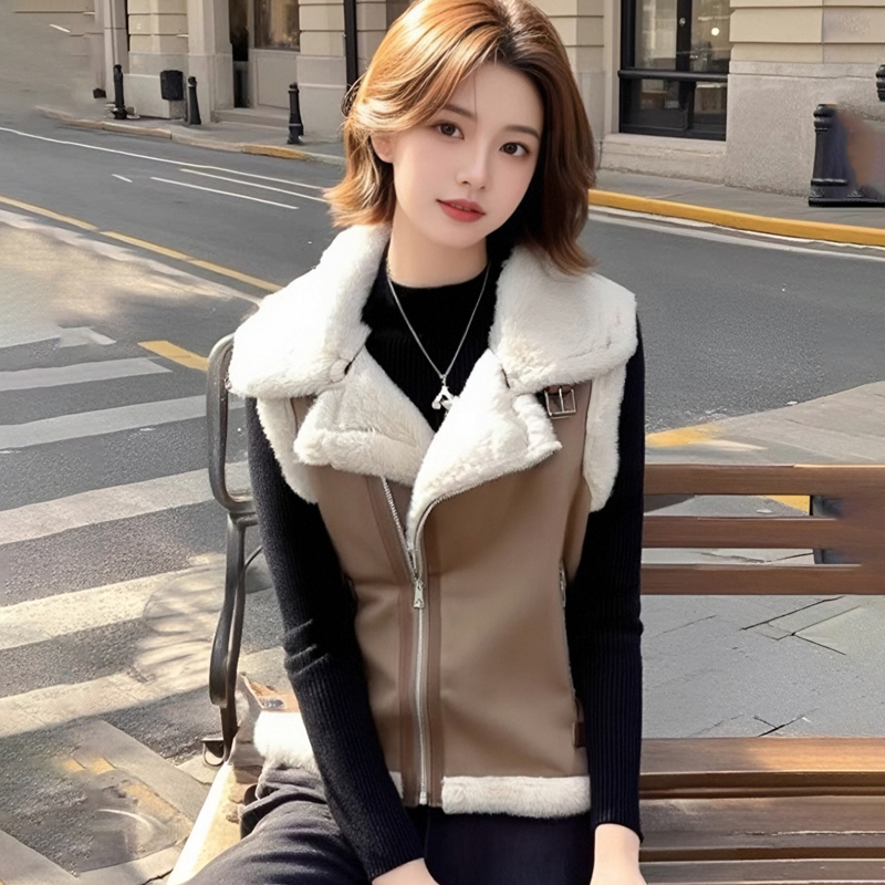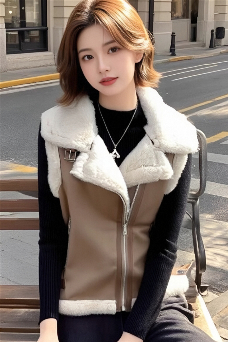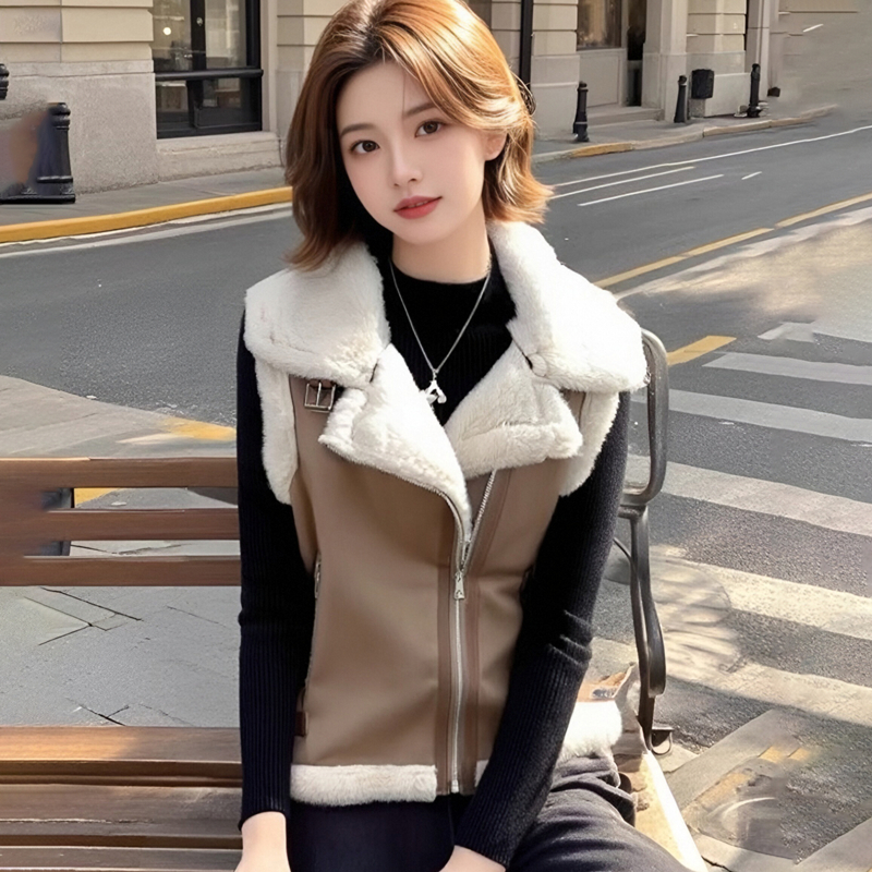 MY15753# 皮毛一体马甲女外搭穿洋气冬季加厚背心马夹羊羔绒外套女裝貨源服裝批發
