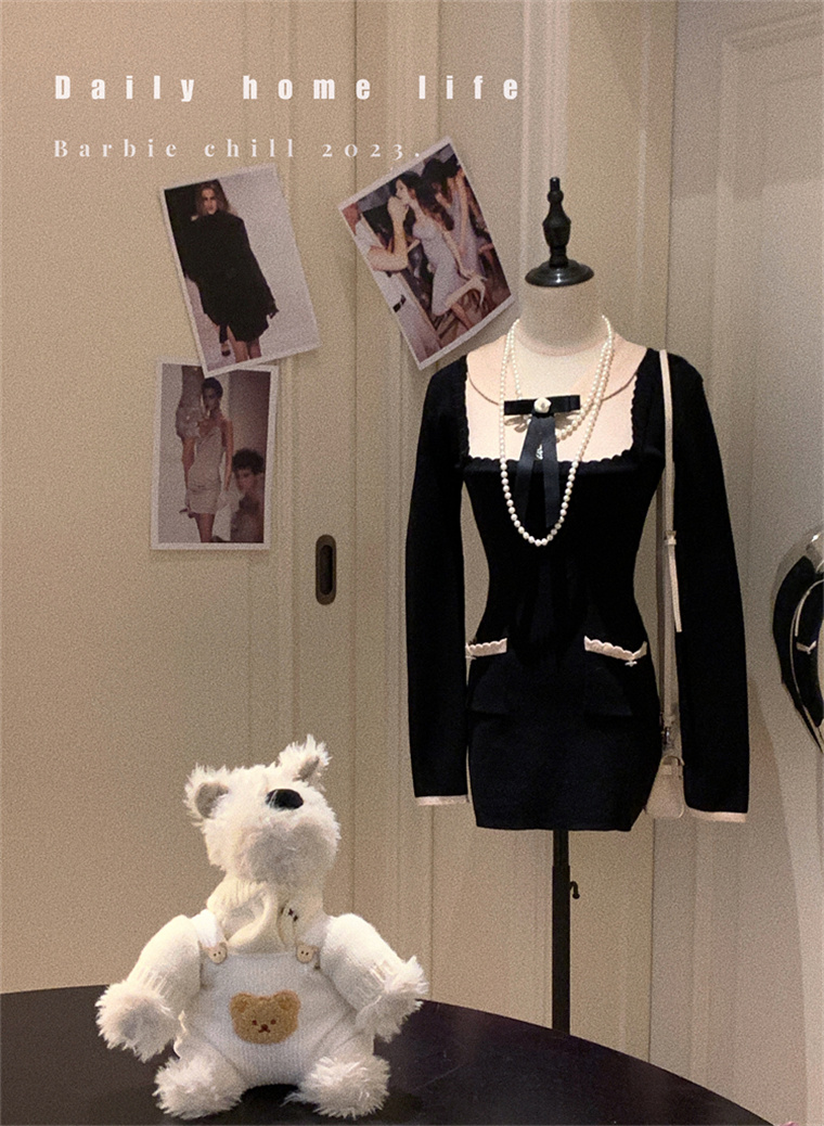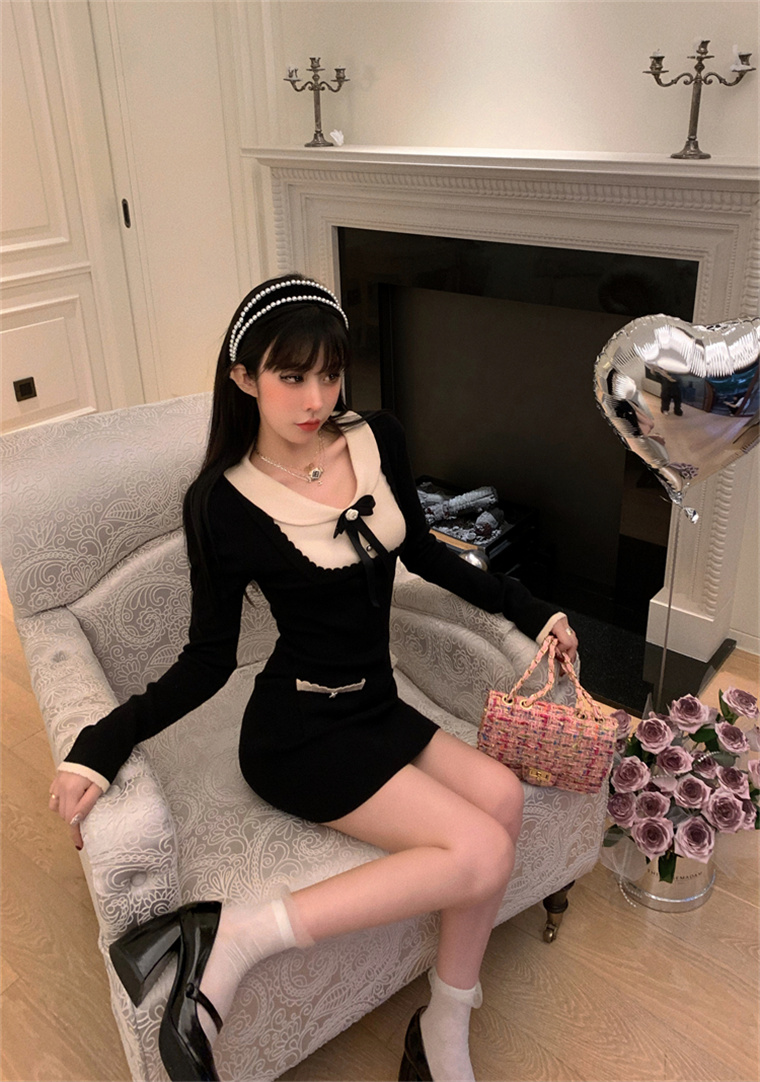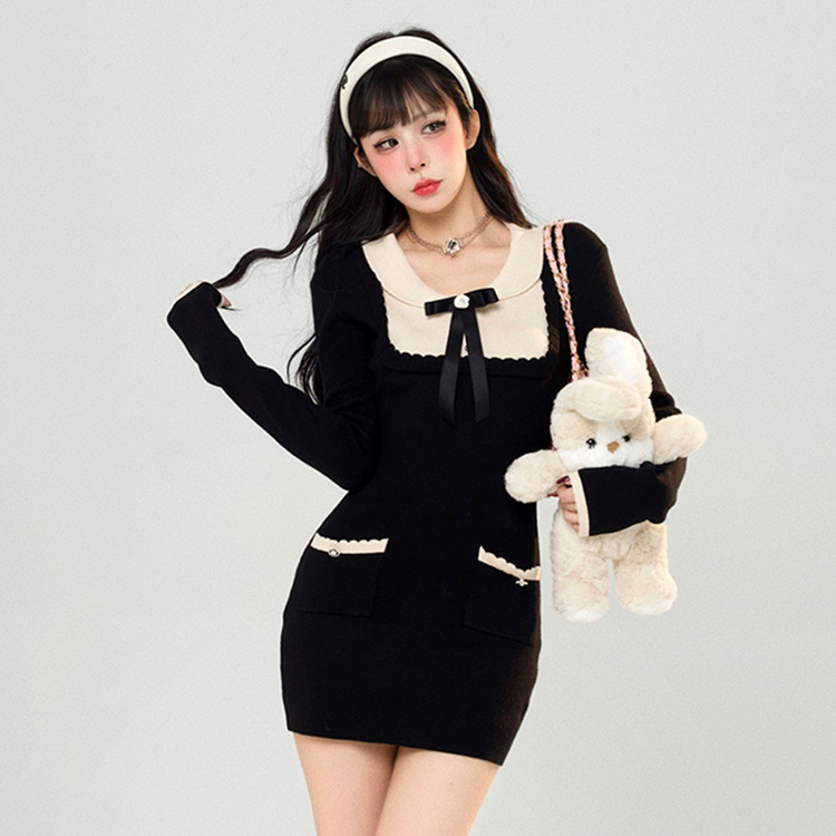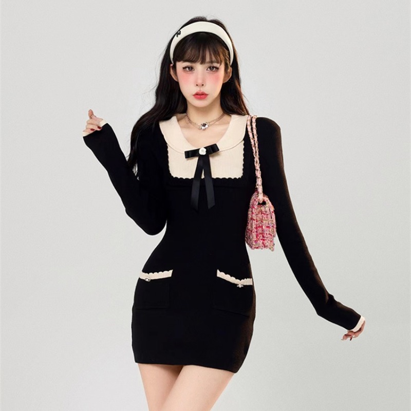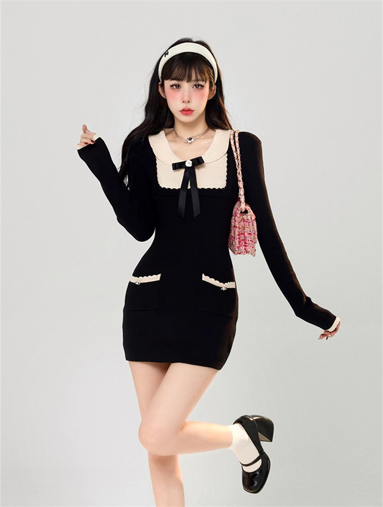 MY15769# 韩国玫瑰蝴蝶结针织毛衣连衣裙小香风高端精致小个子打底裙女裝貨源服裝批發