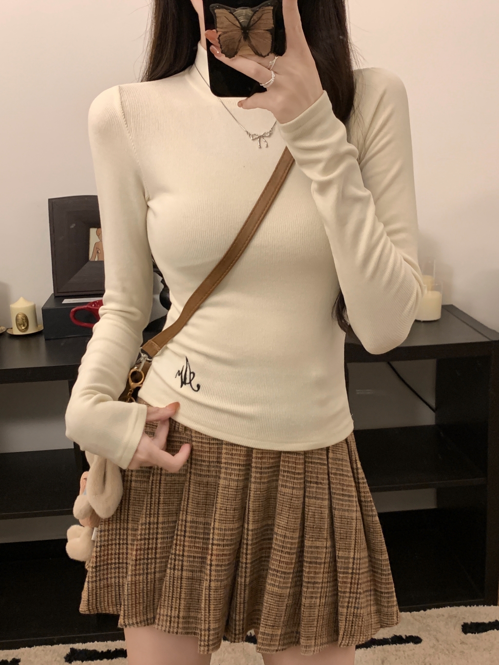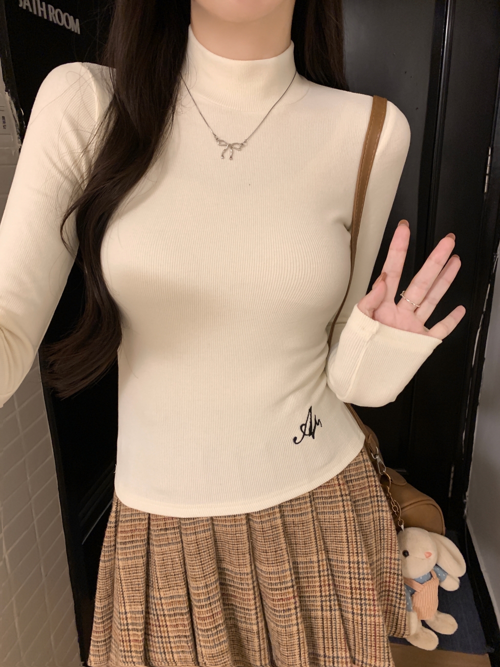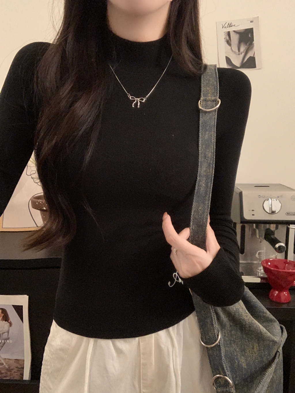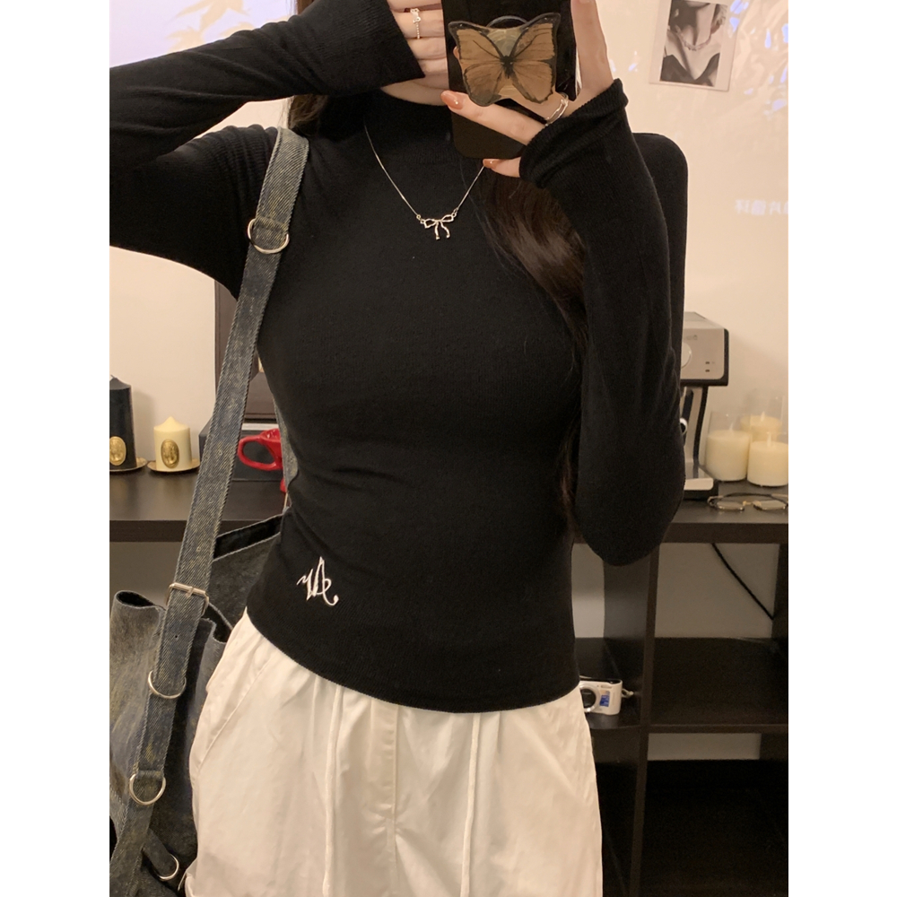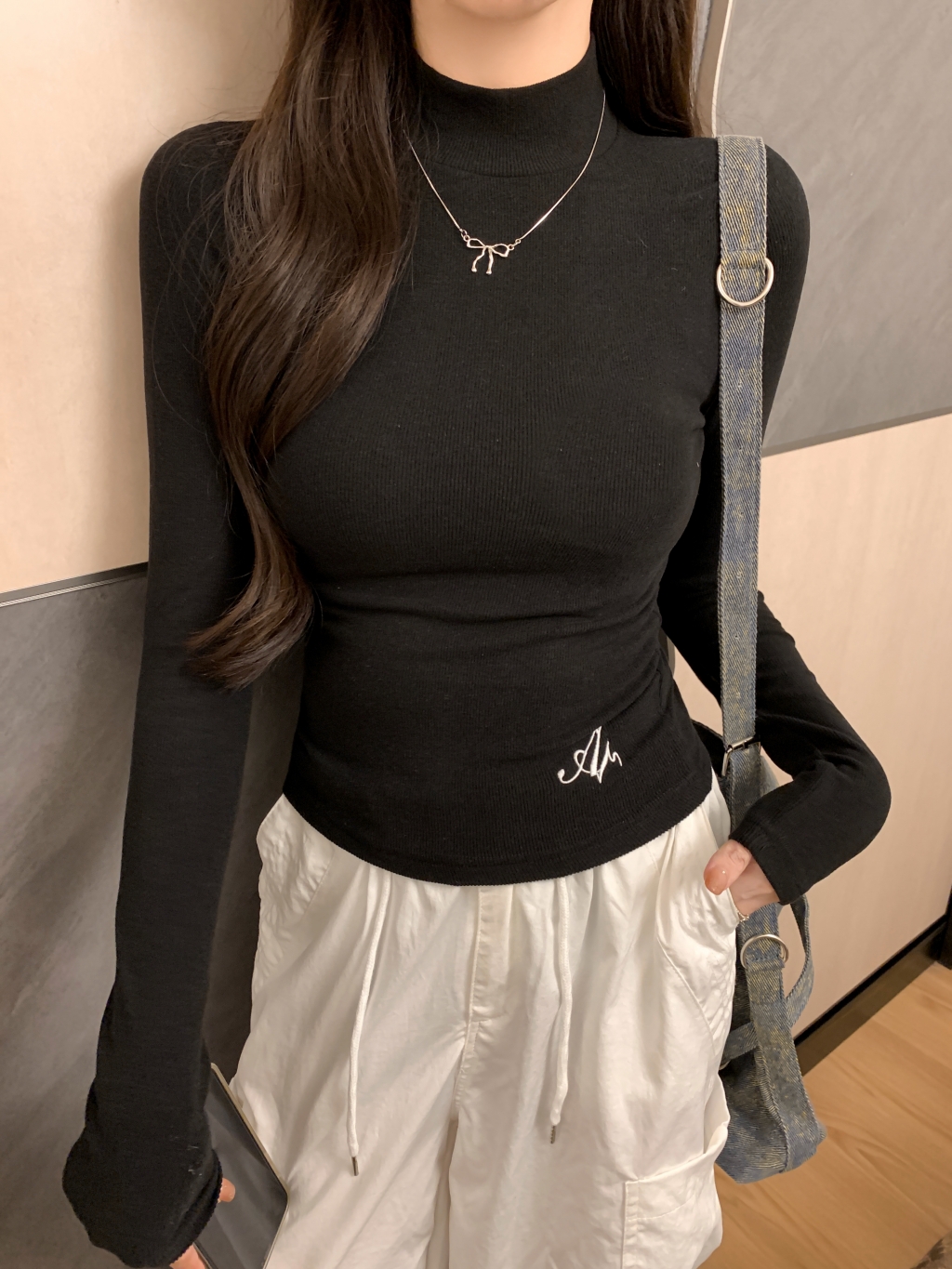 MY15844# 1*1螺纹德绒 德绒半高领t恤女内搭长袖打底衫女裝貨源服裝批發