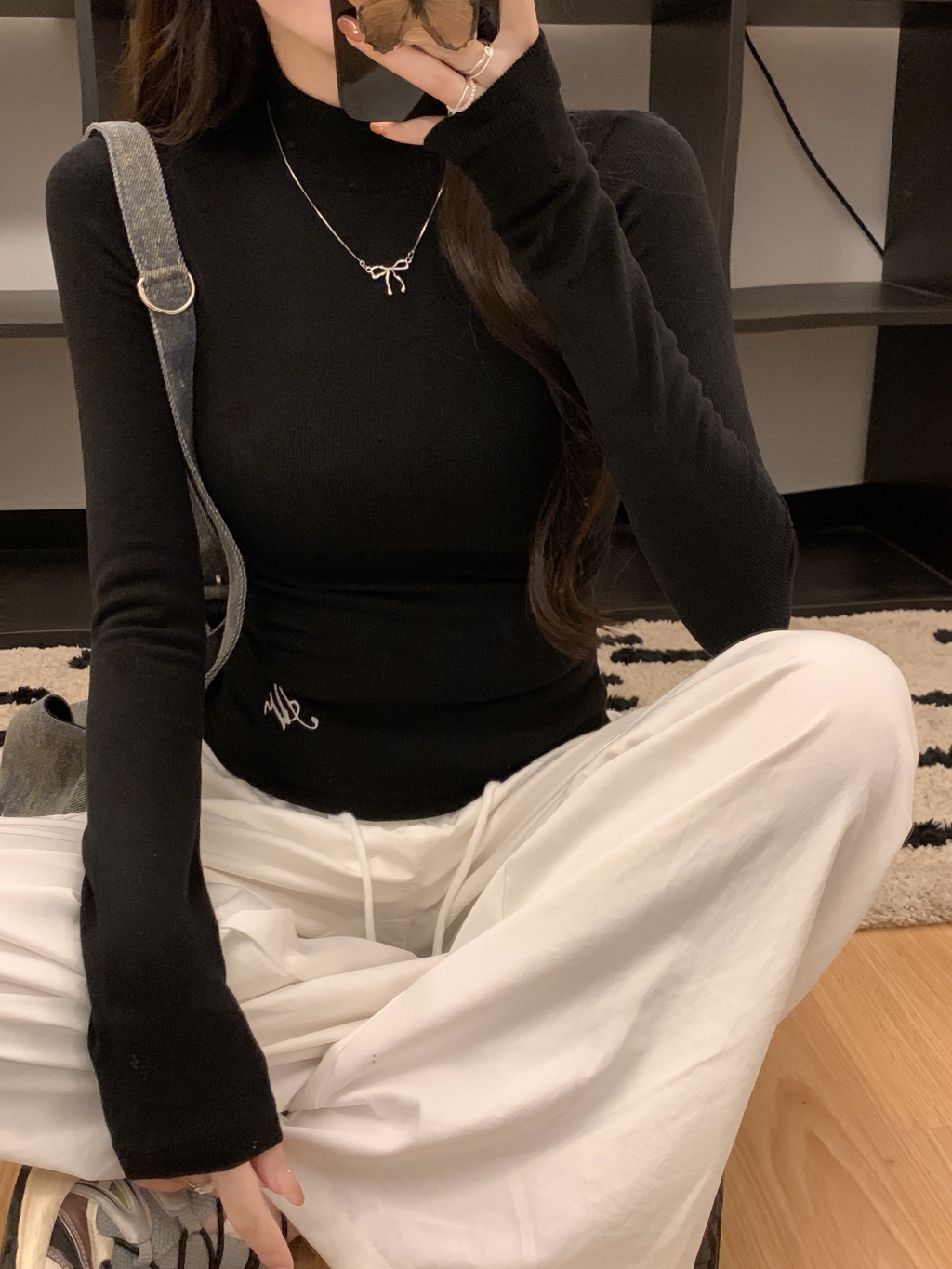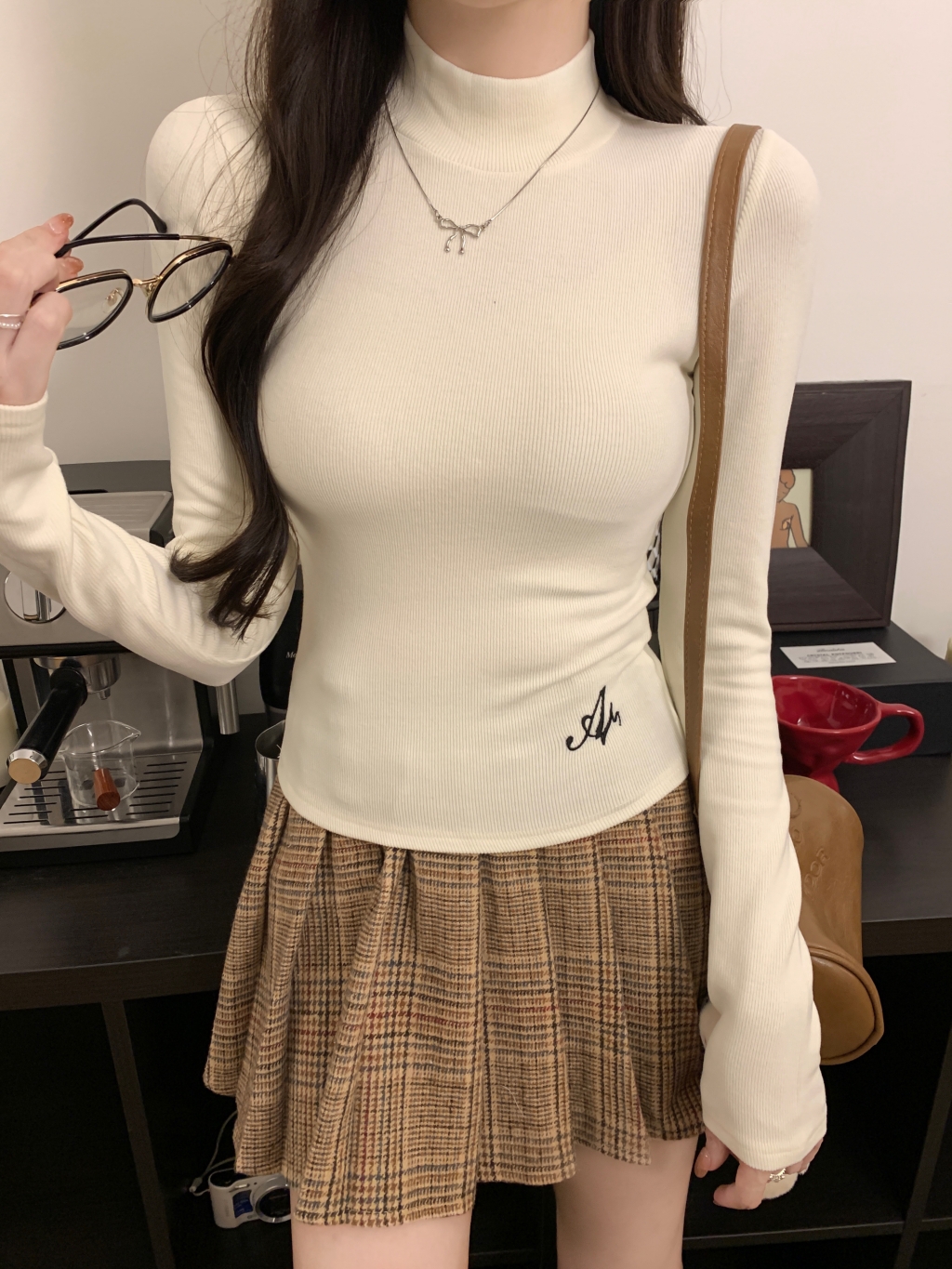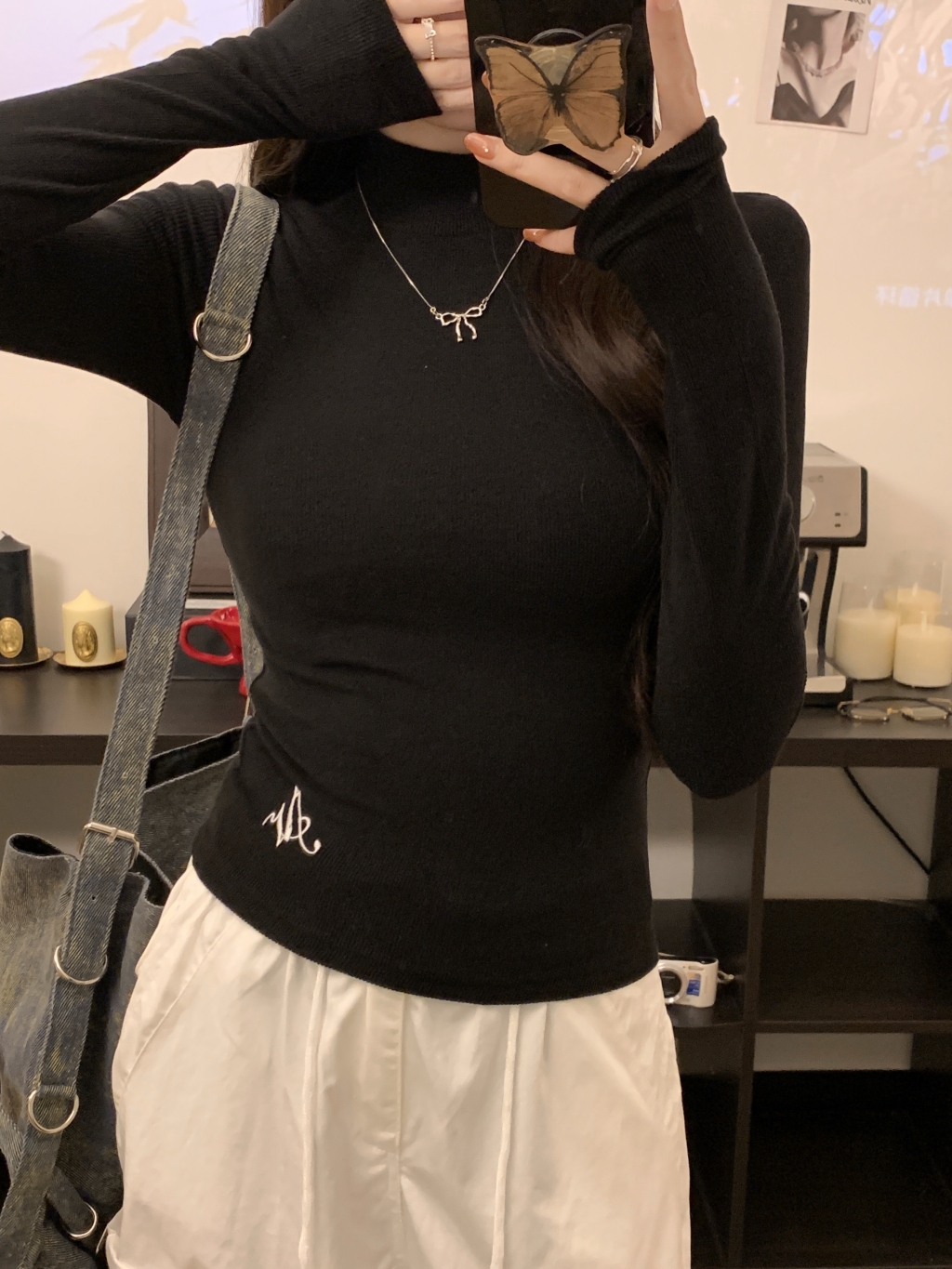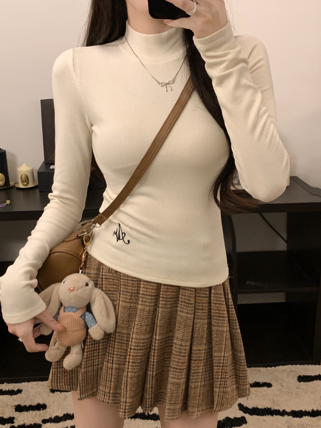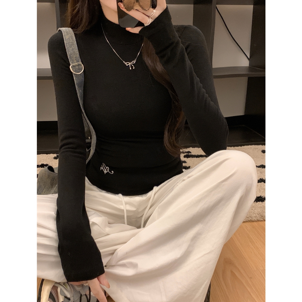 MY15844# 1*1螺纹德绒 德绒半高领t恤女内搭长袖打底衫女裝貨源服裝批發