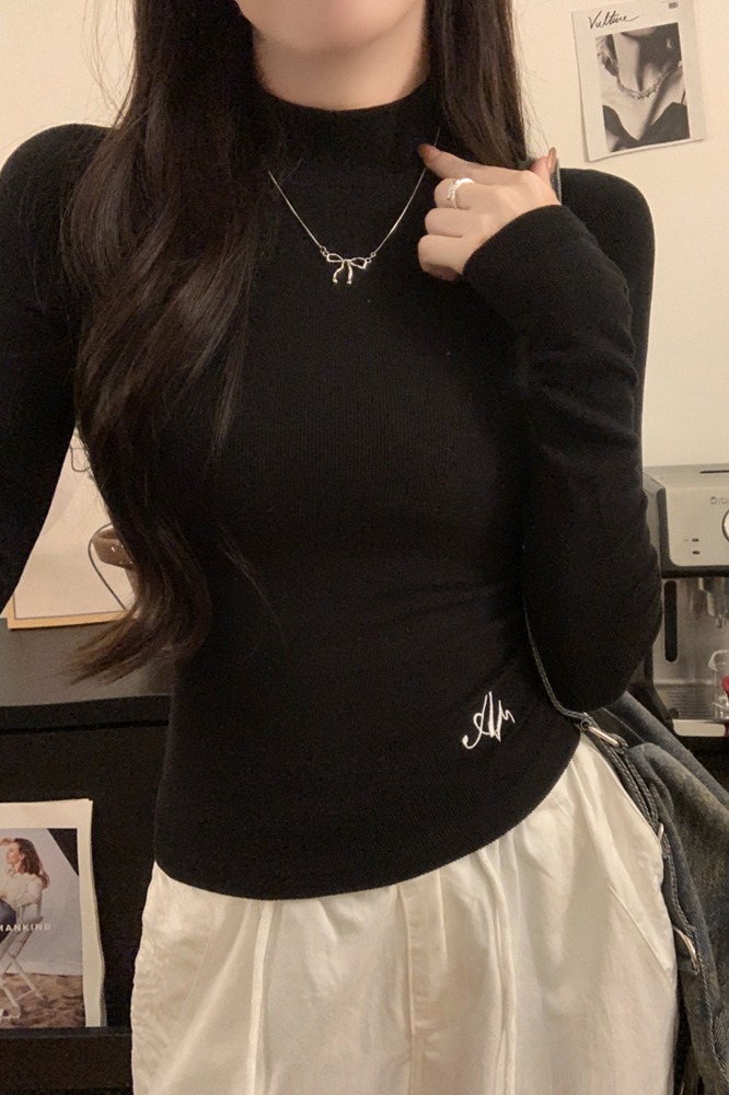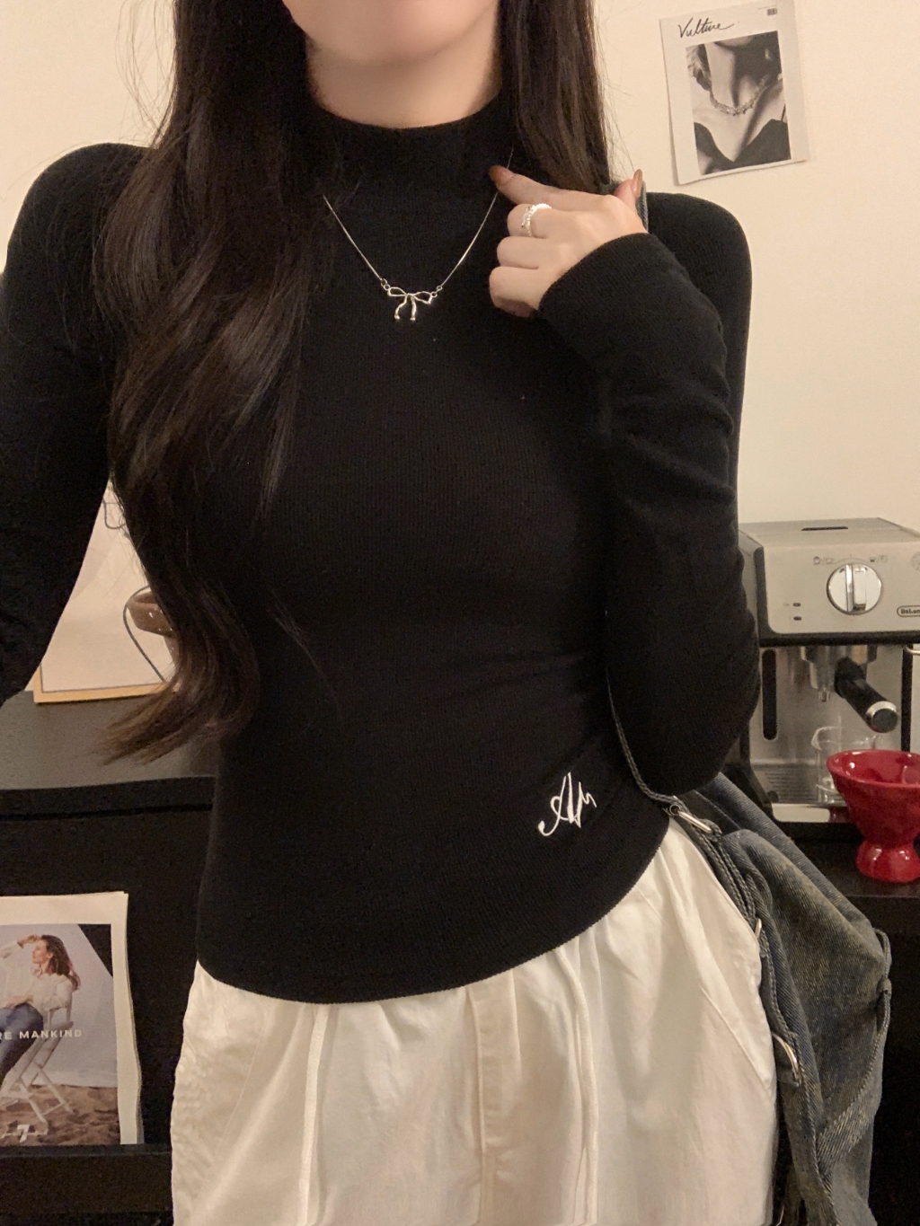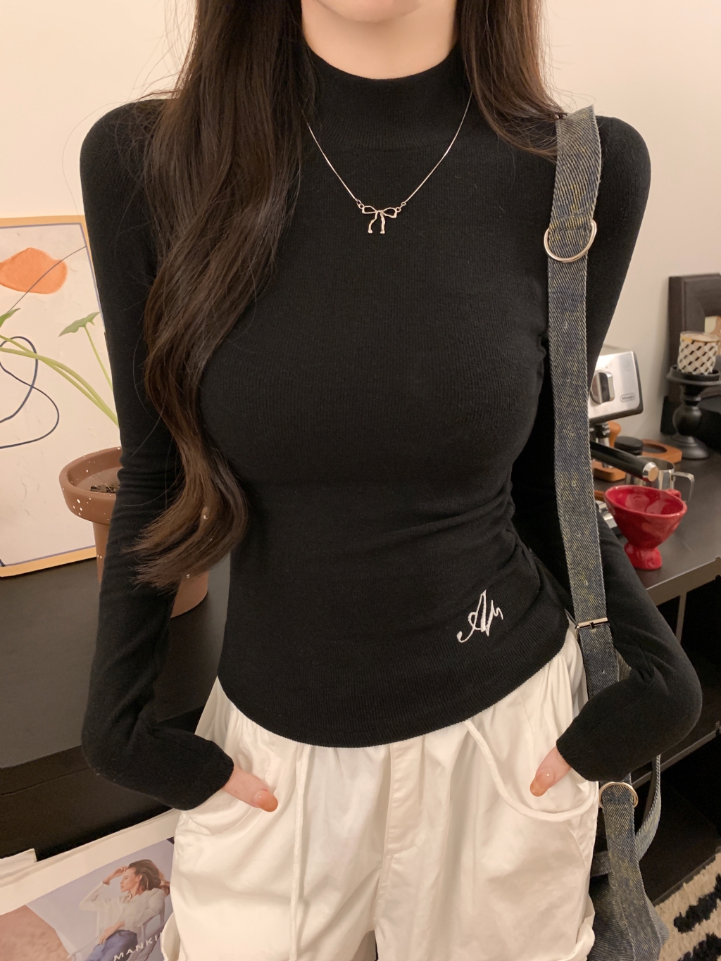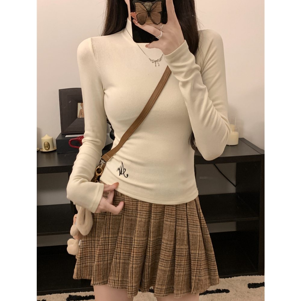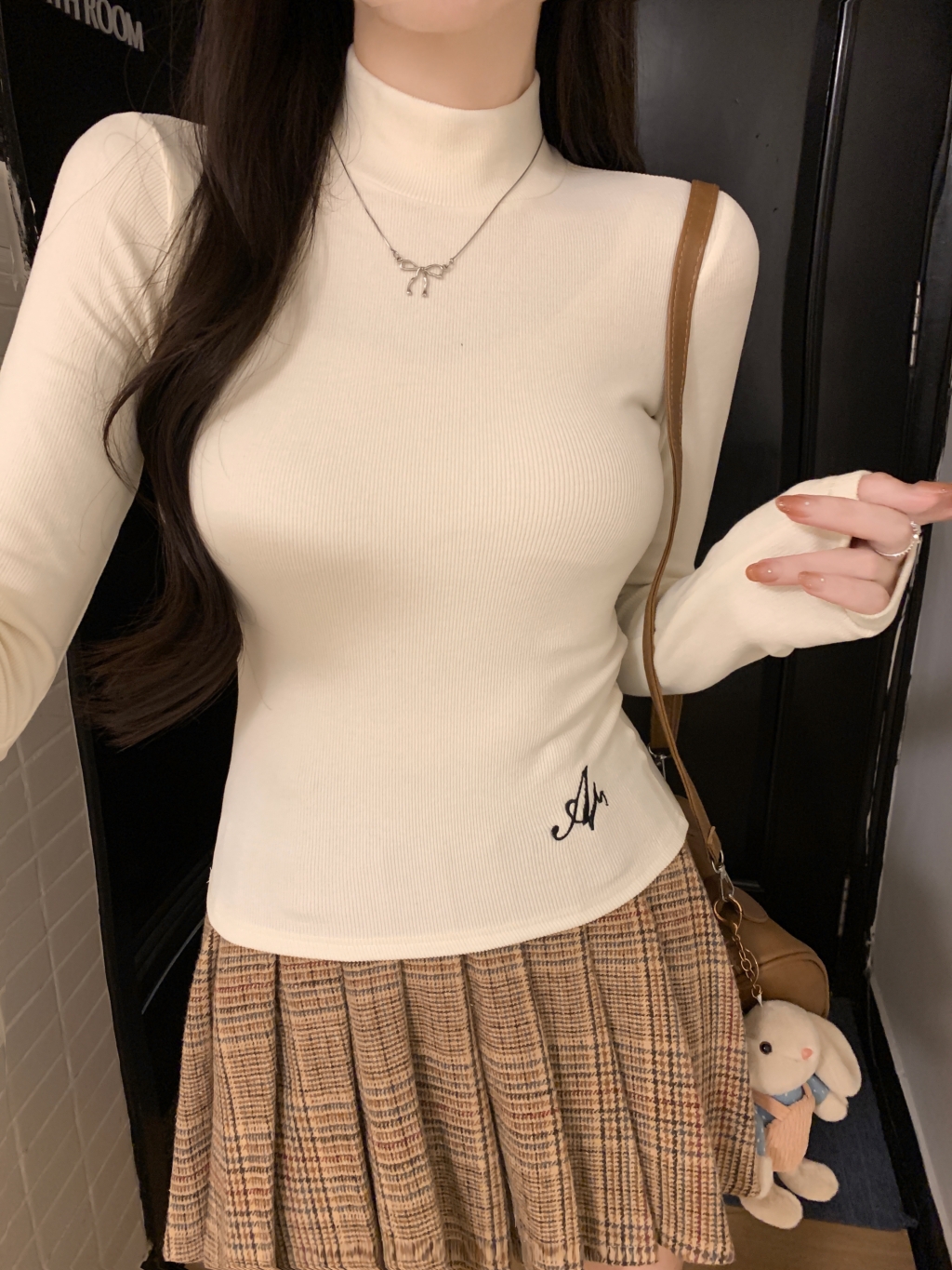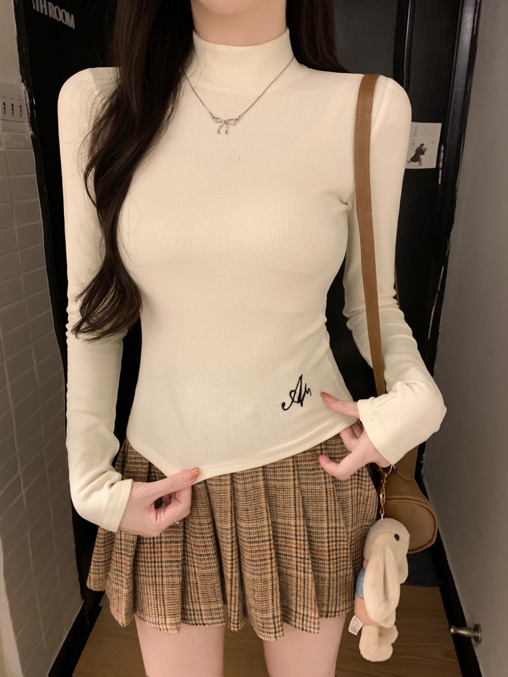 MY15844# 1*1螺纹德绒 德绒半高领t恤女内搭长袖打底衫女裝貨源服裝批發