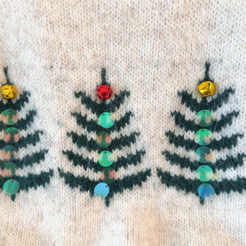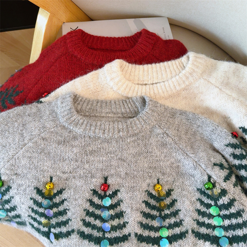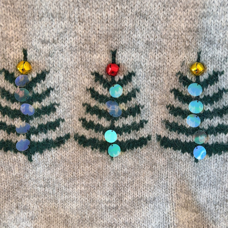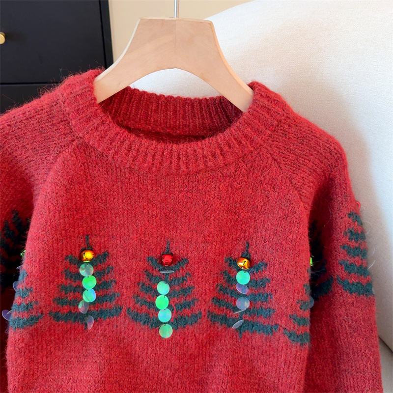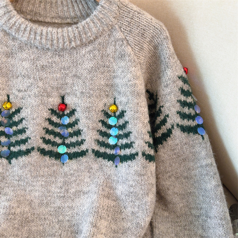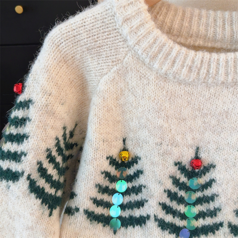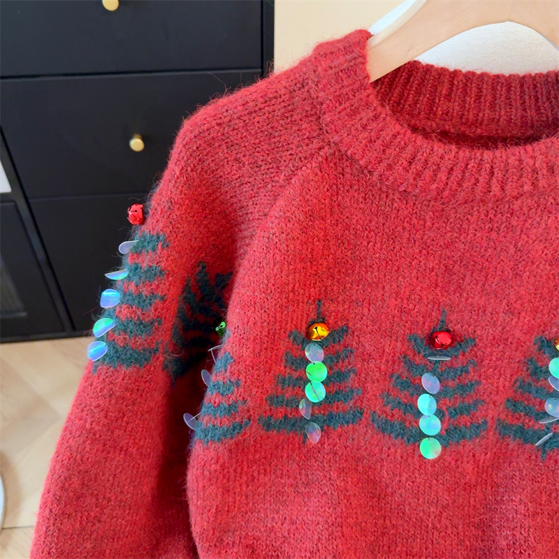 MY15852# 设计感圣诞毛衣女新款重工铃铛亮片复古小个子针织衫女裝貨源服裝批發