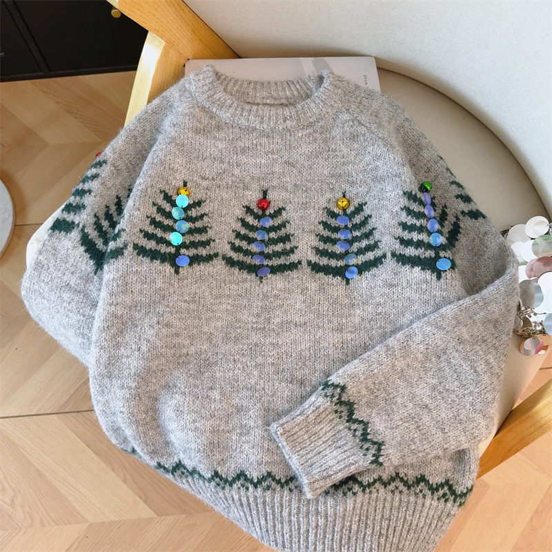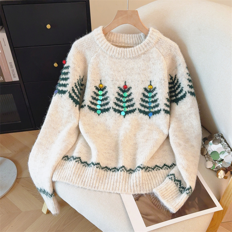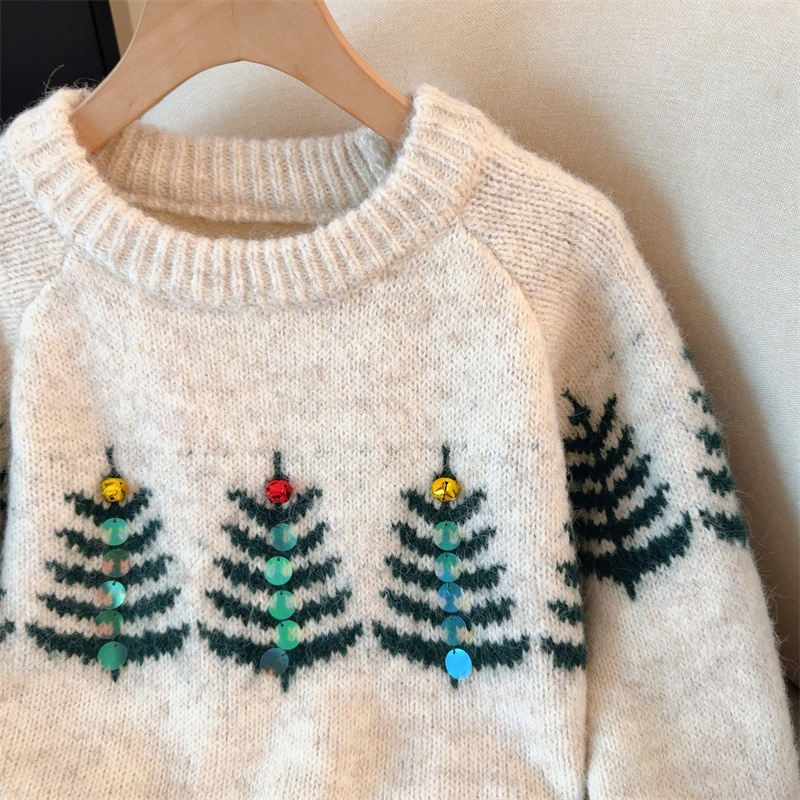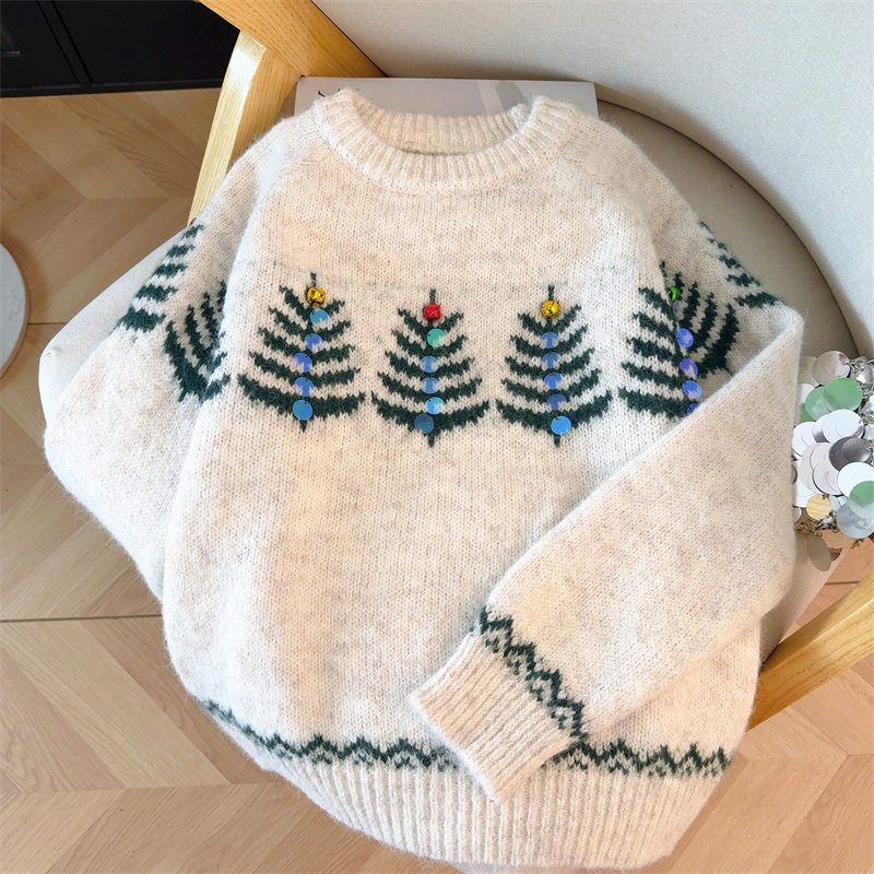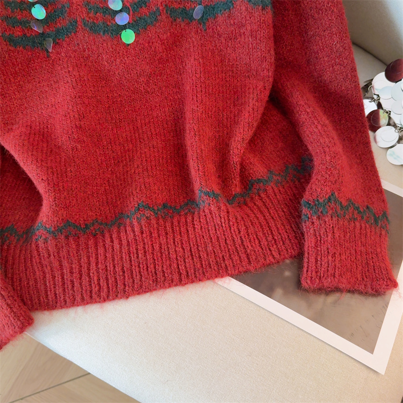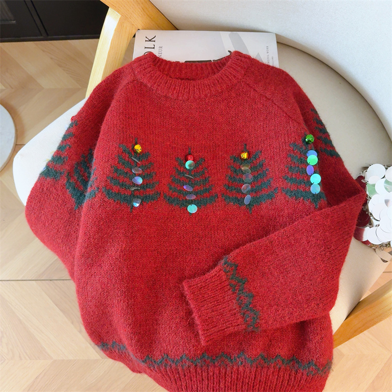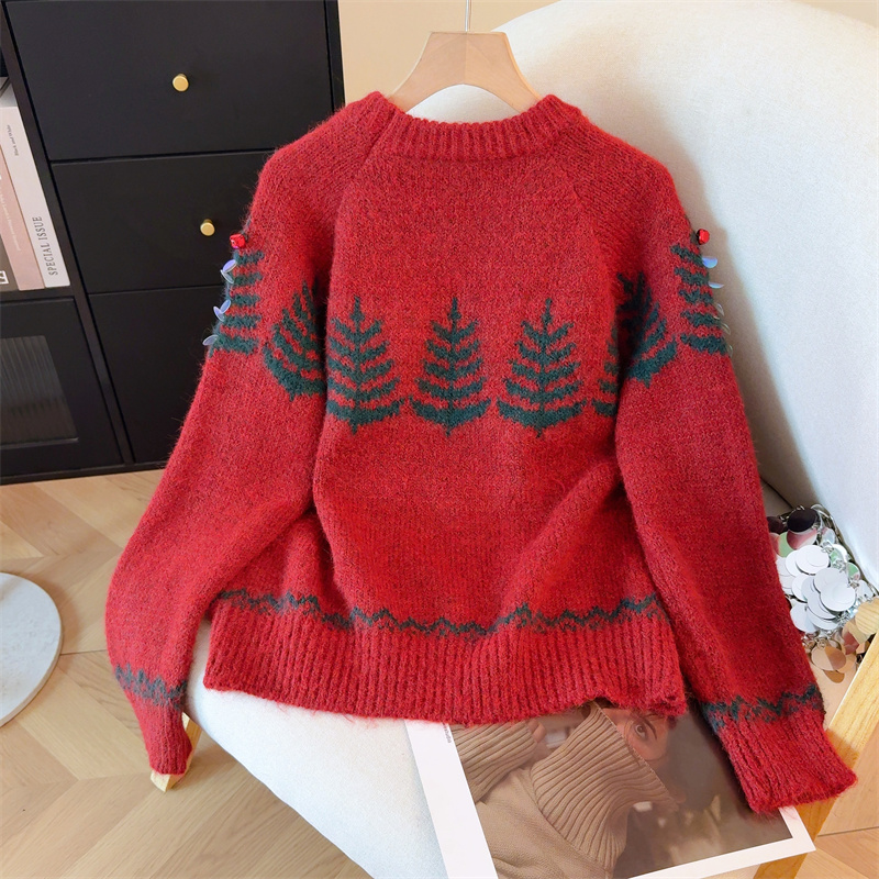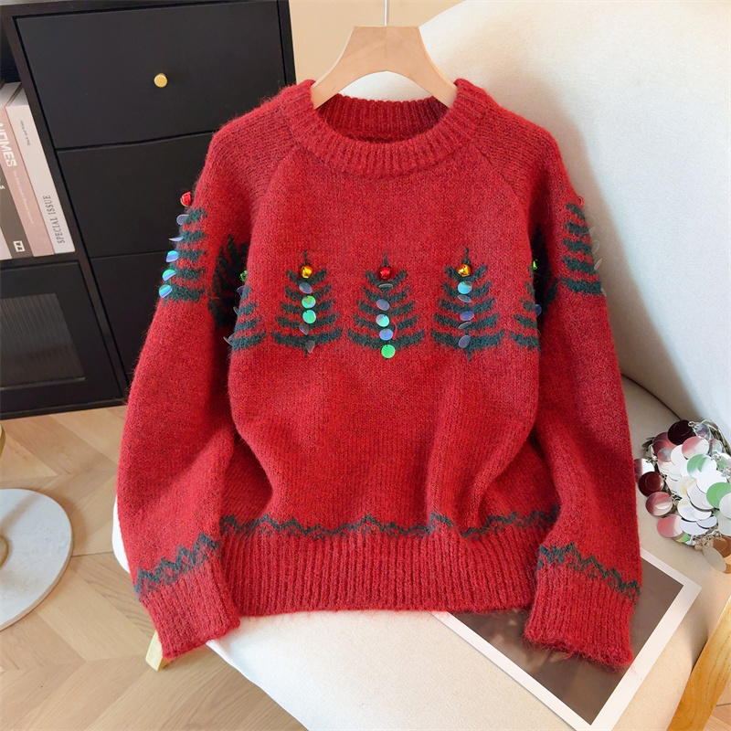 MY15852# 设计感圣诞毛衣女新款重工铃铛亮片复古小个子针织衫女裝貨源服裝批發
