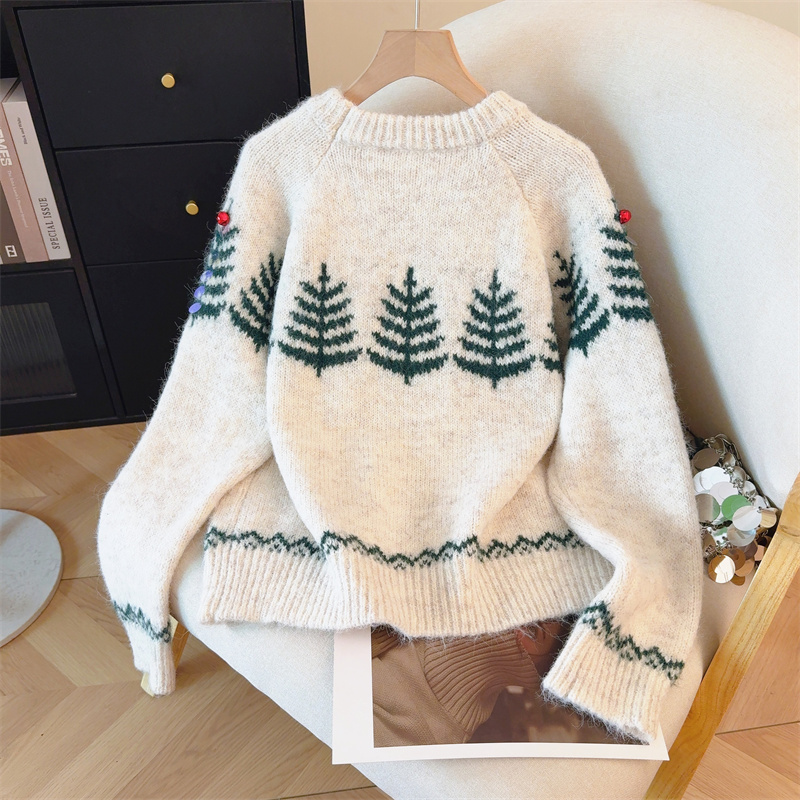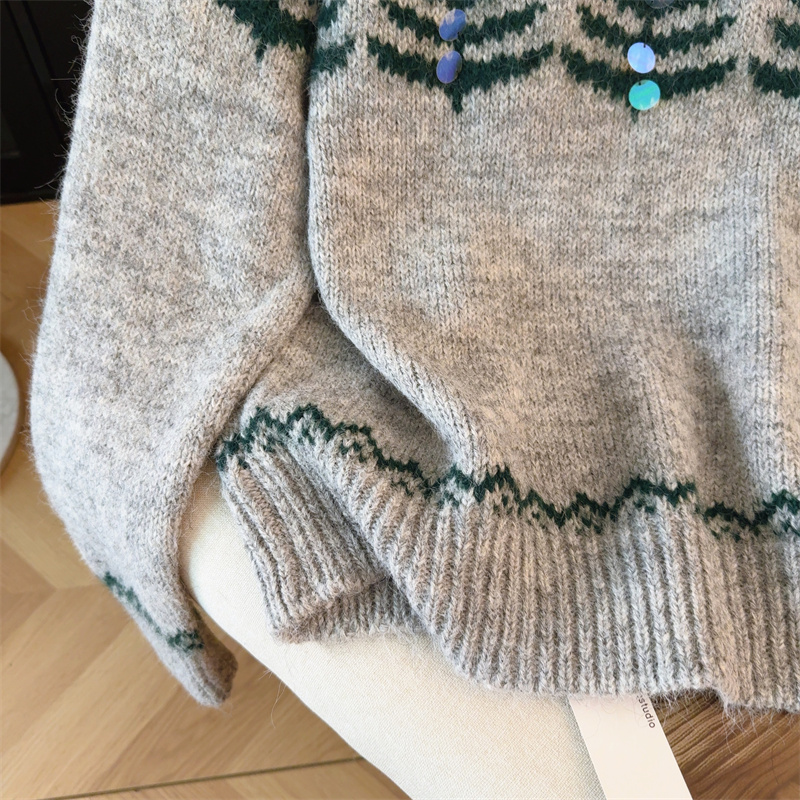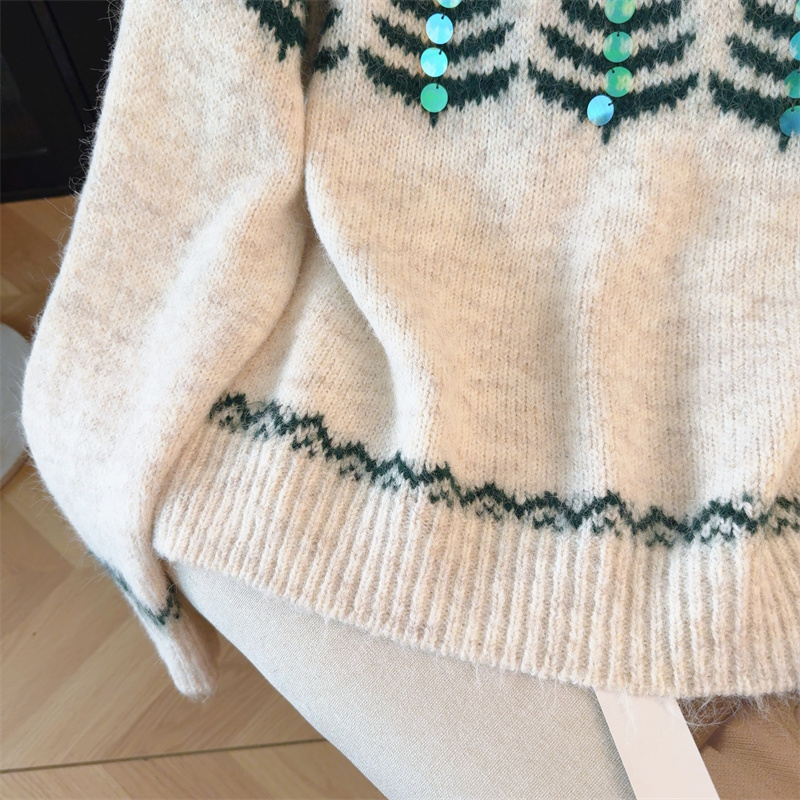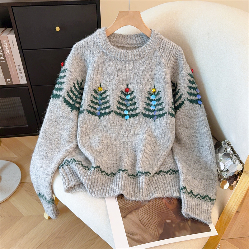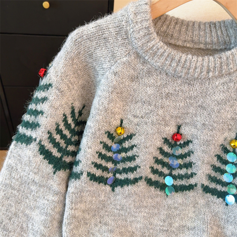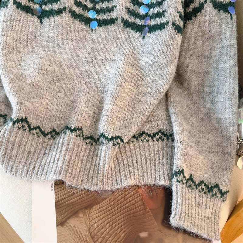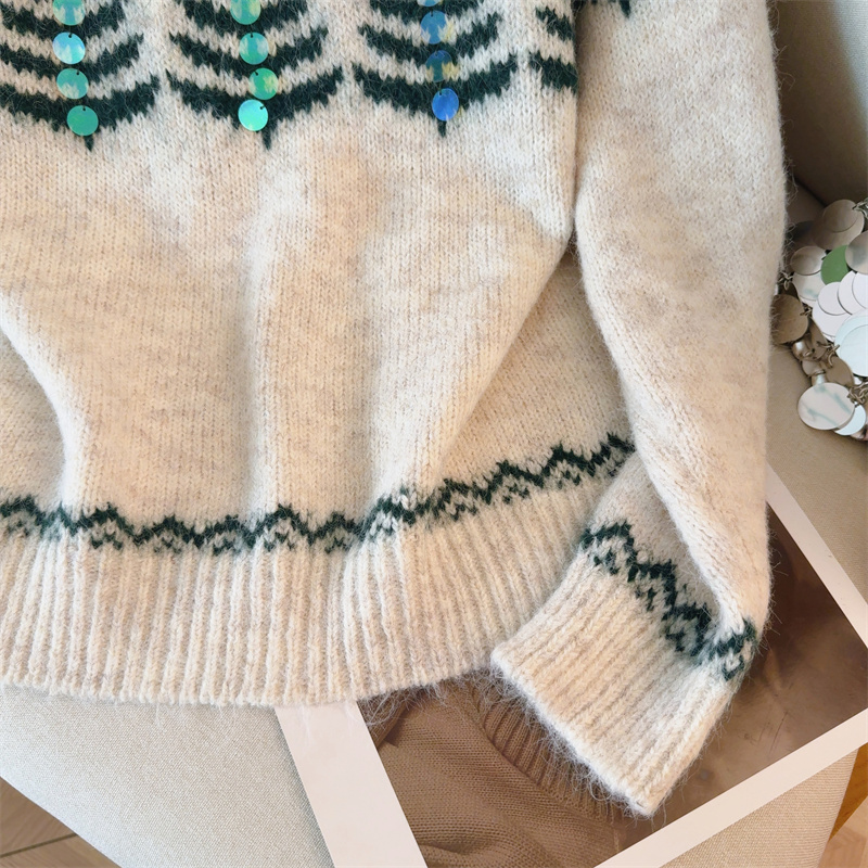 MY15852# 设计感圣诞毛衣女新款重工铃铛亮片复古小个子针织衫女裝貨源服裝批發