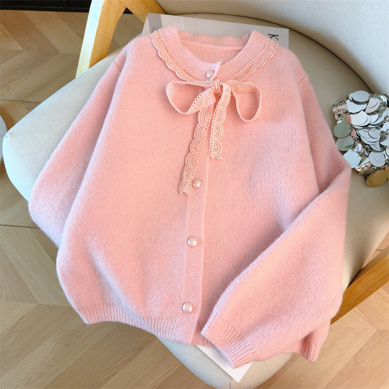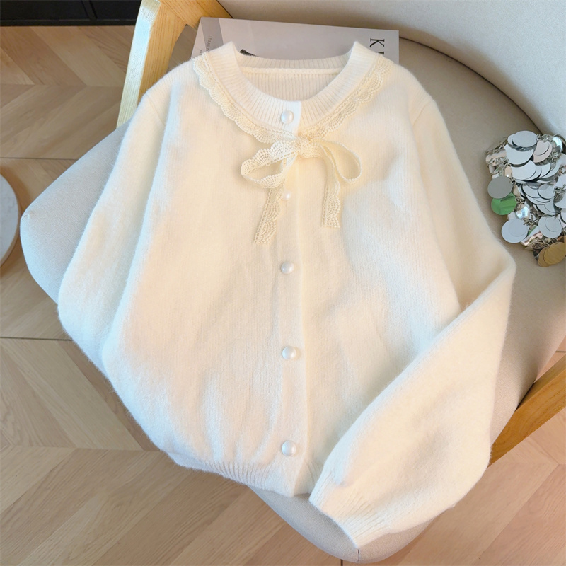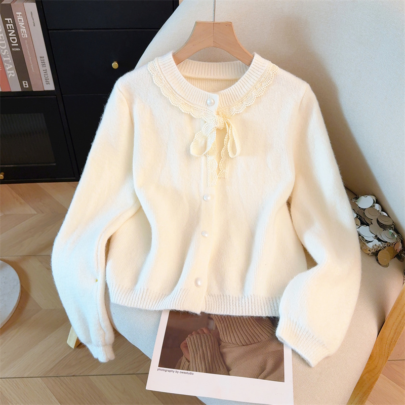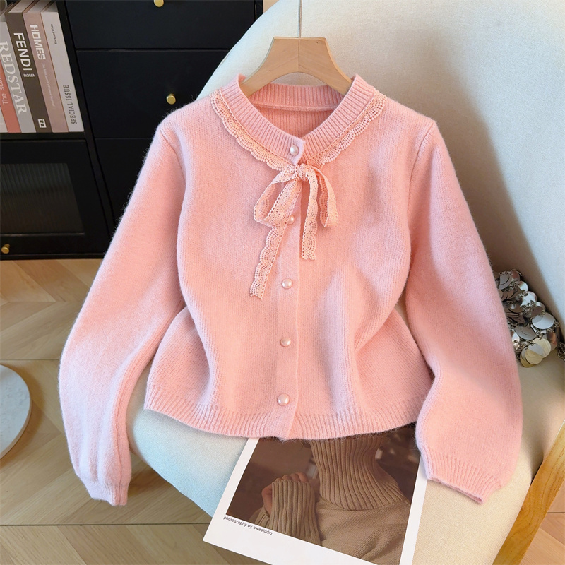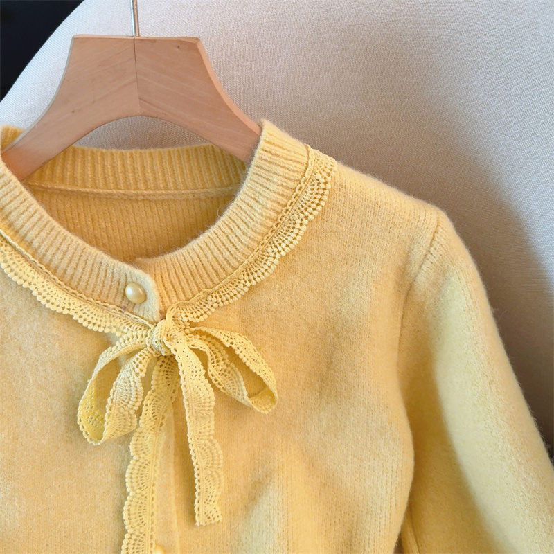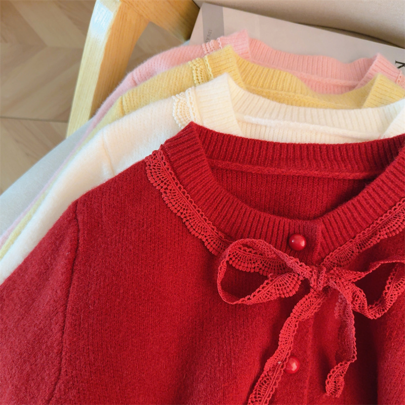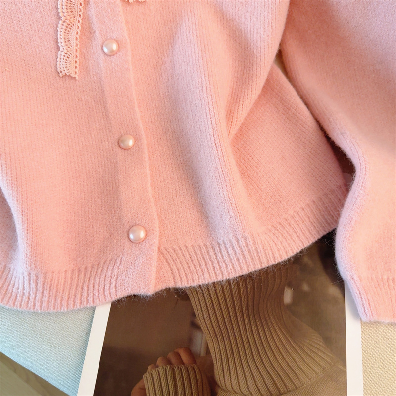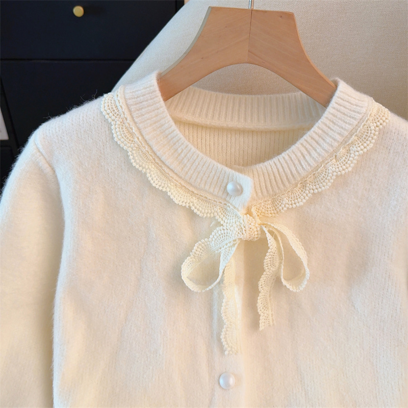 MY15853# 温柔风甜美蕾丝针织开衫上衣爆款新款时尚可爱打底毛衣女女裝貨源服裝批發