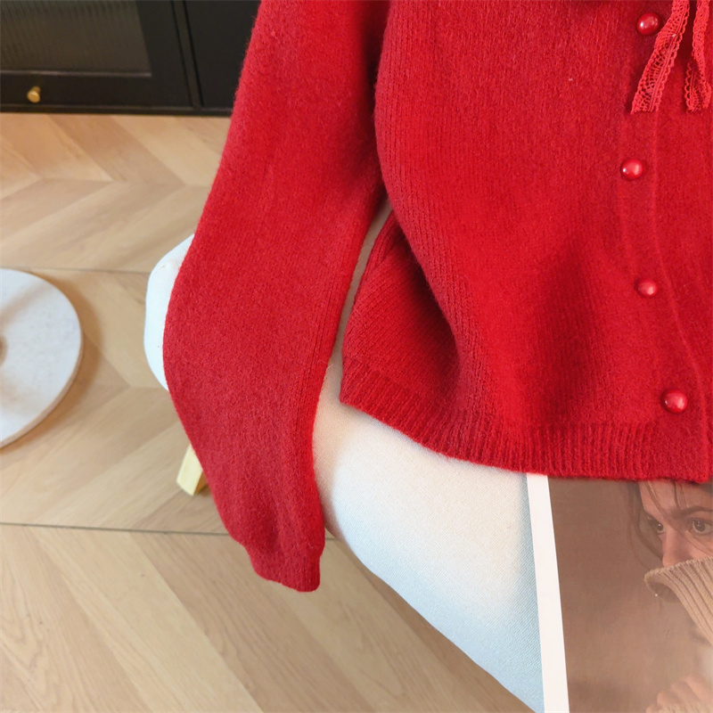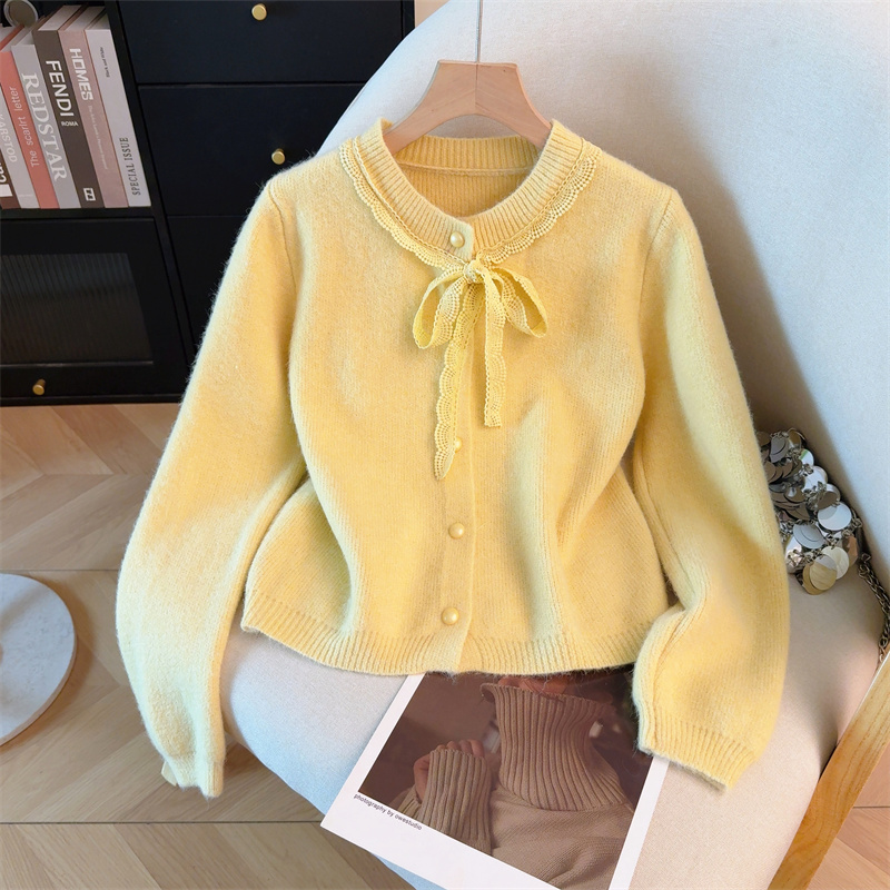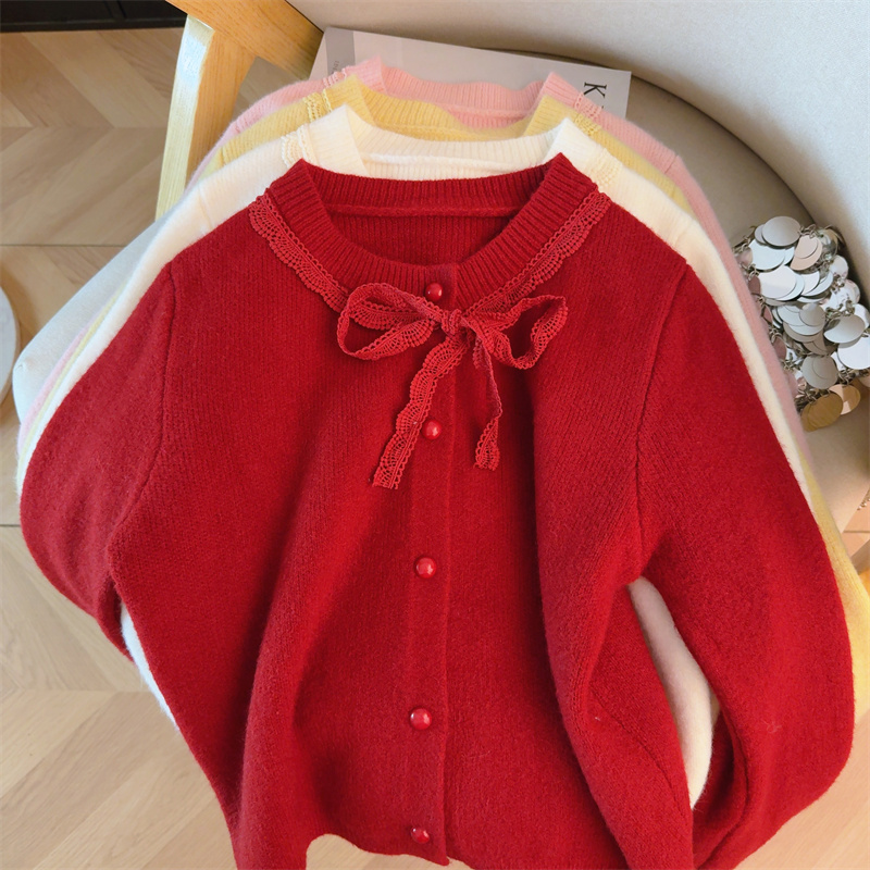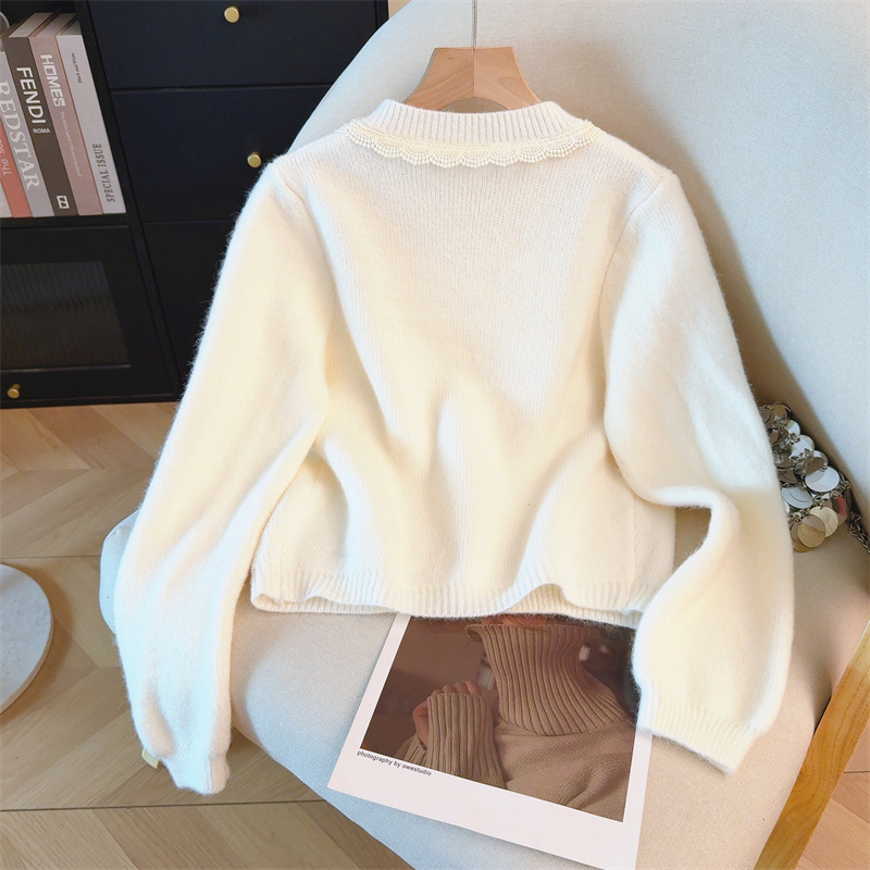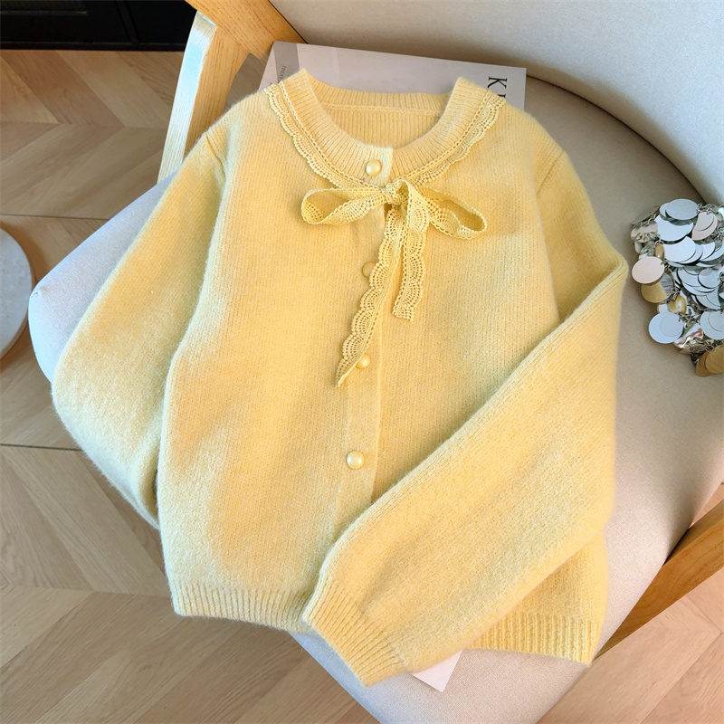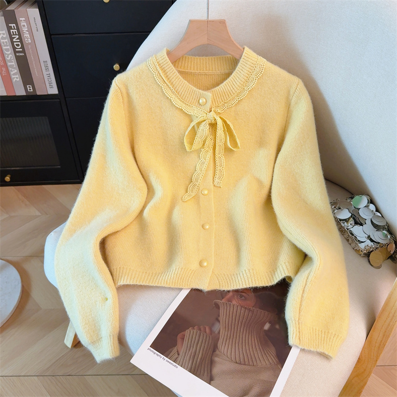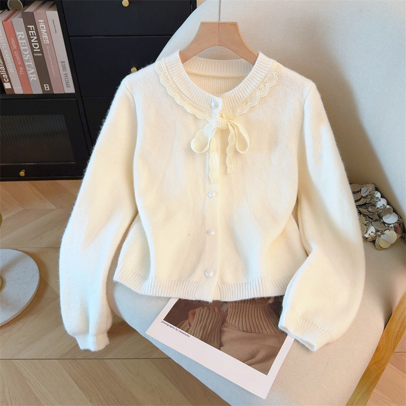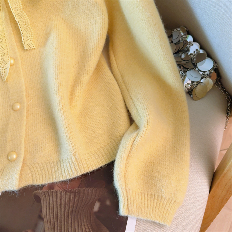MY15853# 温柔风甜美蕾丝针织开衫上衣爆款新款时尚可爱打底毛衣女女裝貨源服裝批發