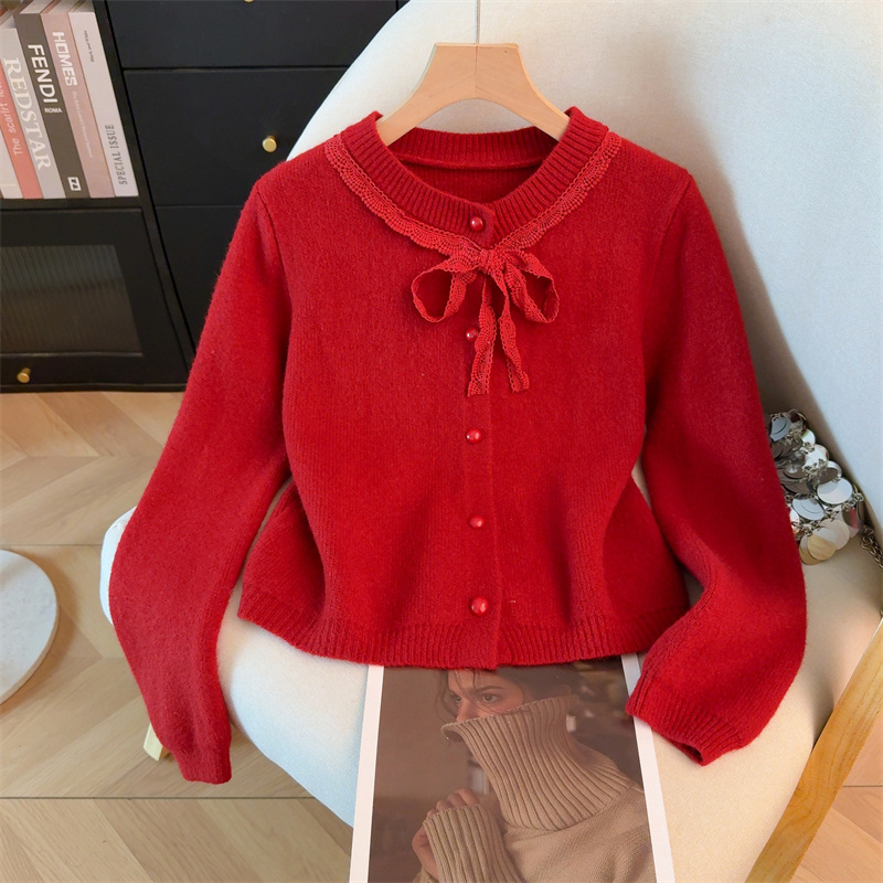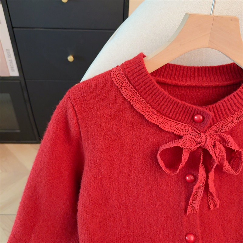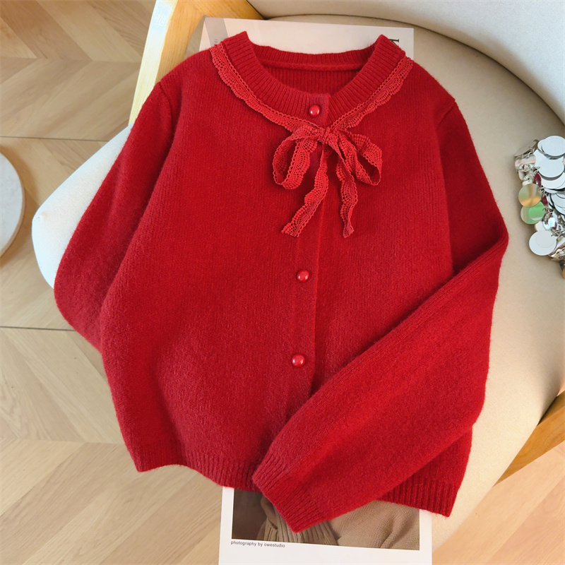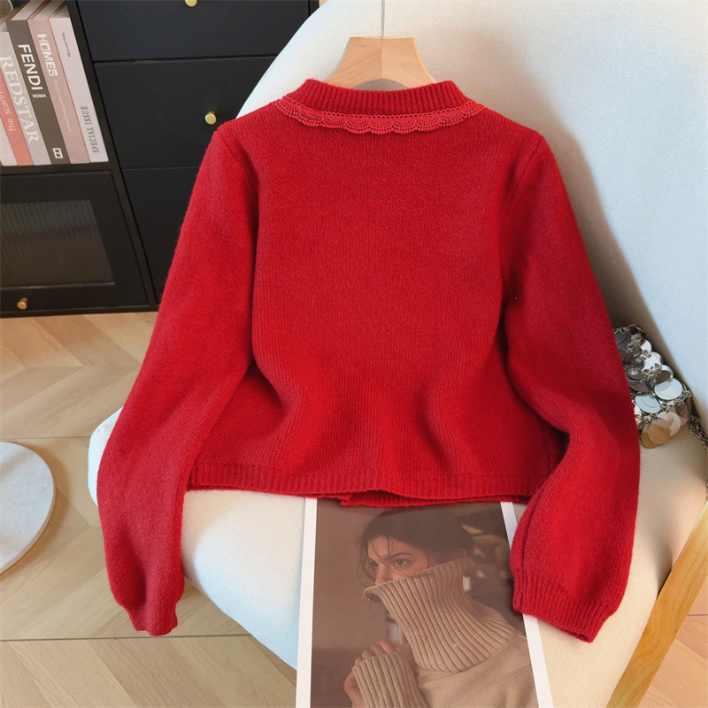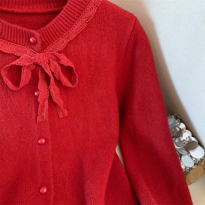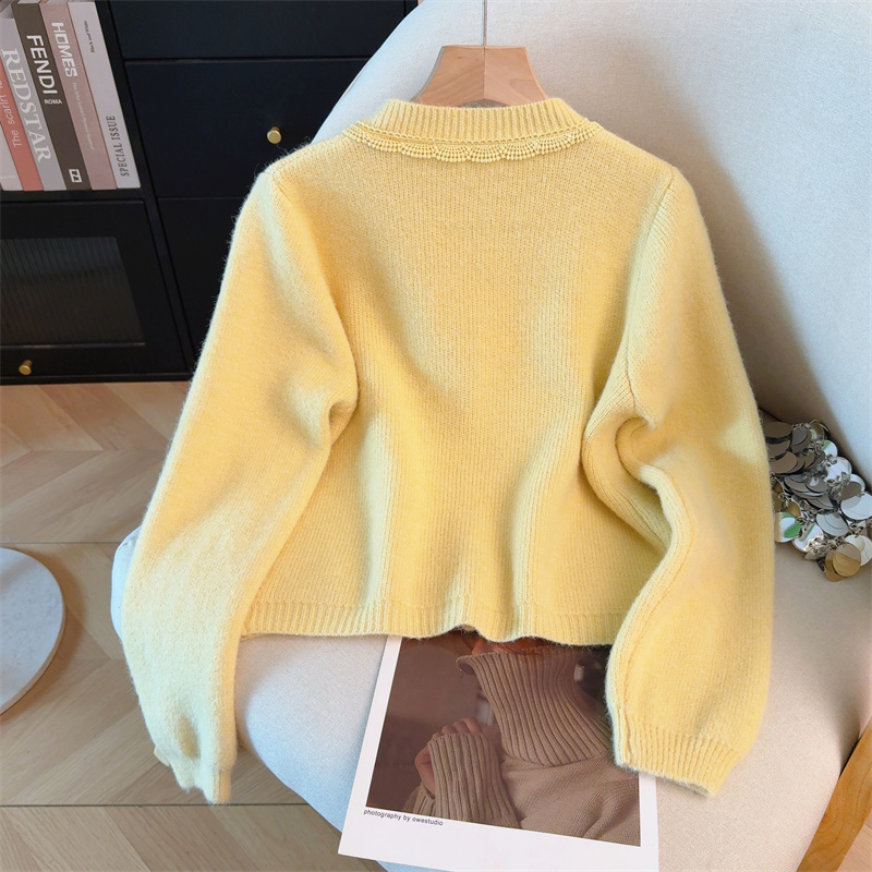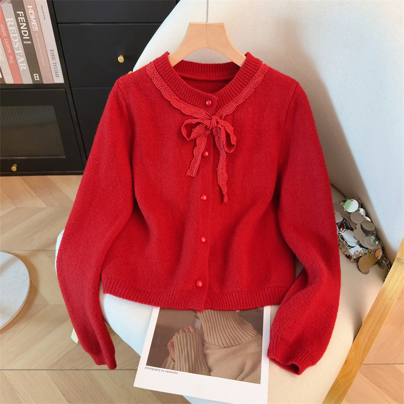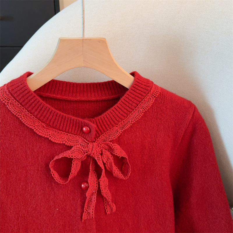 MY15853# 温柔风甜美蕾丝针织开衫上衣爆款新款时尚可爱打底毛衣女女裝貨源服裝批發