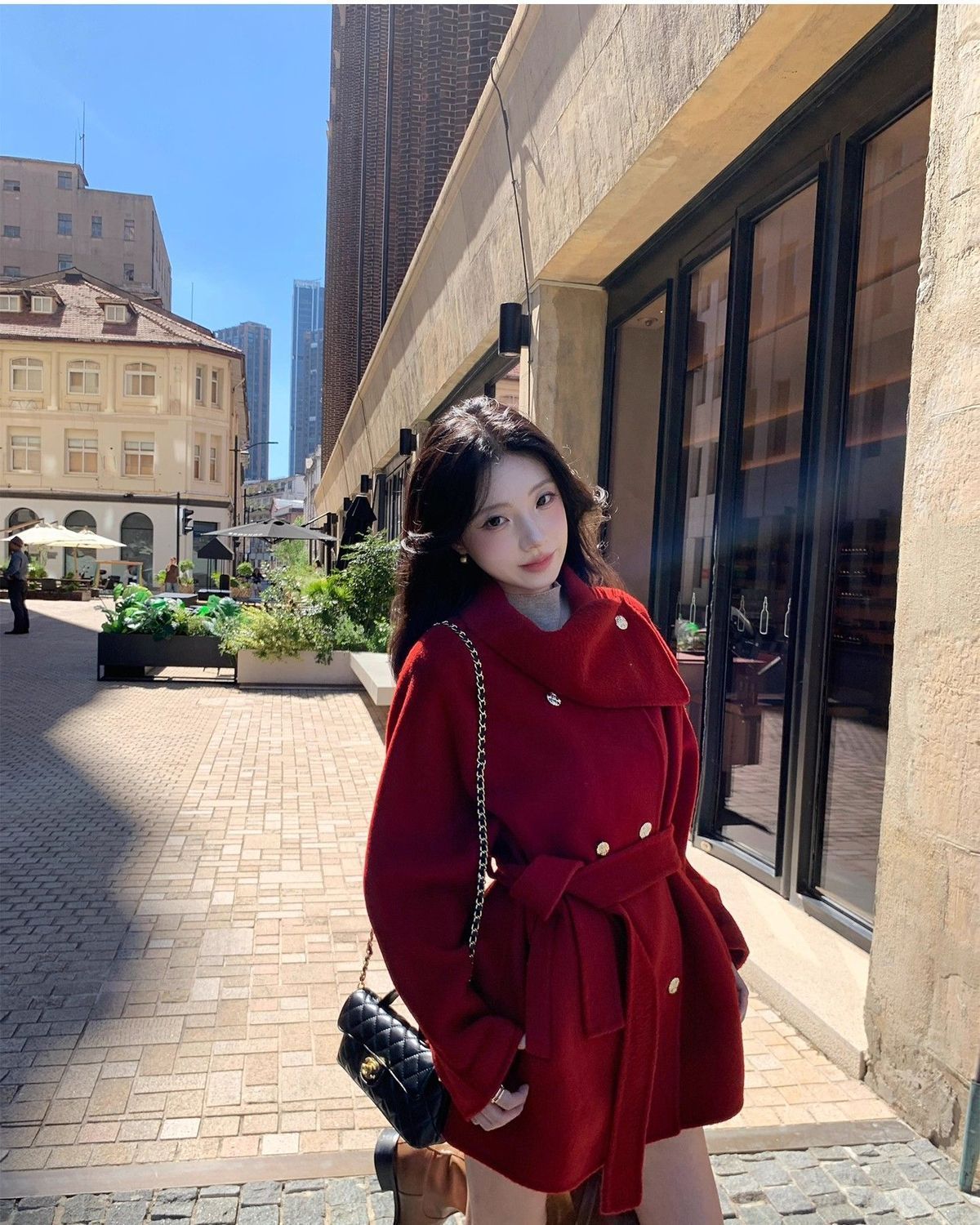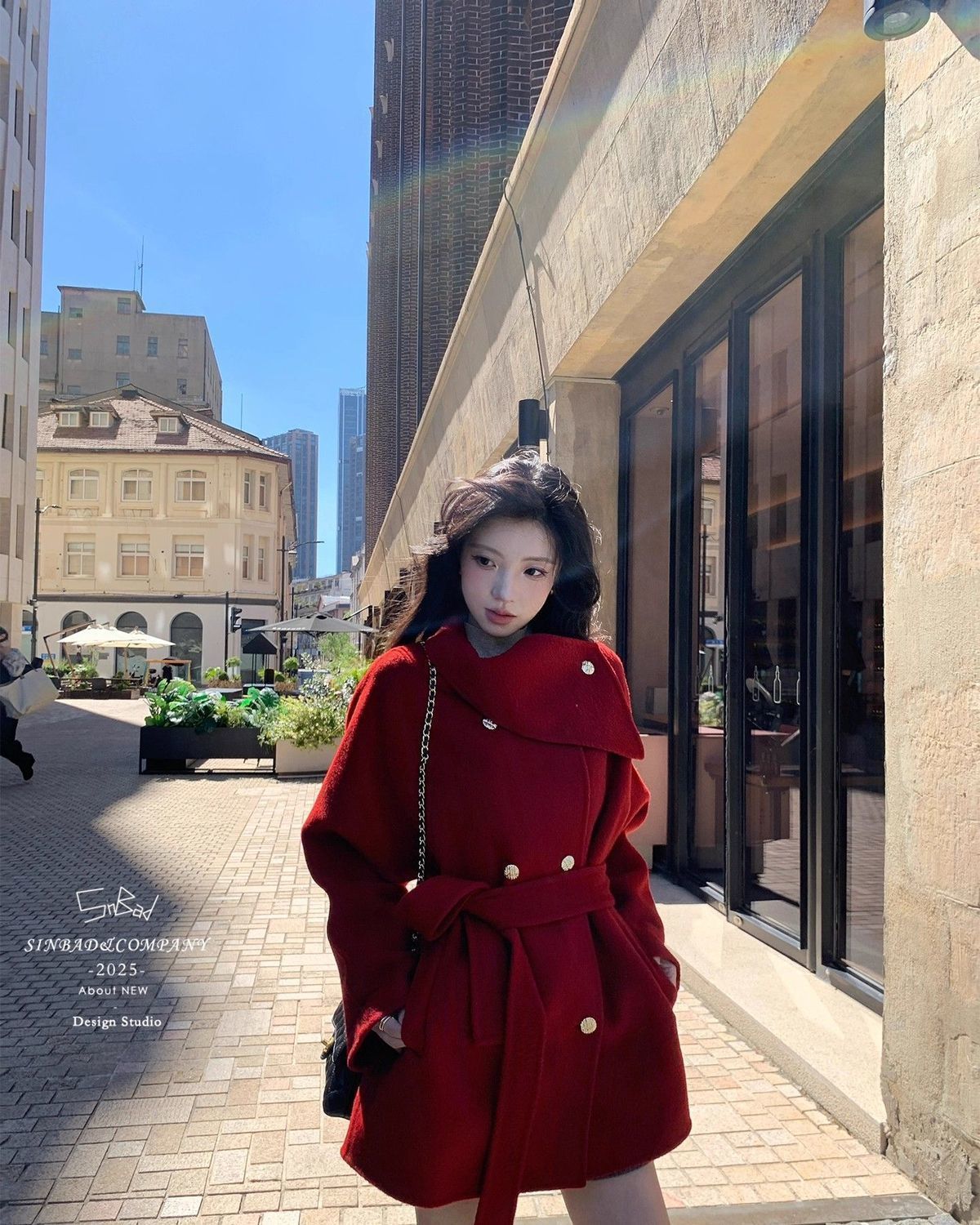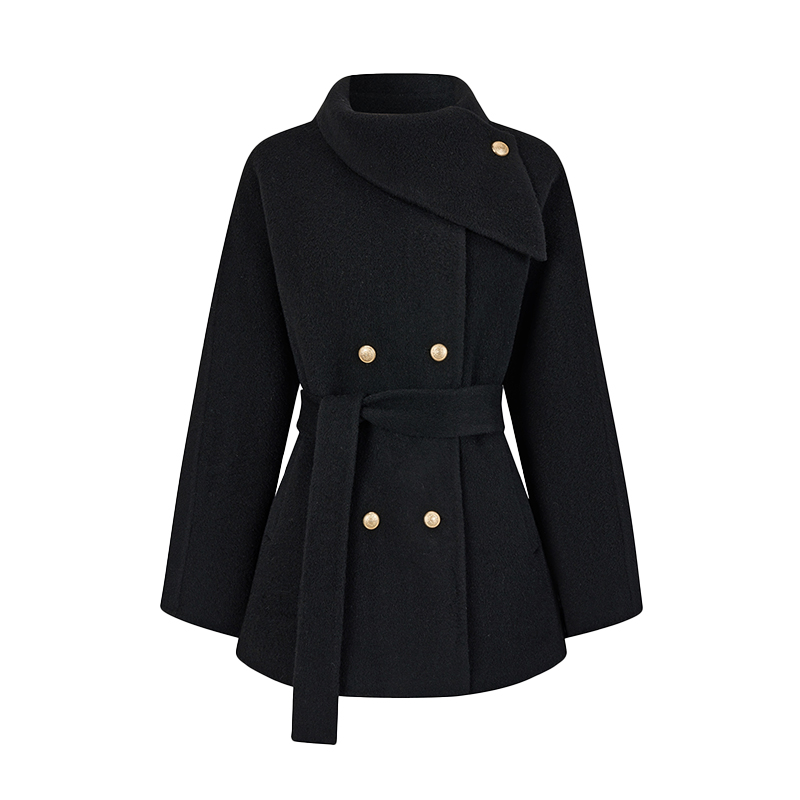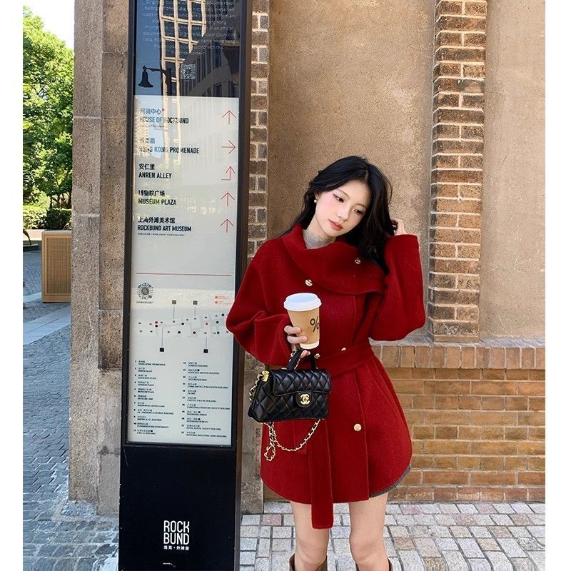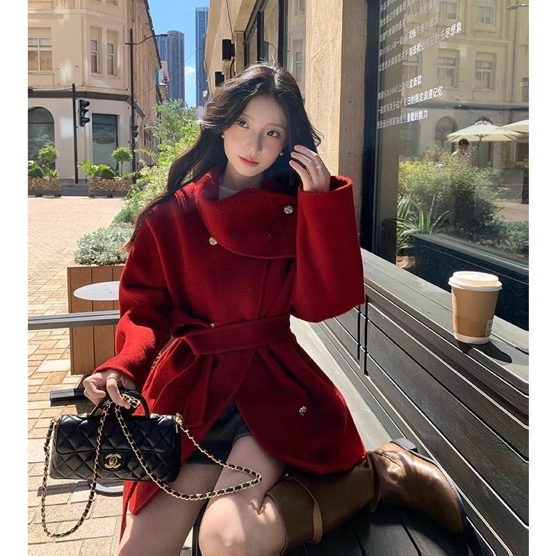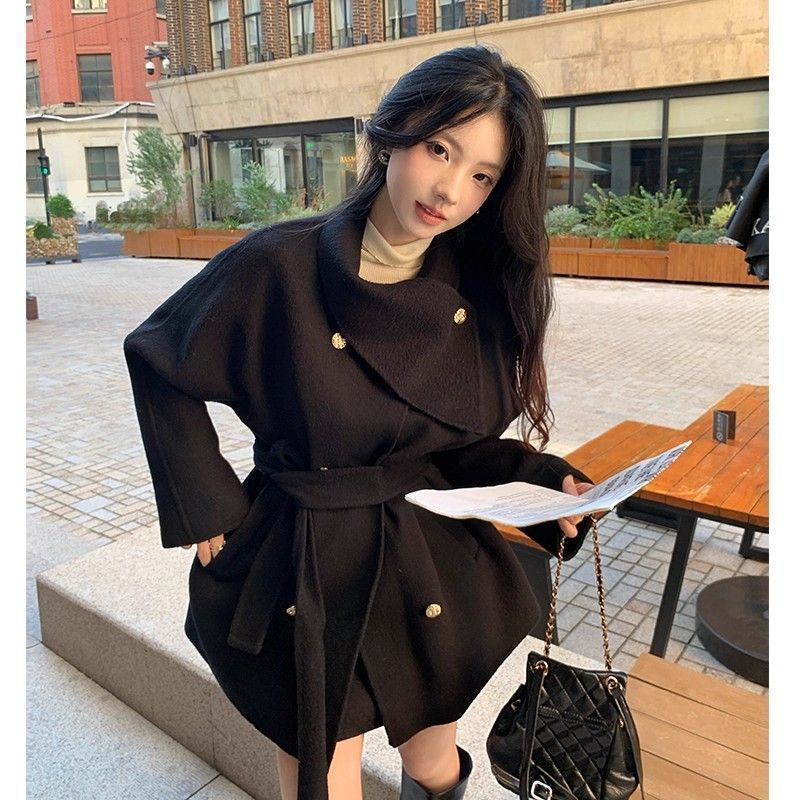 MY15857# 显瘦高级系带气质设计中长款宽松毛呢外套大衣新款简约呢大衣女裝貨源服裝批發