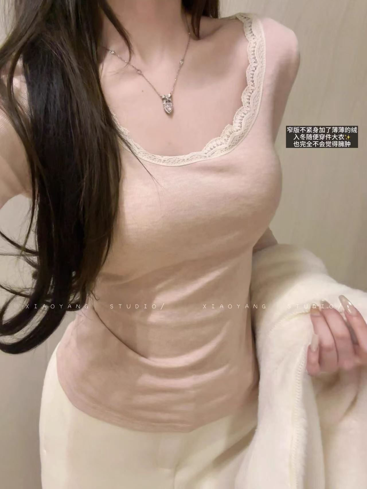 MY15865# 带胸垫纯欲蕾丝长袖T恤女秋冬内搭显瘦设计女裝貨源服裝批發