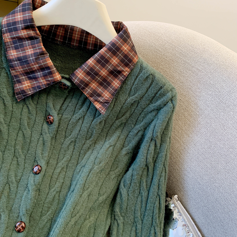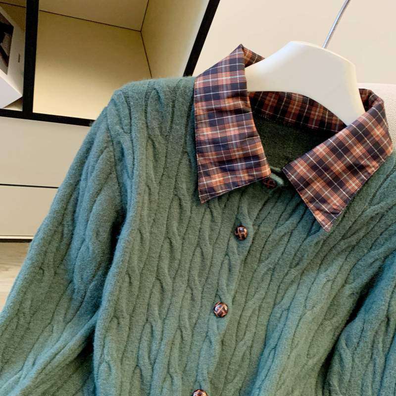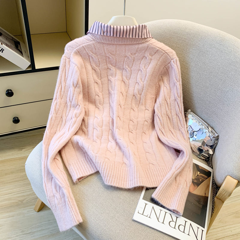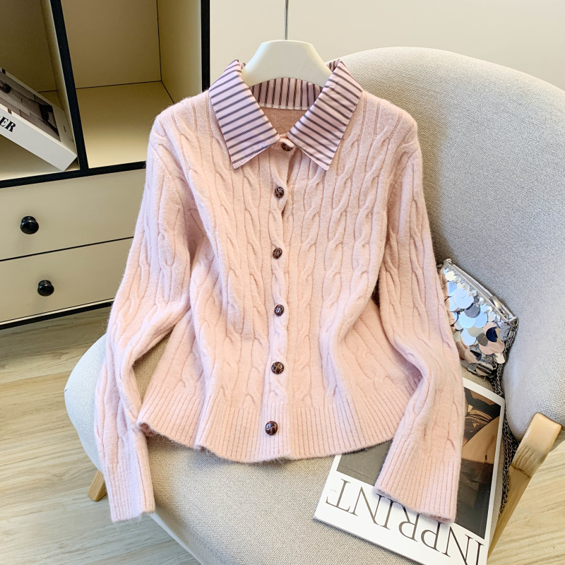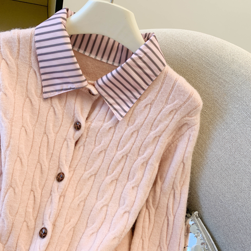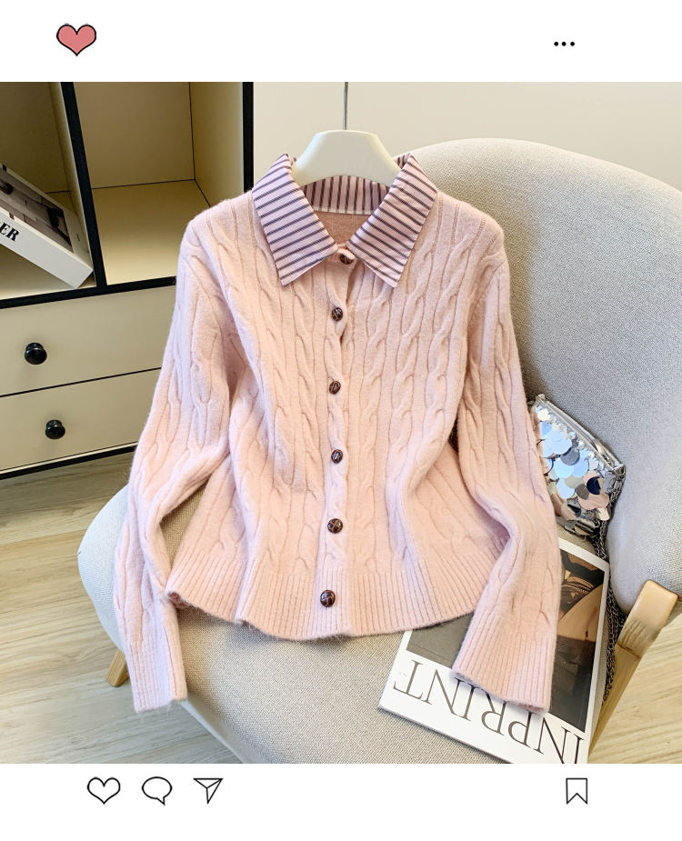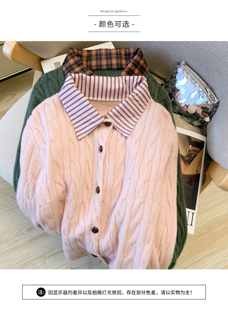 MY15880# 假两件polo领针织开衫外穿独特漂亮毛衣外套女裝貨源服裝批發