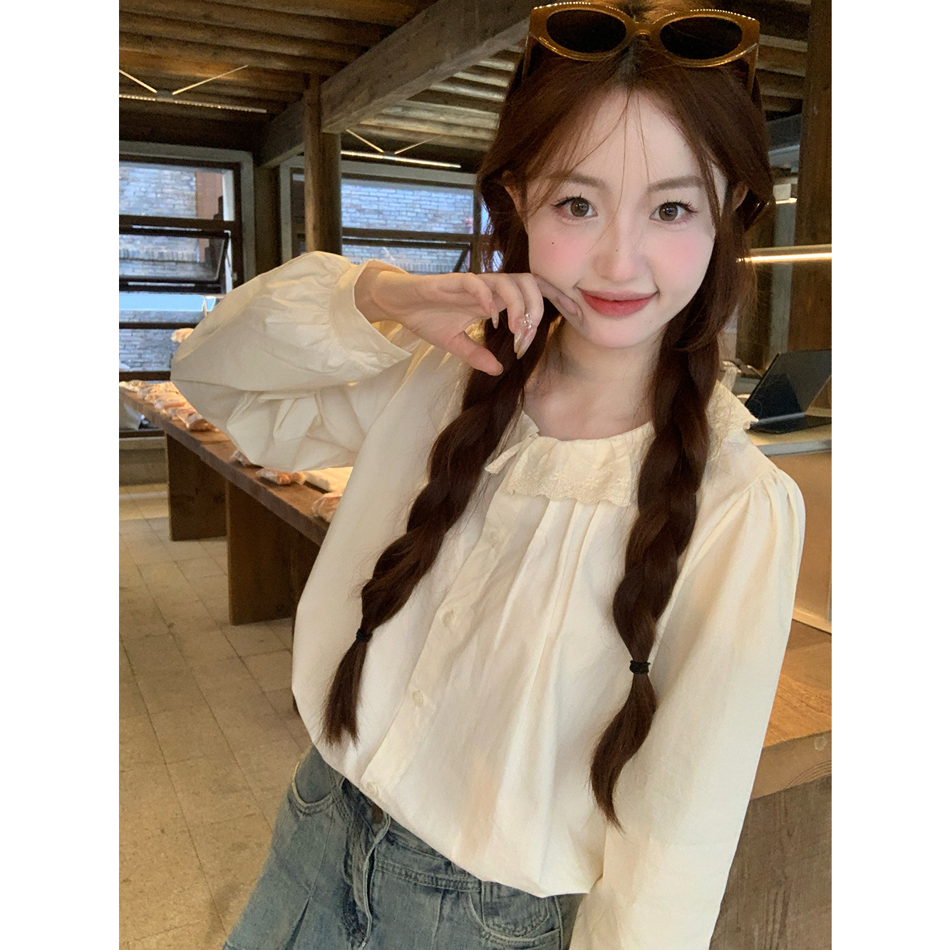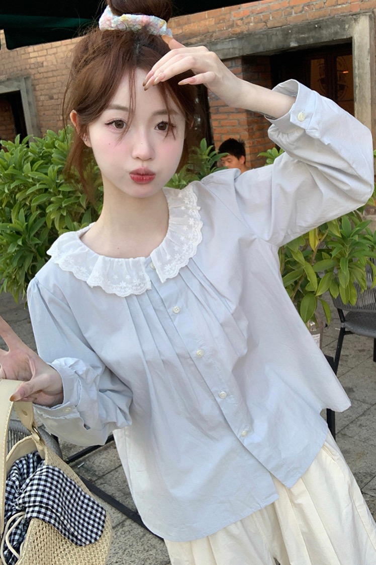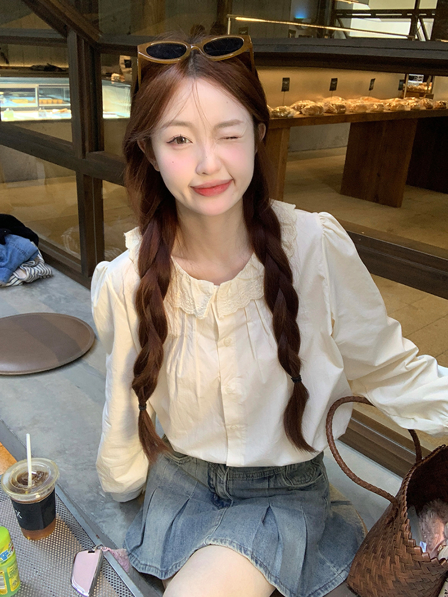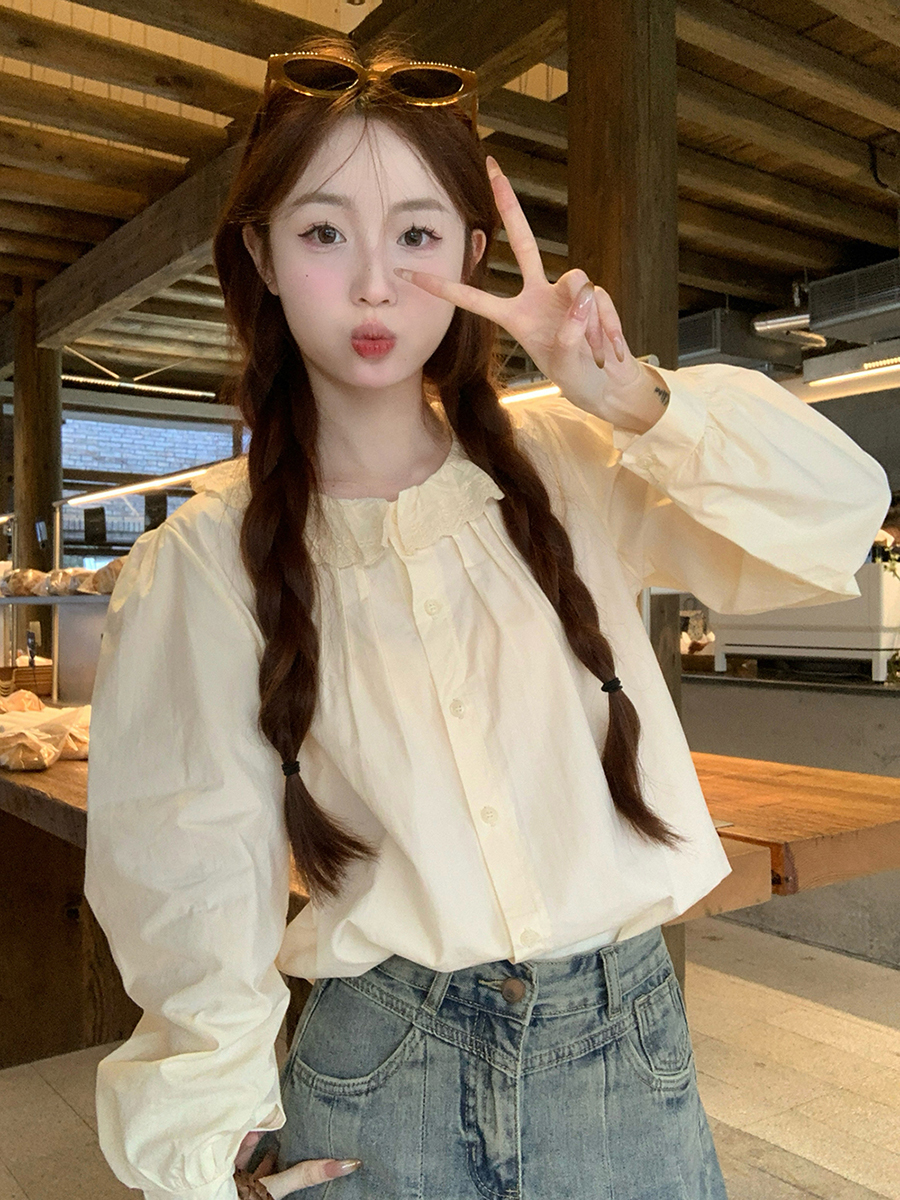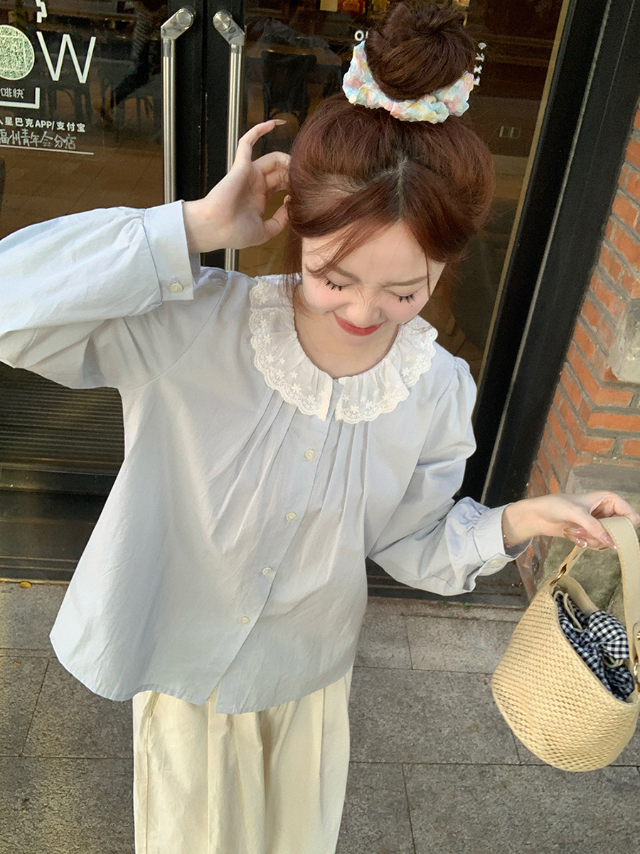 MY15895# 韩版新款上衣设计感甜美学院风花边娃娃领百搭衬衫女裝貨源服裝批發