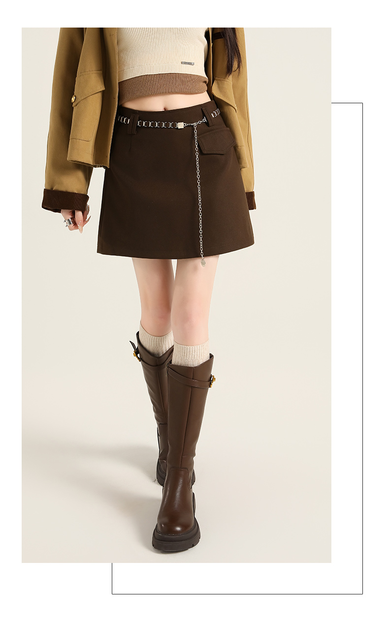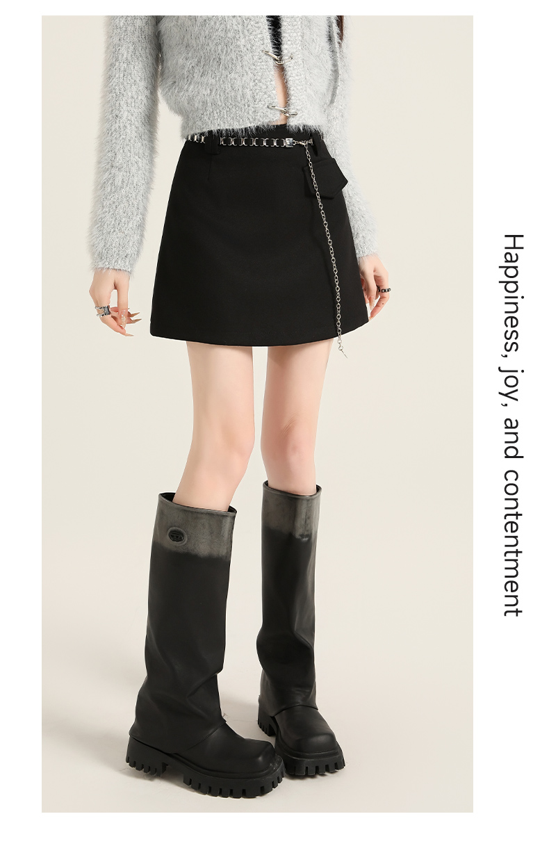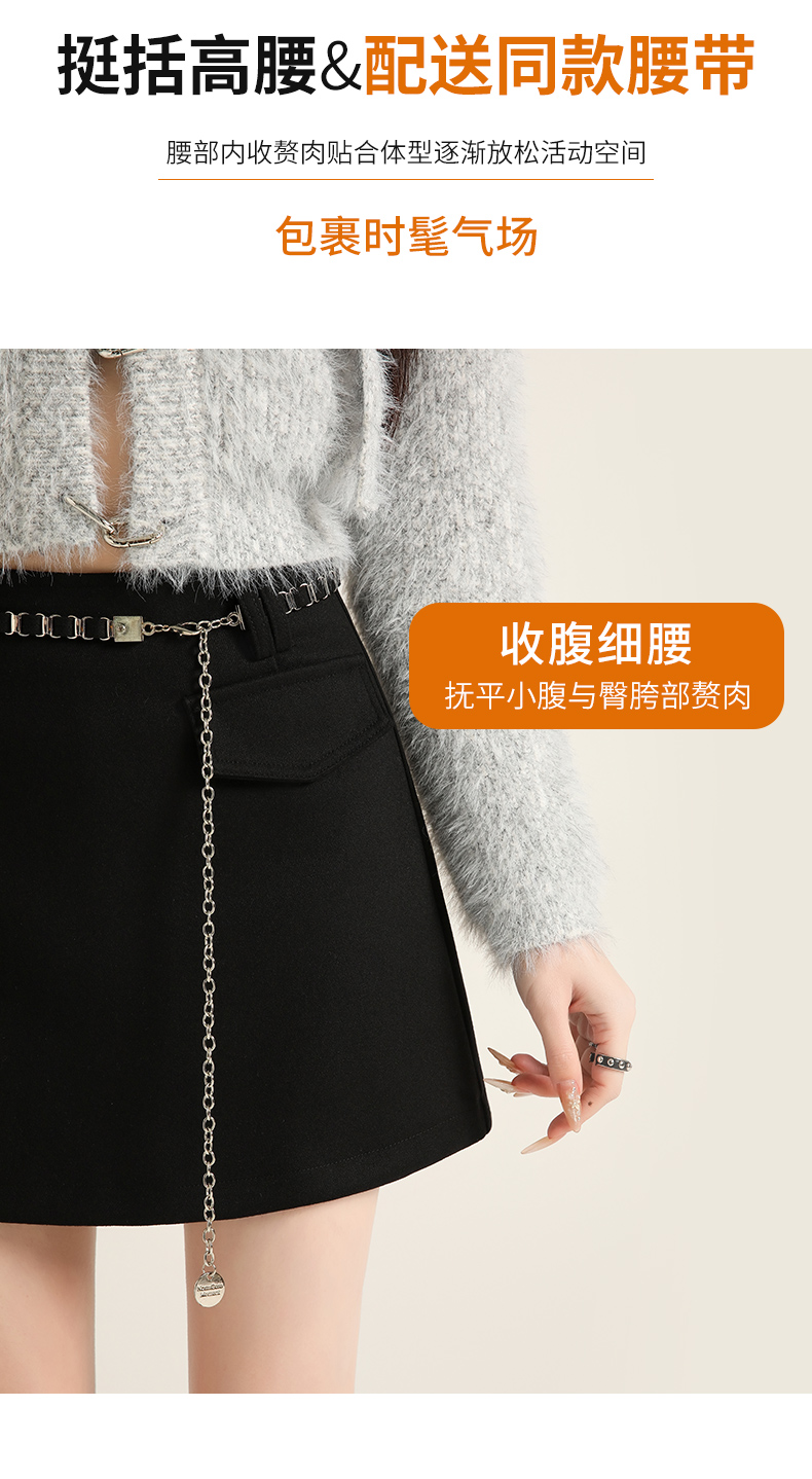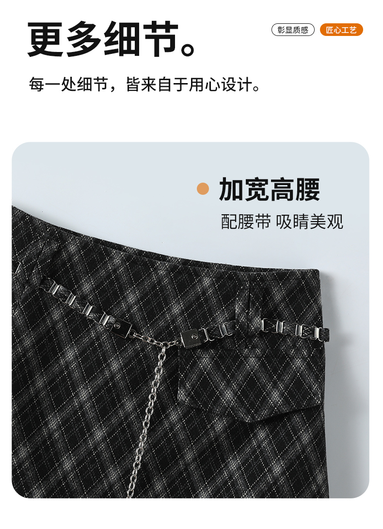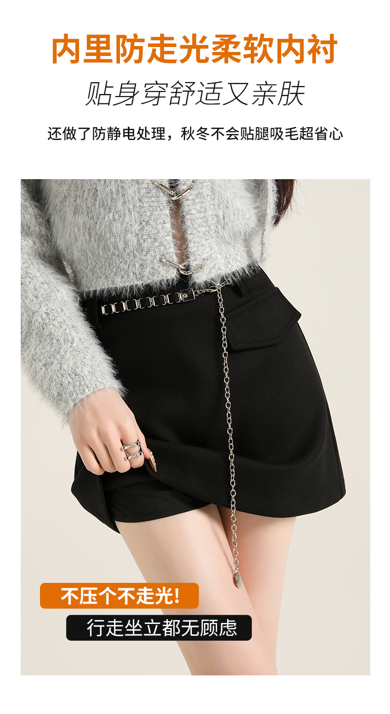 MY15898# 复古格纹毛呢半身裙新款秋冬季小个子链条高腰a字包臀短裙女裝貨源服裝批發