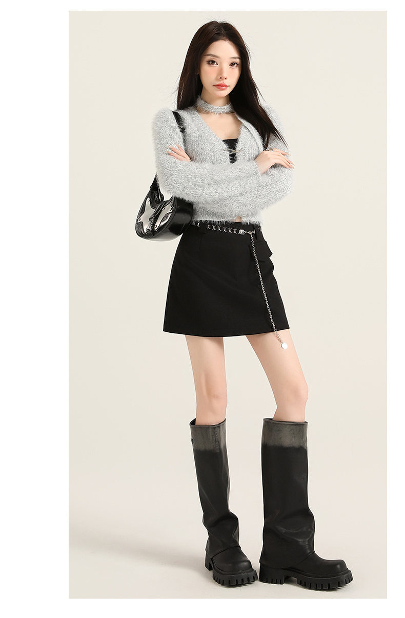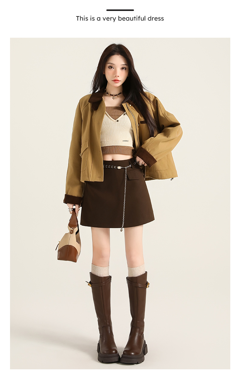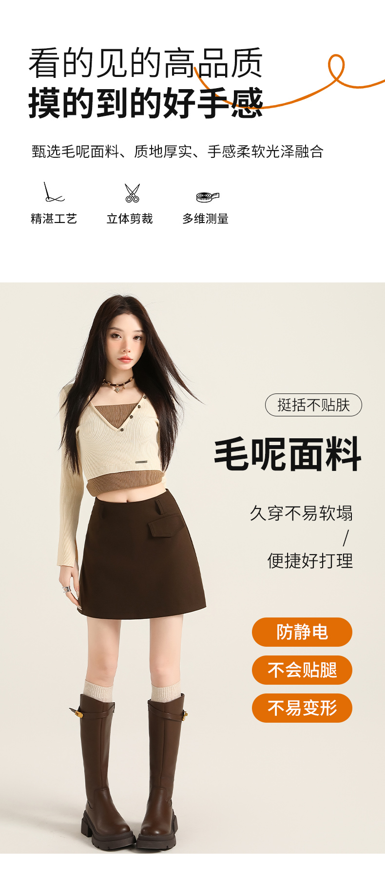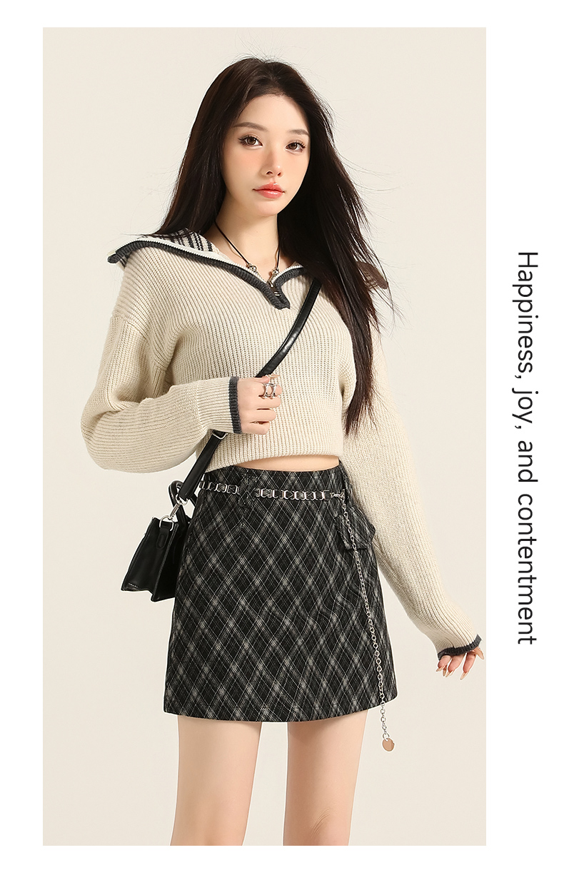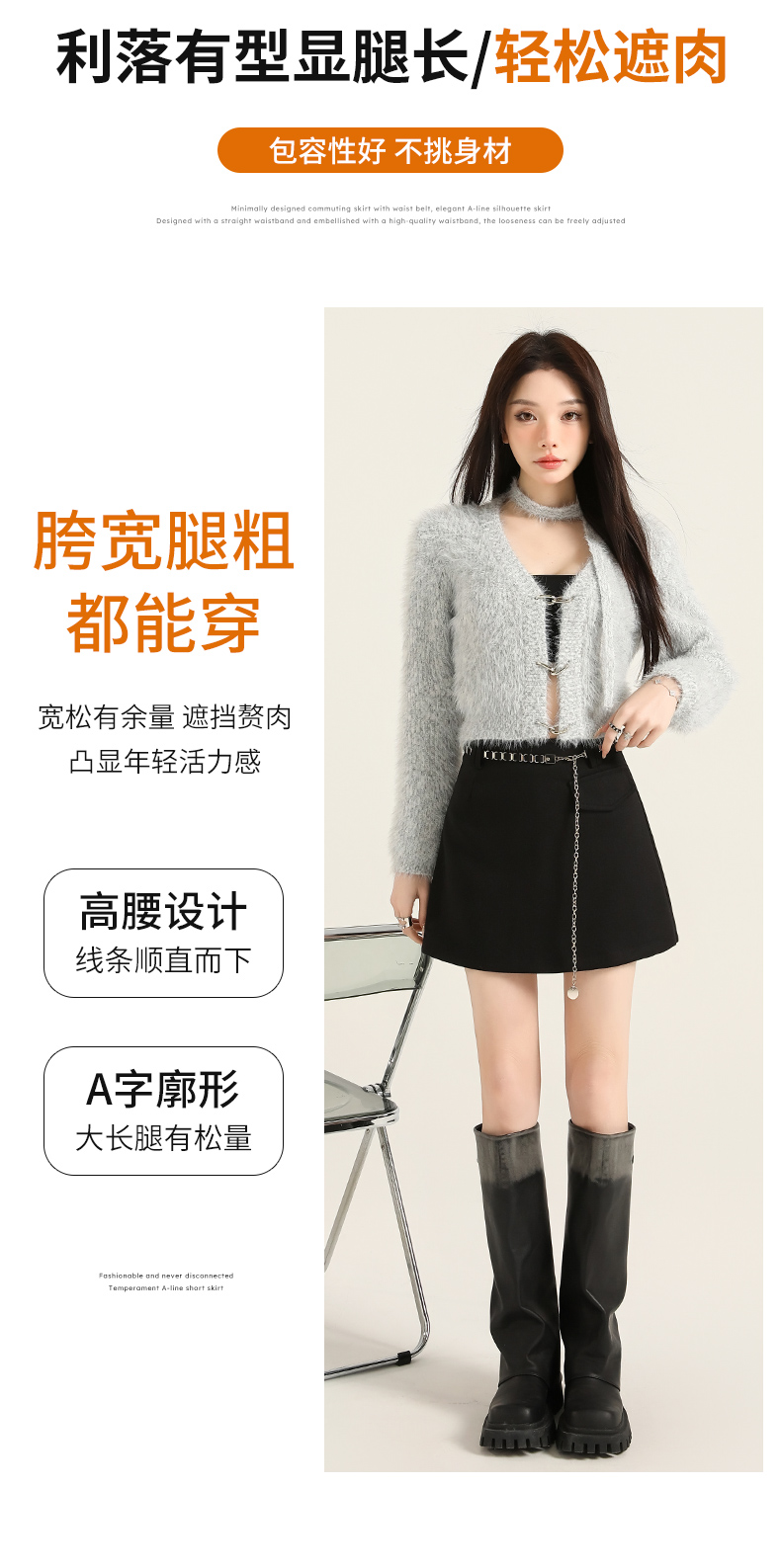 MY15898# 复古格纹毛呢半身裙新款秋冬季小个子链条高腰a字包臀短裙女裝貨源服裝批發