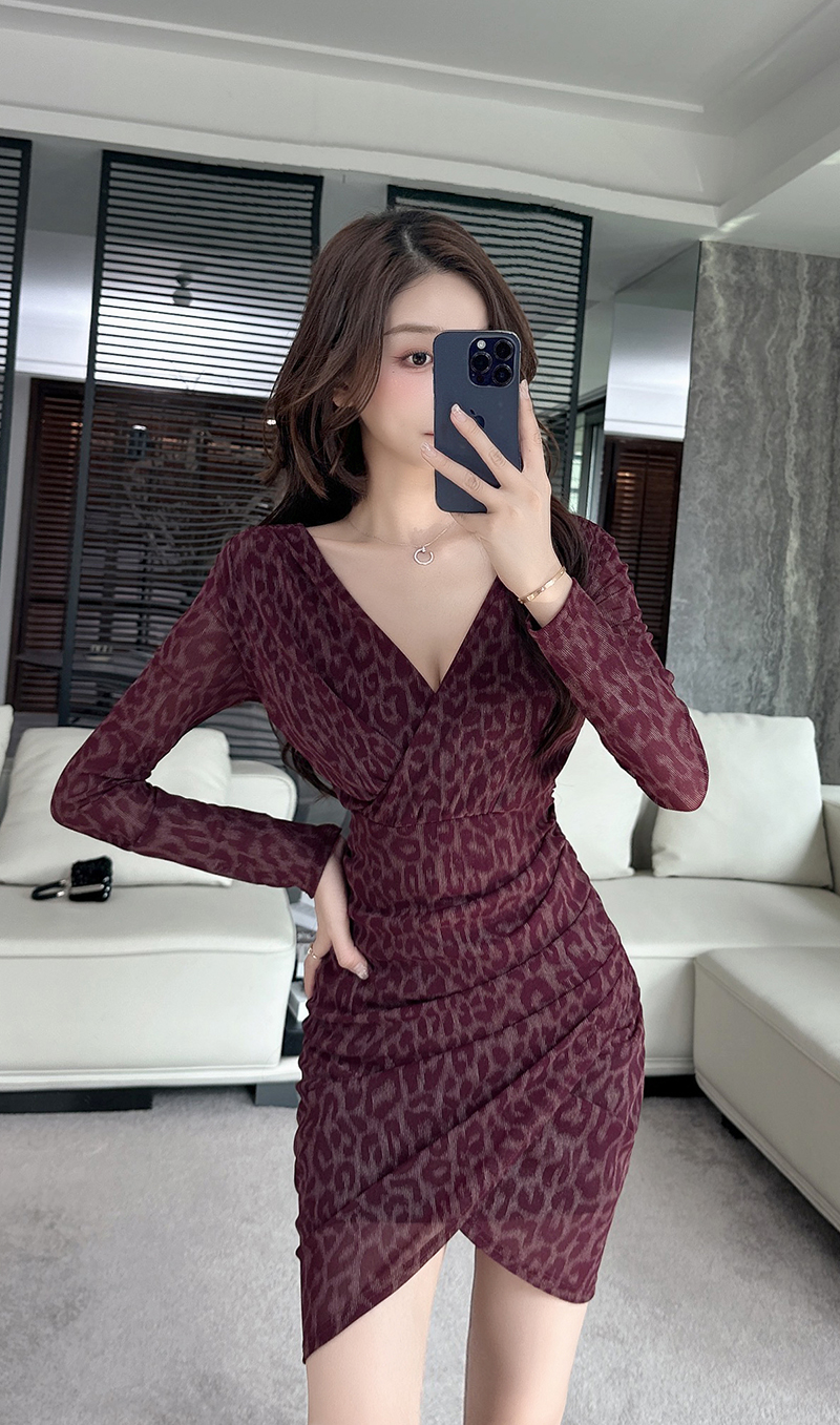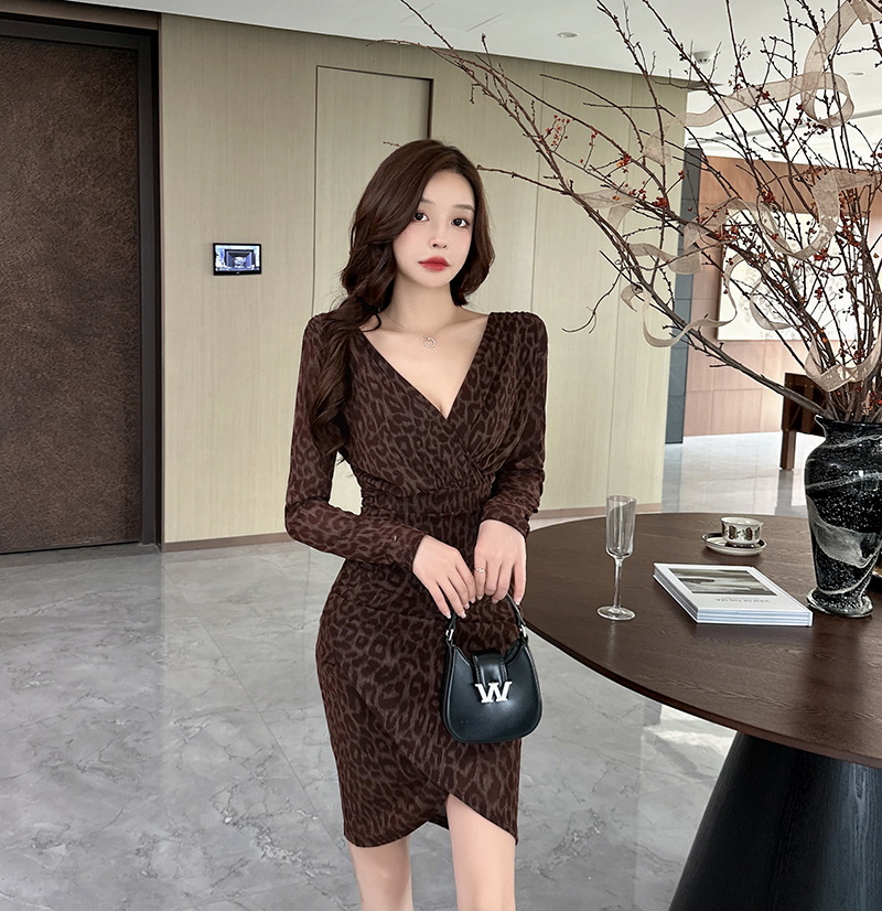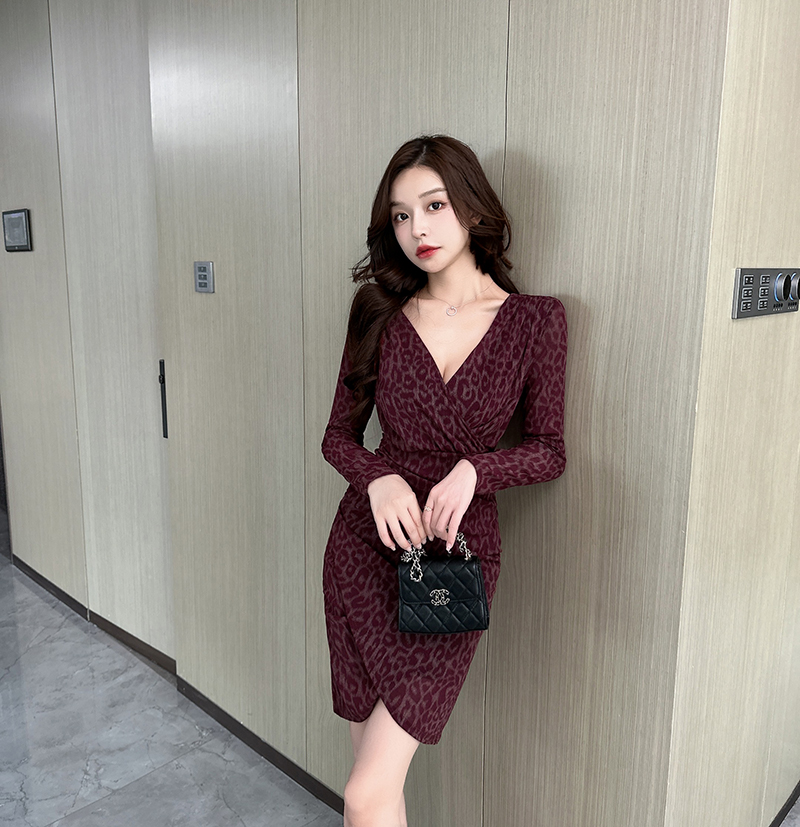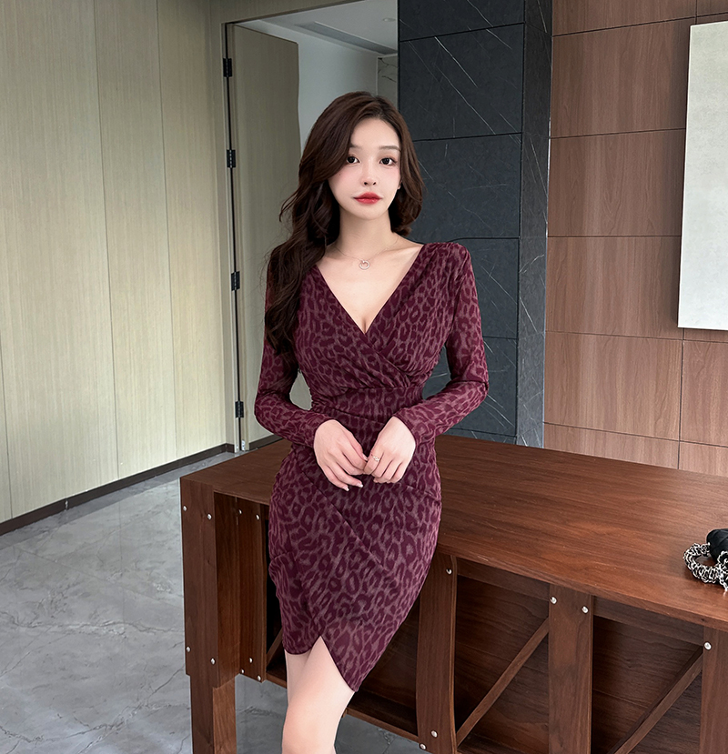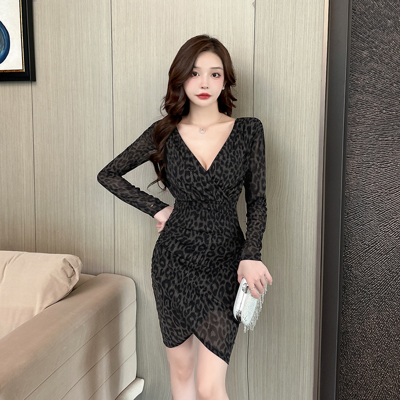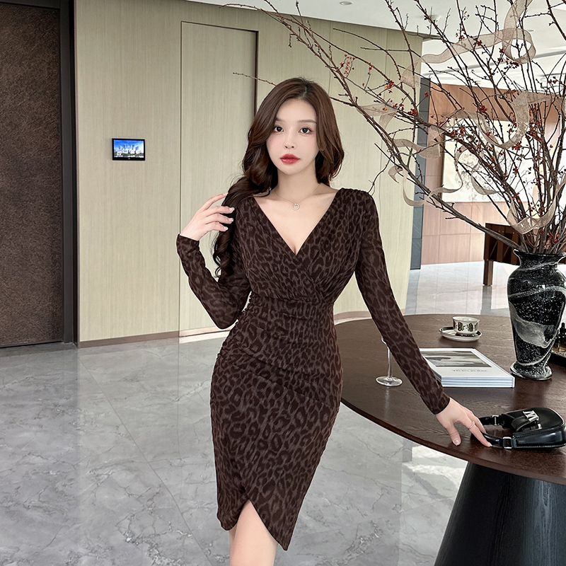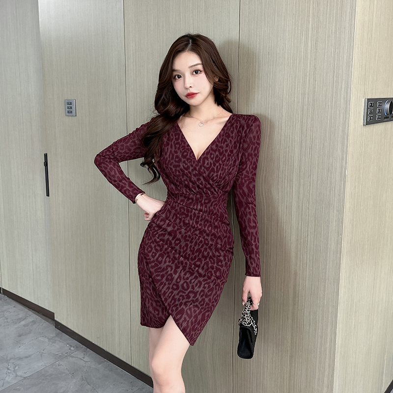 MY15900# 红茶风高级感设计感长裙纯欲性感长袖打底开叉连衣裙女裝貨源服裝批發