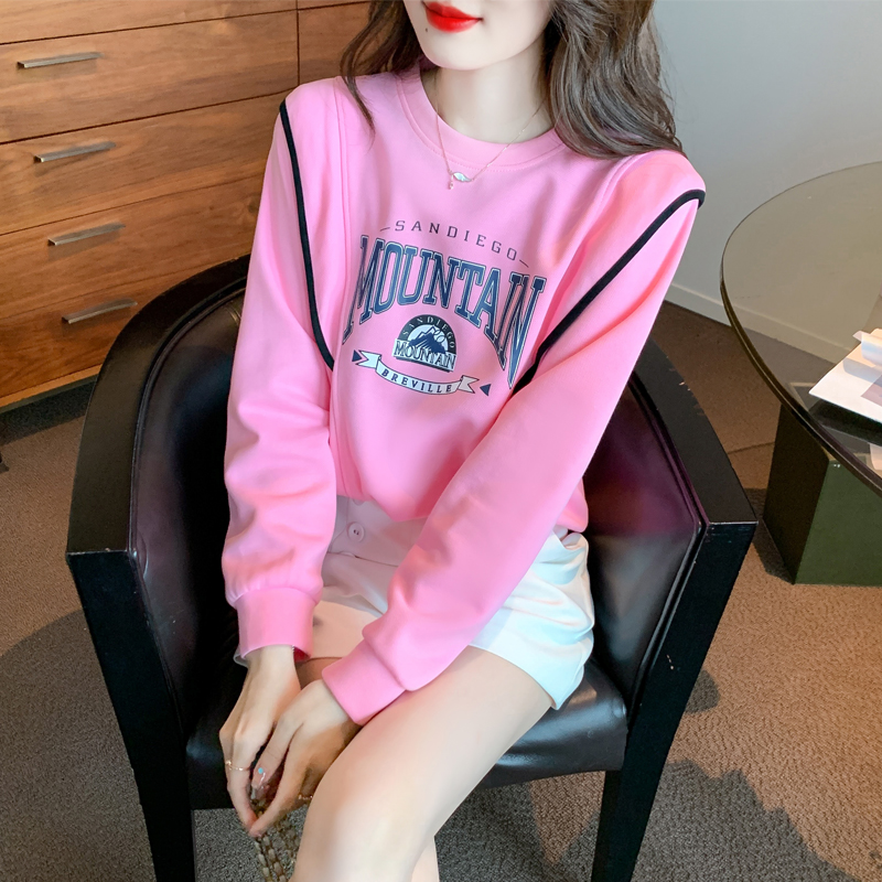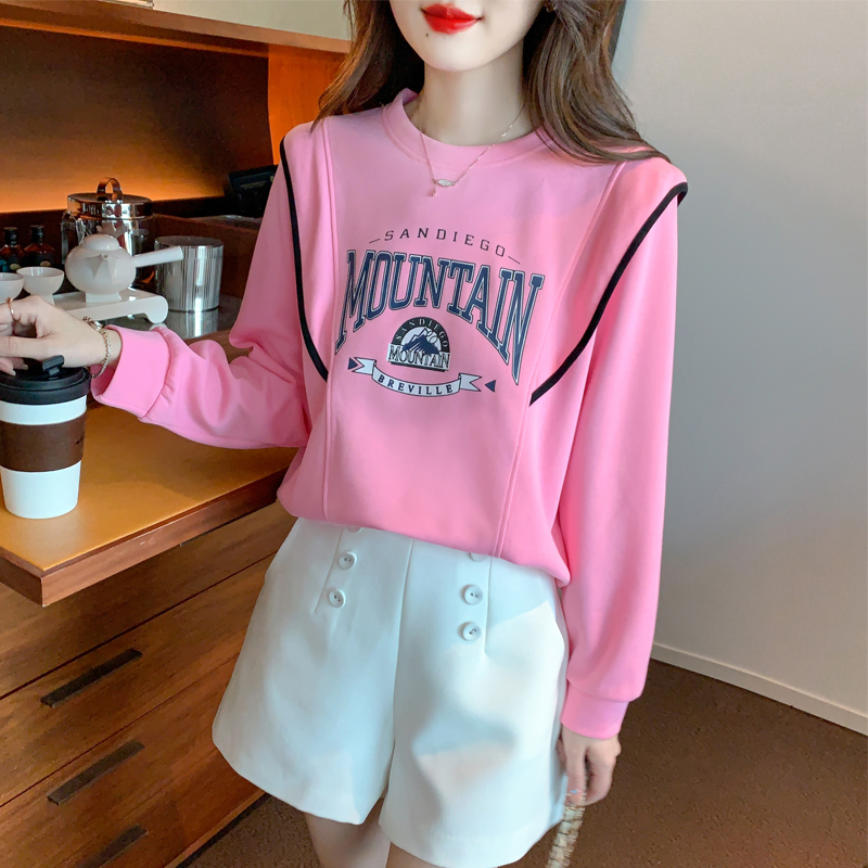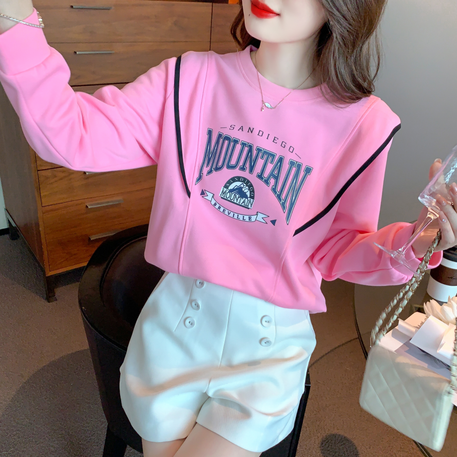 MY15903# 新款韩版时尚长袖卫衣字母印花小个子百搭宽松上衣女裝貨源服裝批發