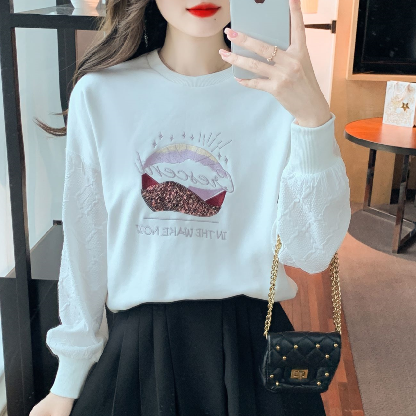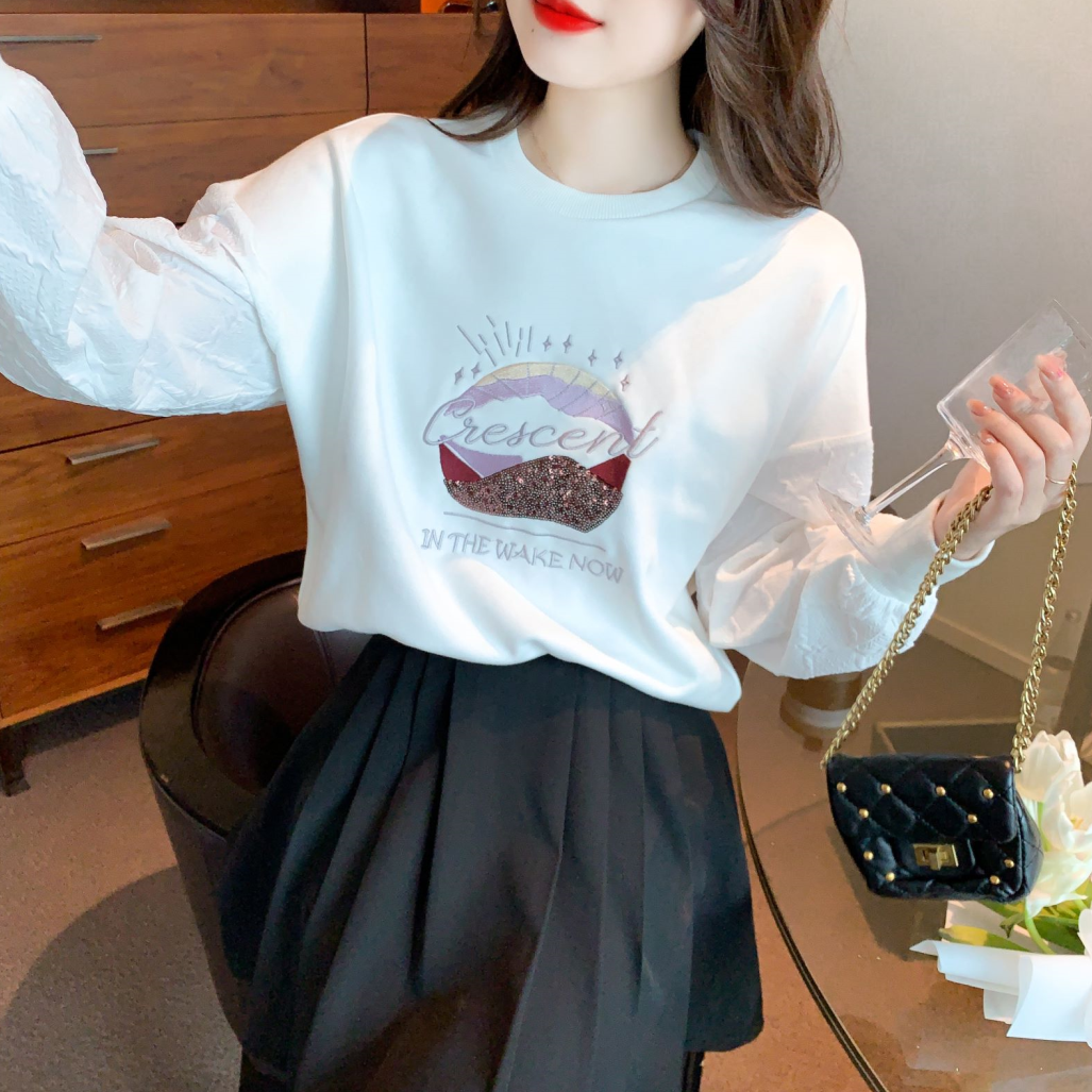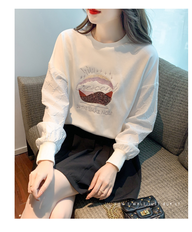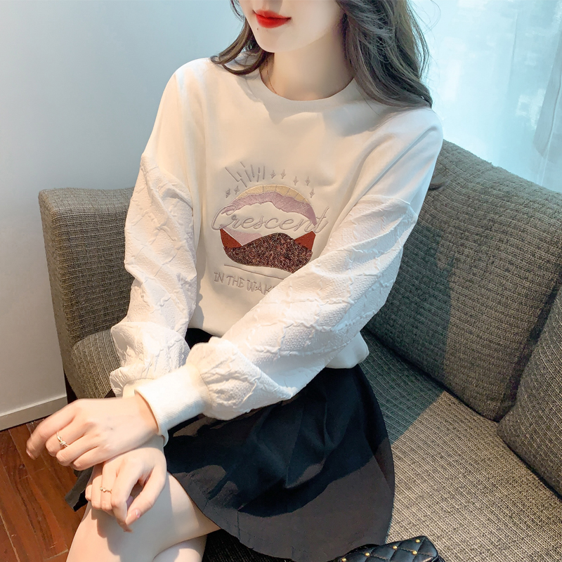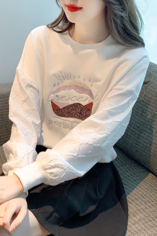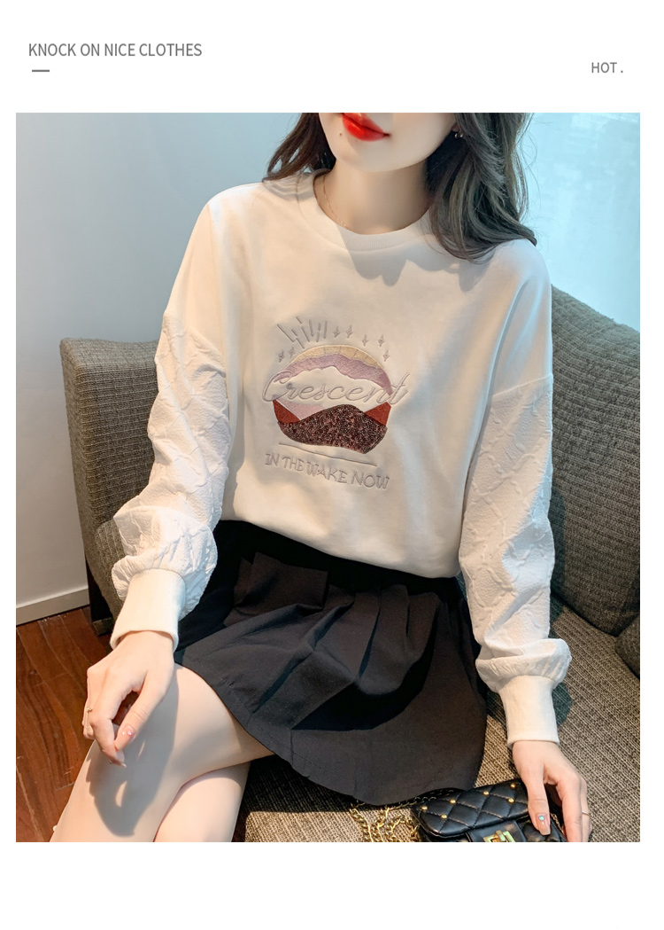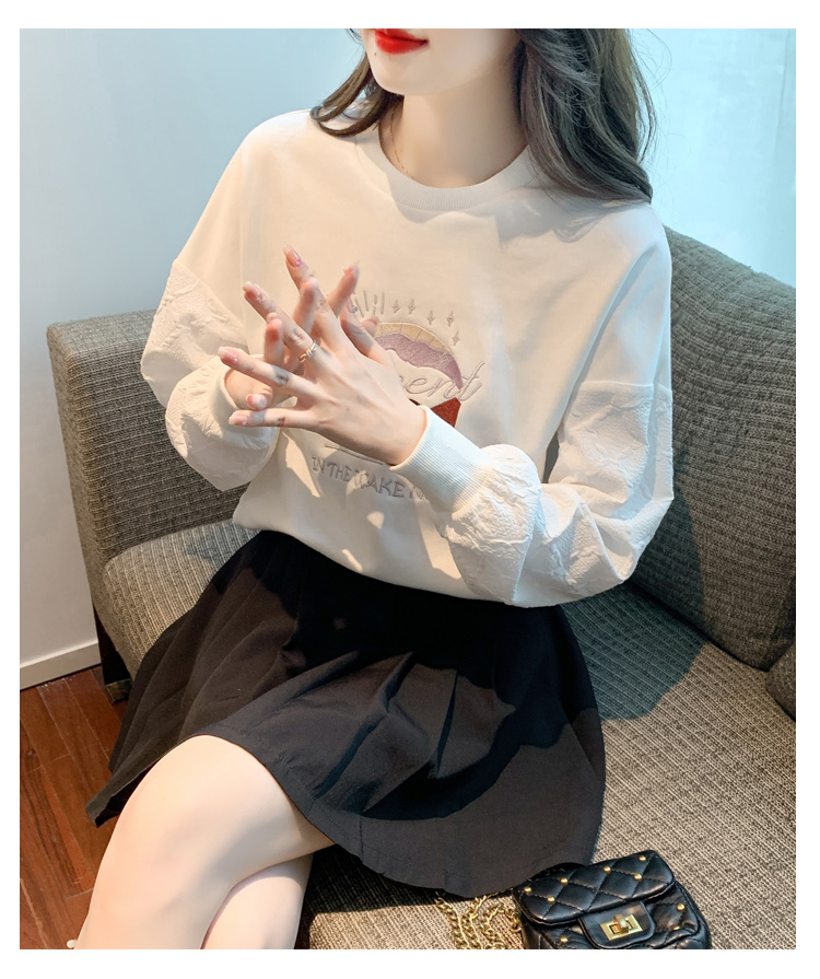 MY15905# 新款印花卫衣女宽松休闲刺绣拼接打底上衣外套长袖女裝貨源服裝批發