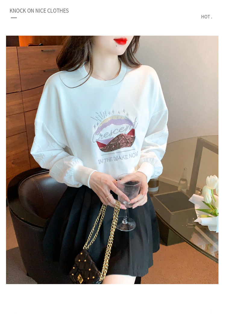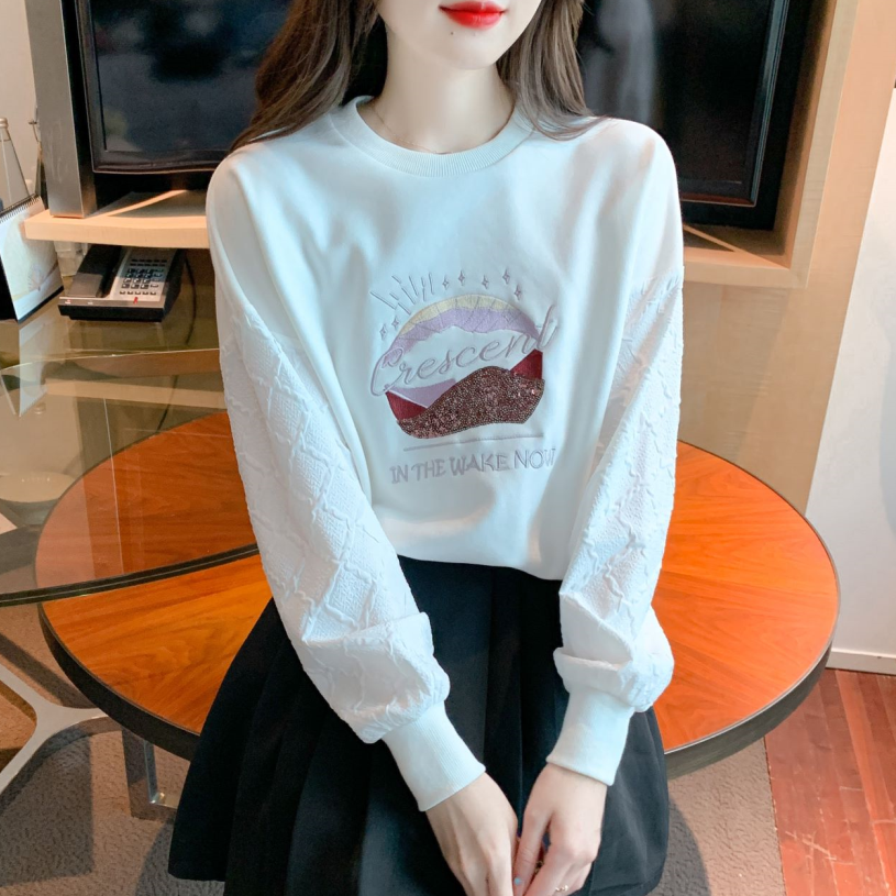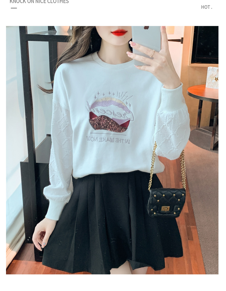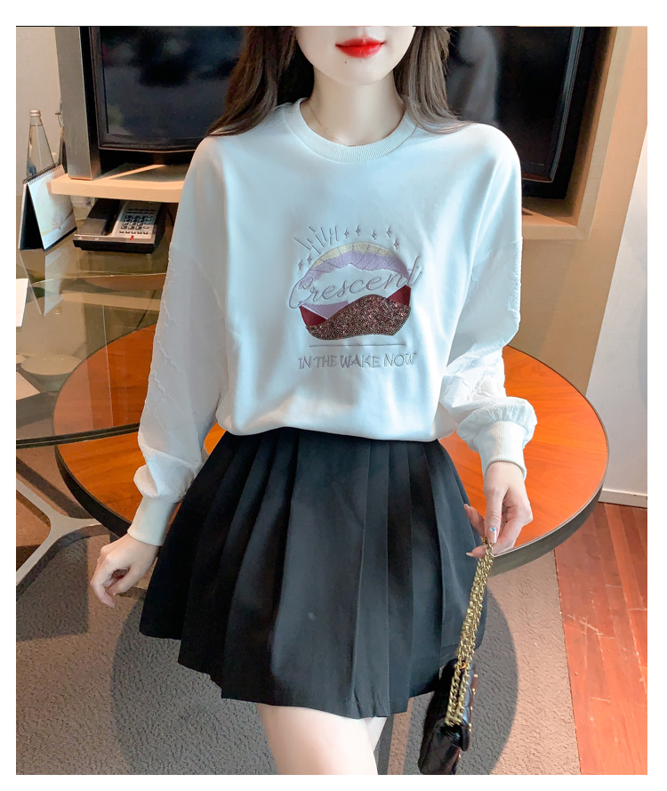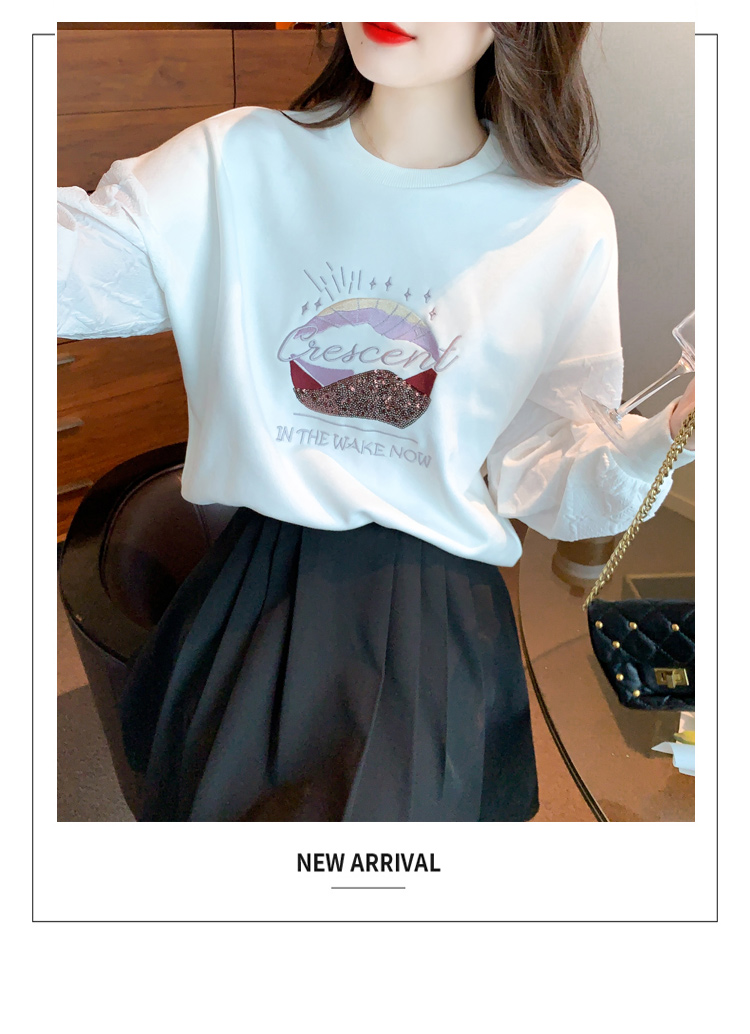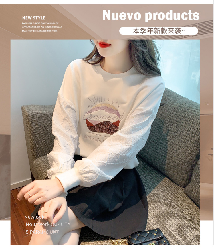 MY15905# 新款印花卫衣女宽松休闲刺绣拼接打底上衣外套长袖女裝貨源服裝批發
