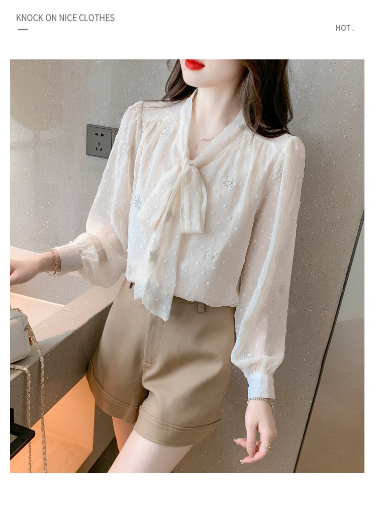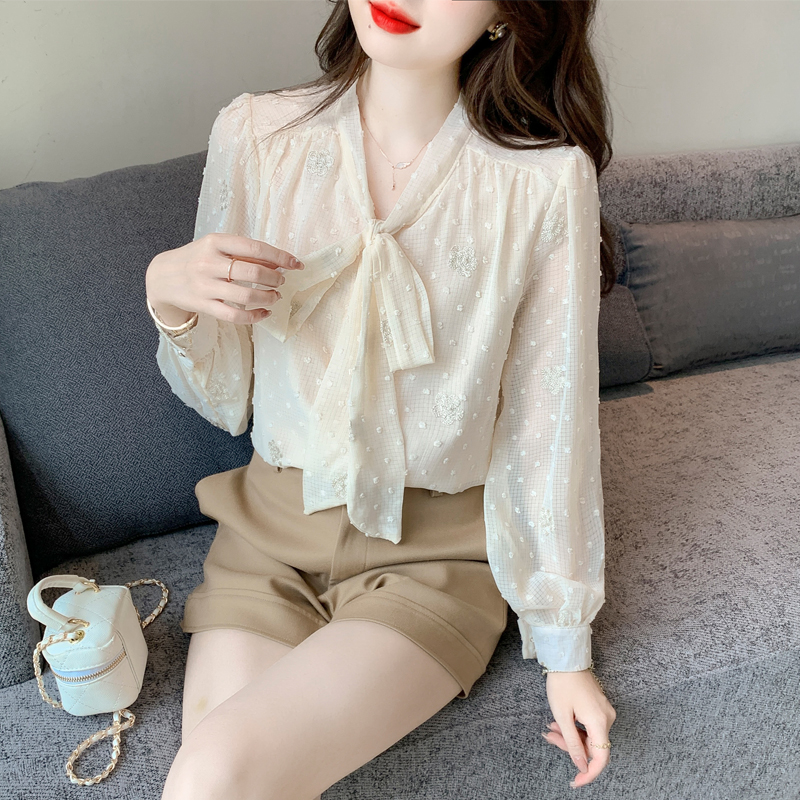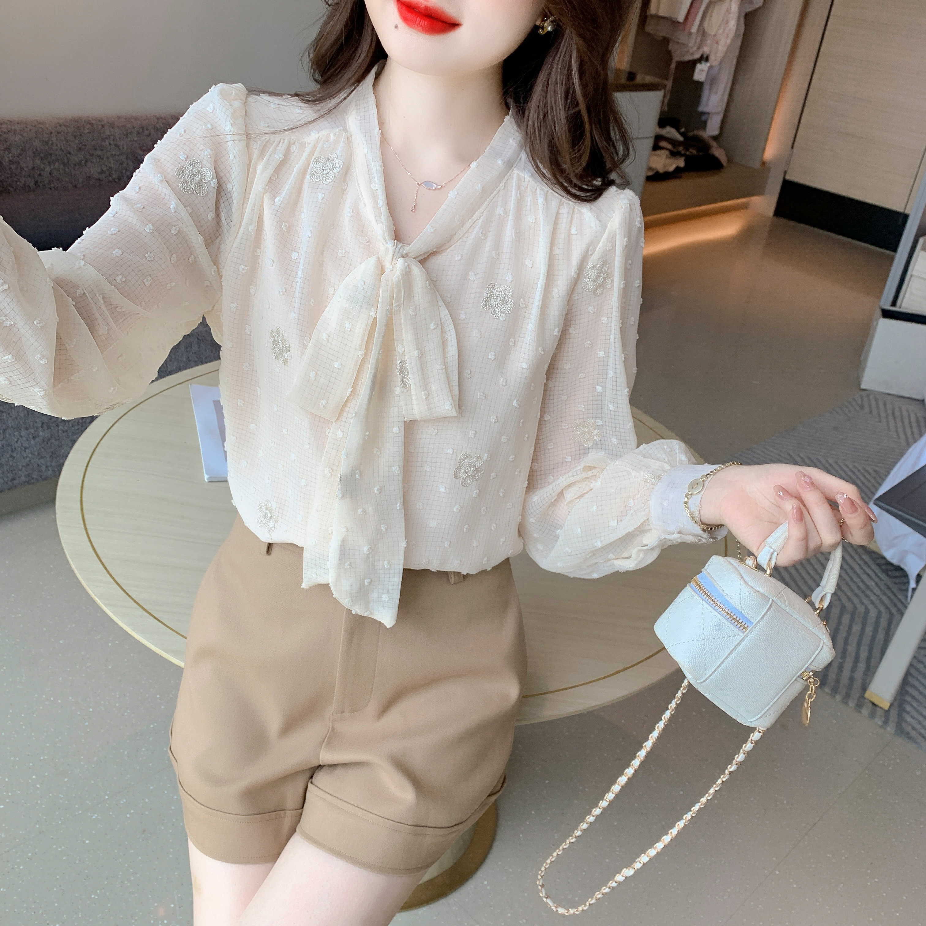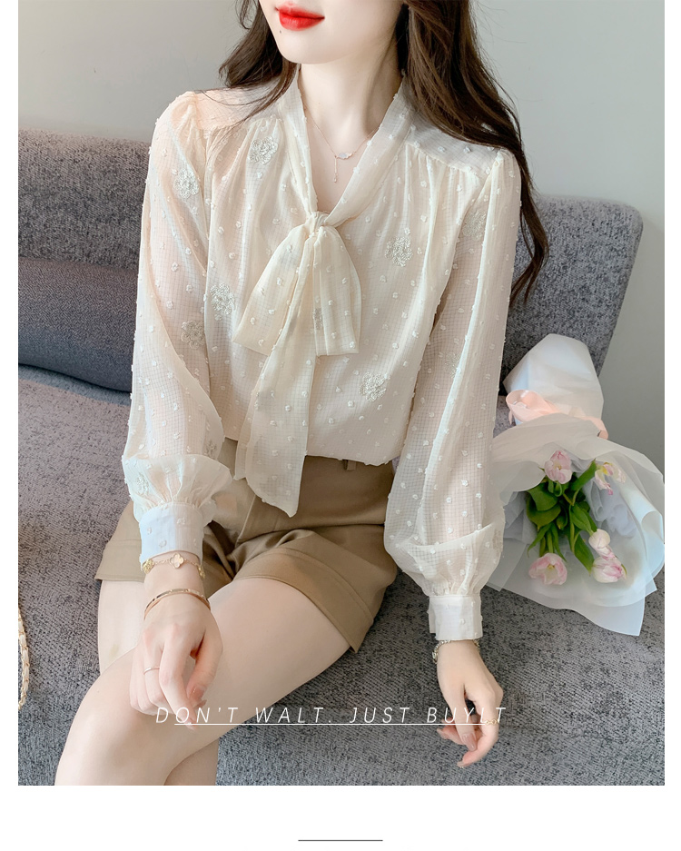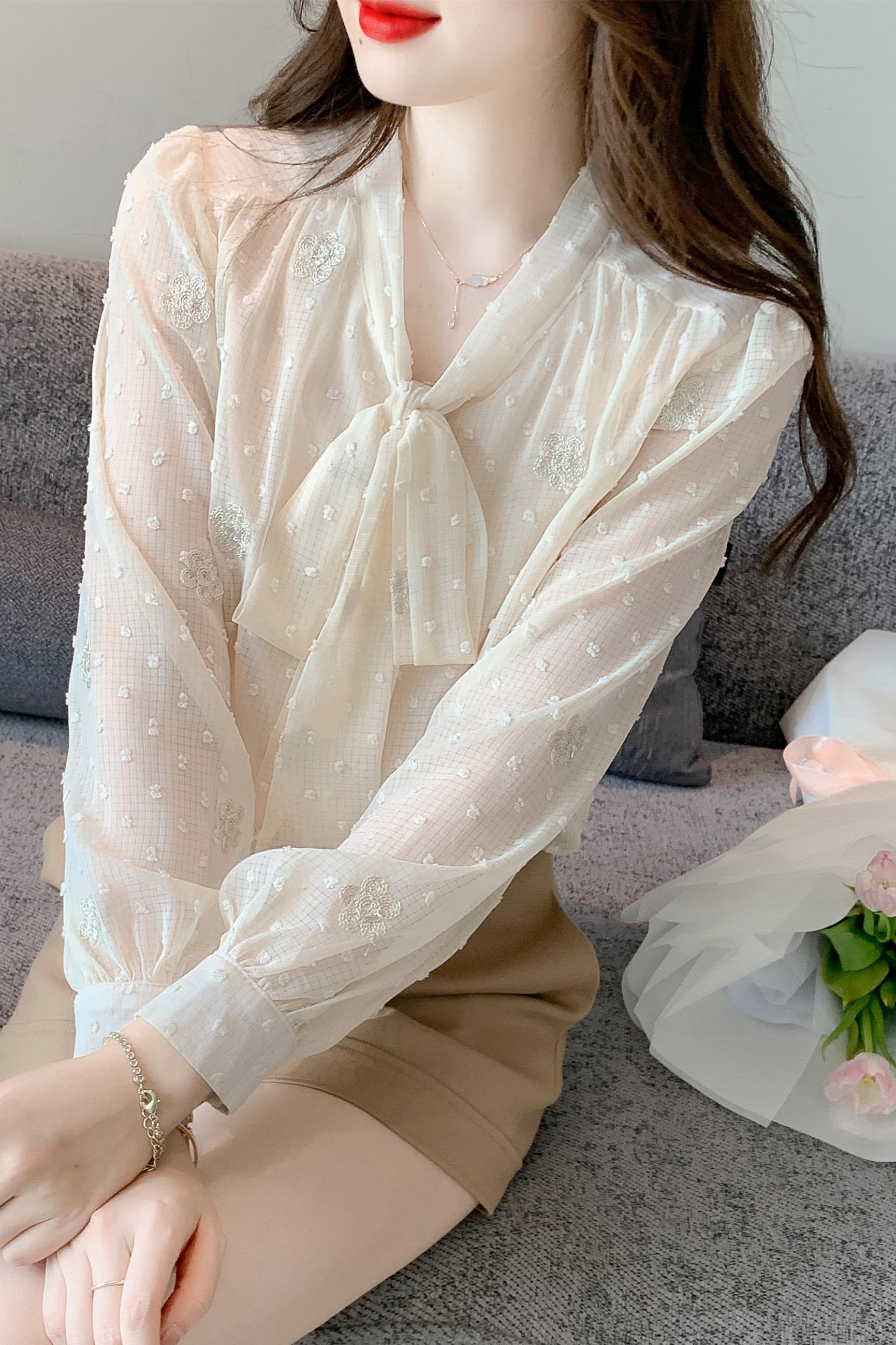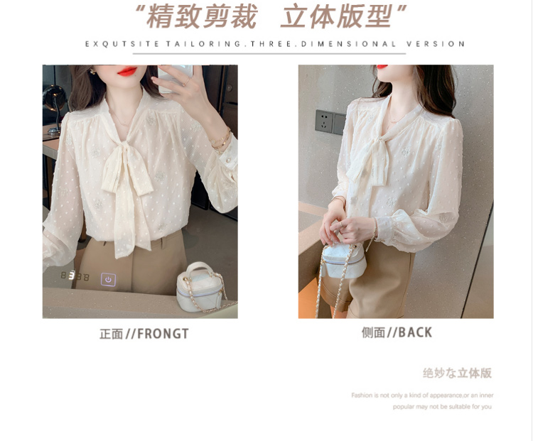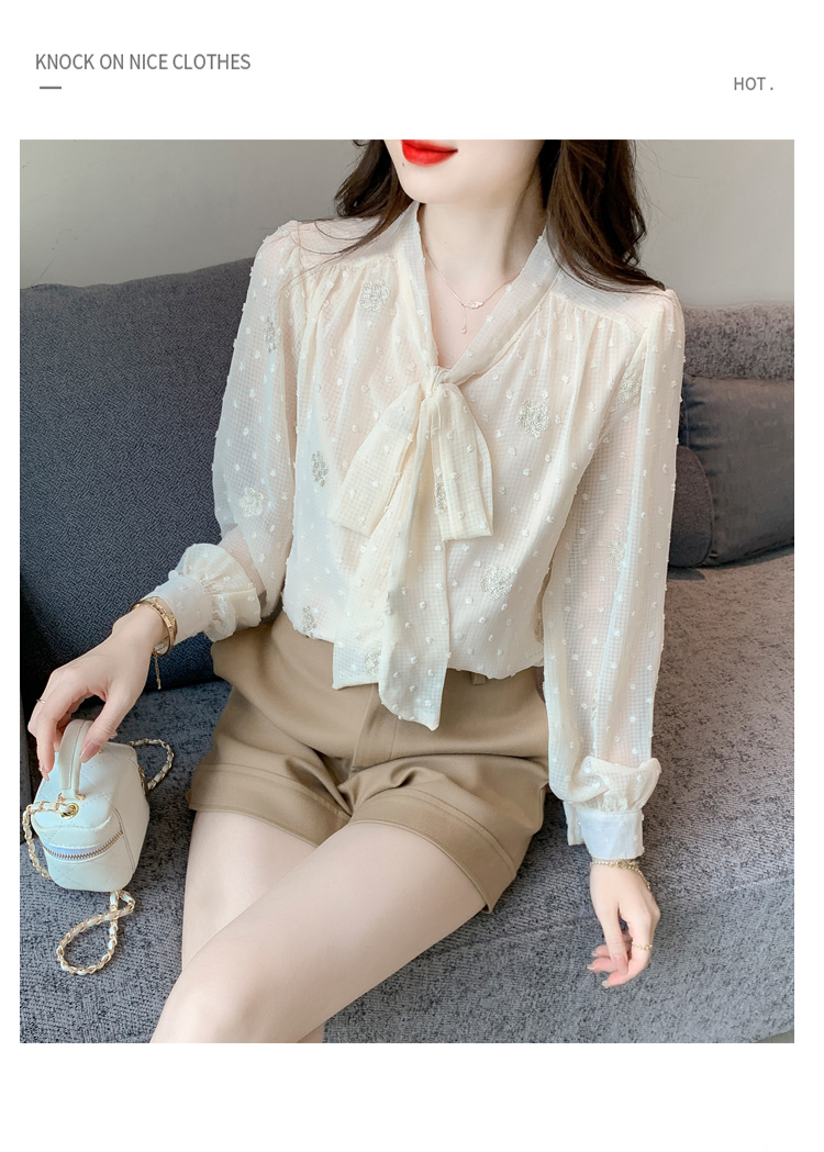 MY15906# 新款法式气质长袖衬衫女别致独特蝴蝶结系带上衣女裝貨源服裝批發