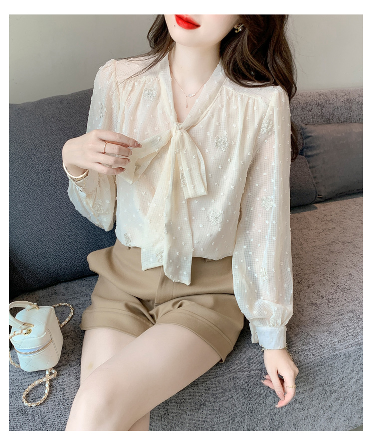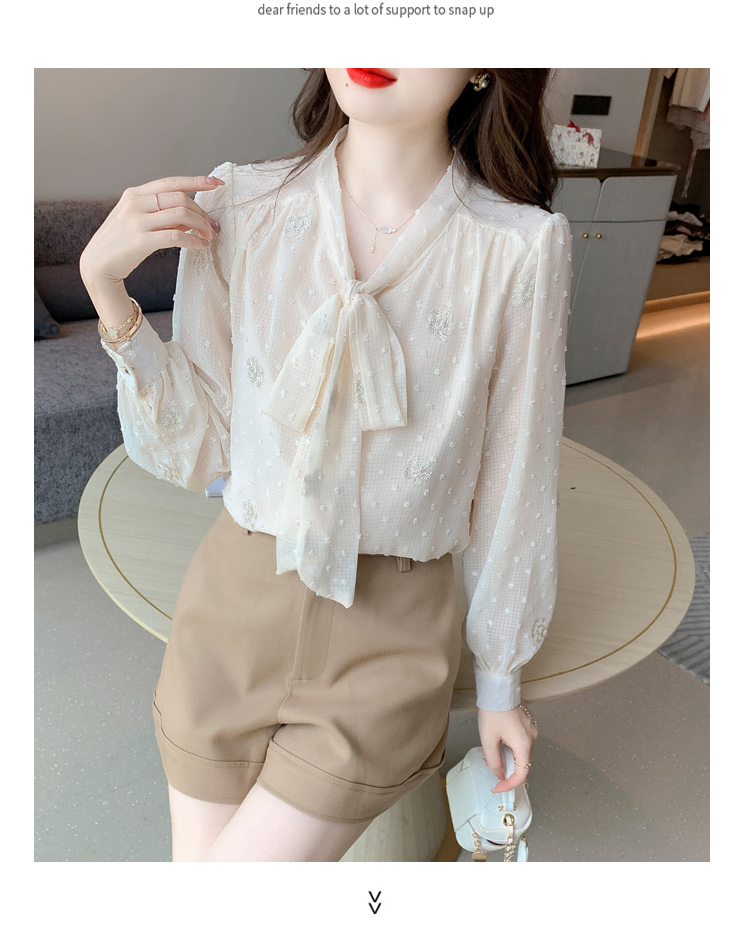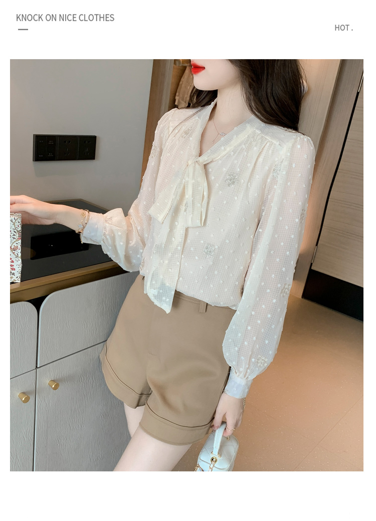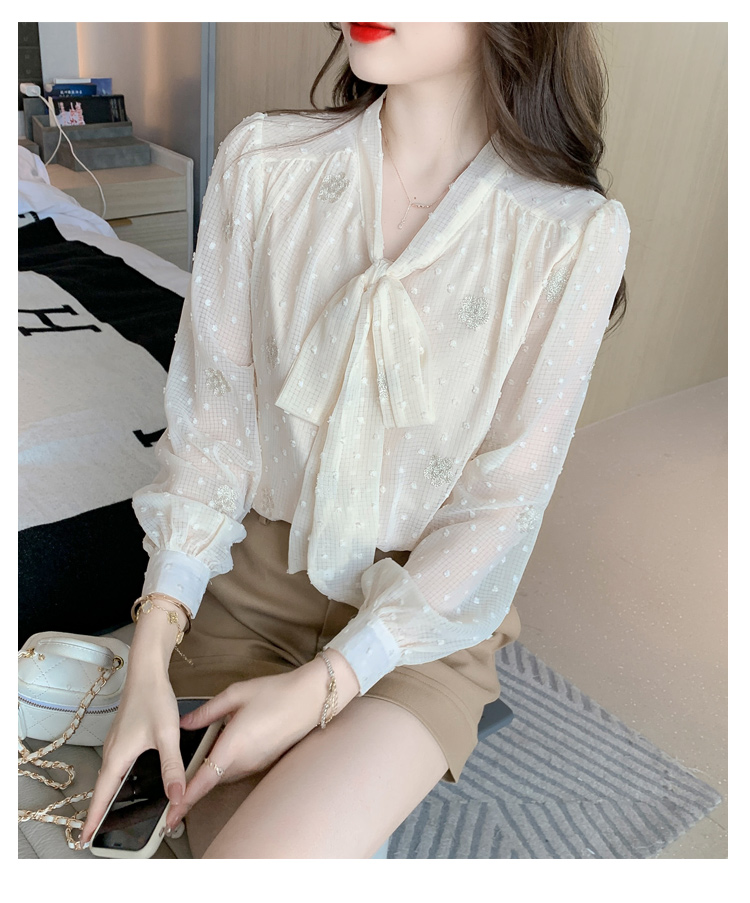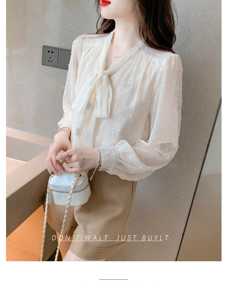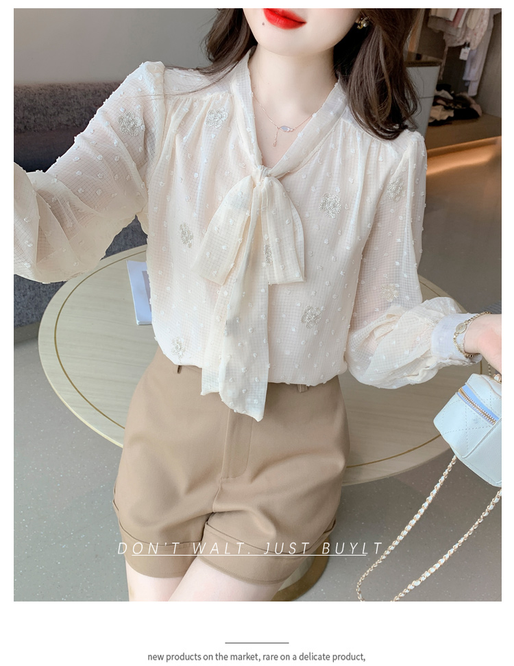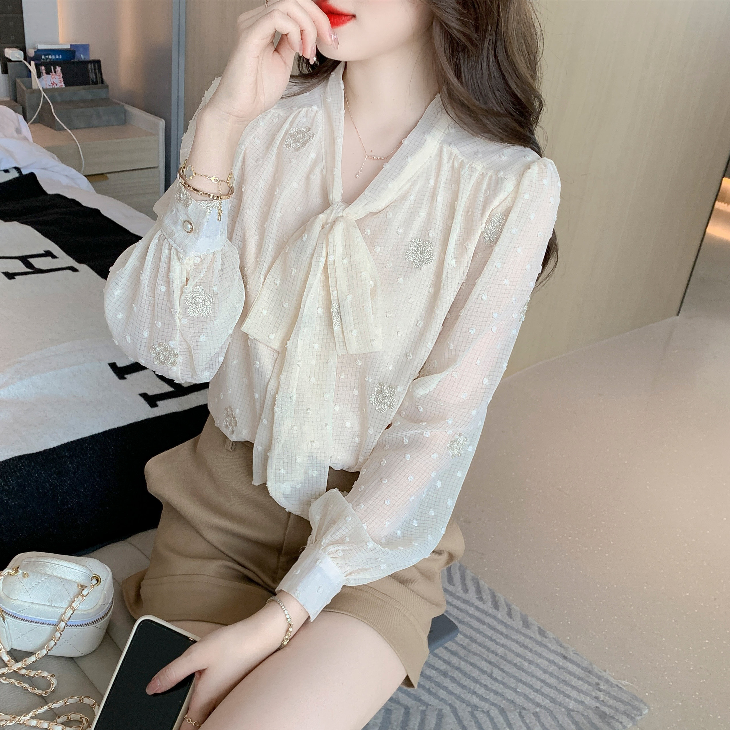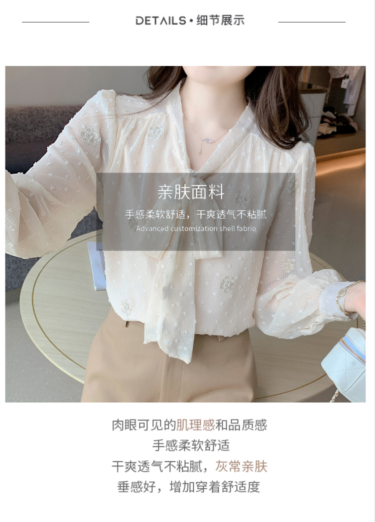 MY15906# 新款法式气质长袖衬衫女别致独特蝴蝶结系带上衣女裝貨源服裝批發