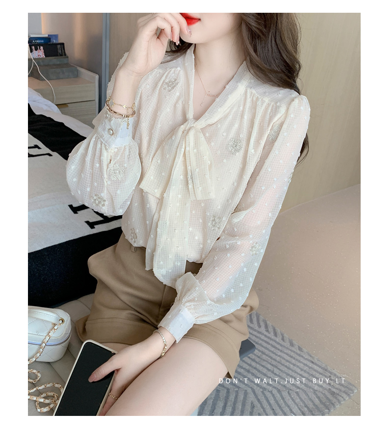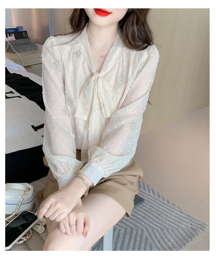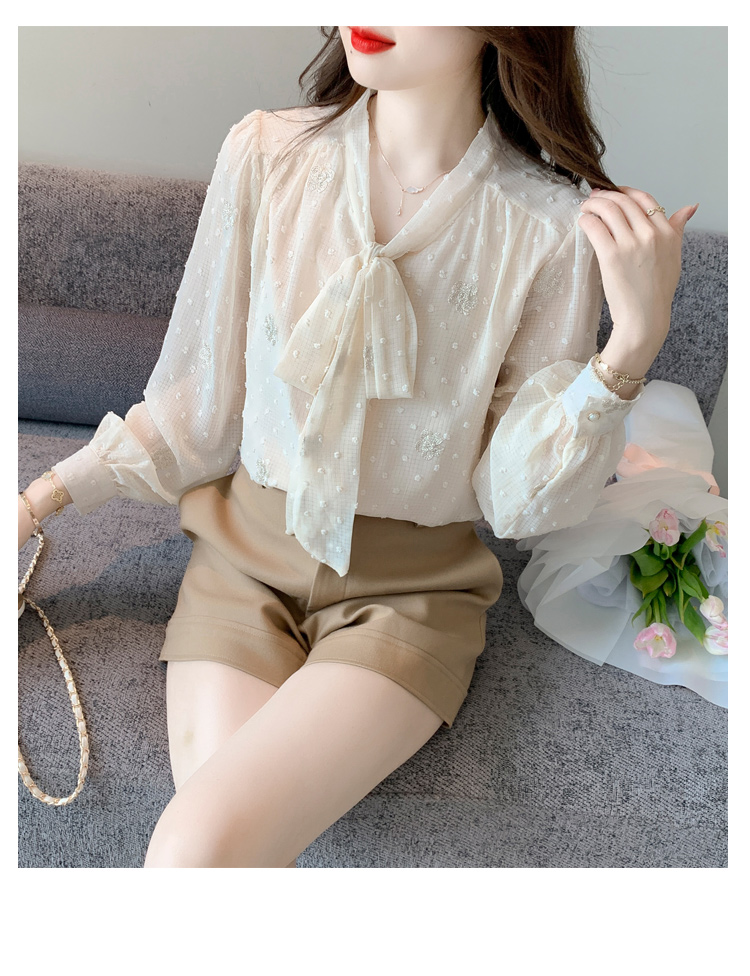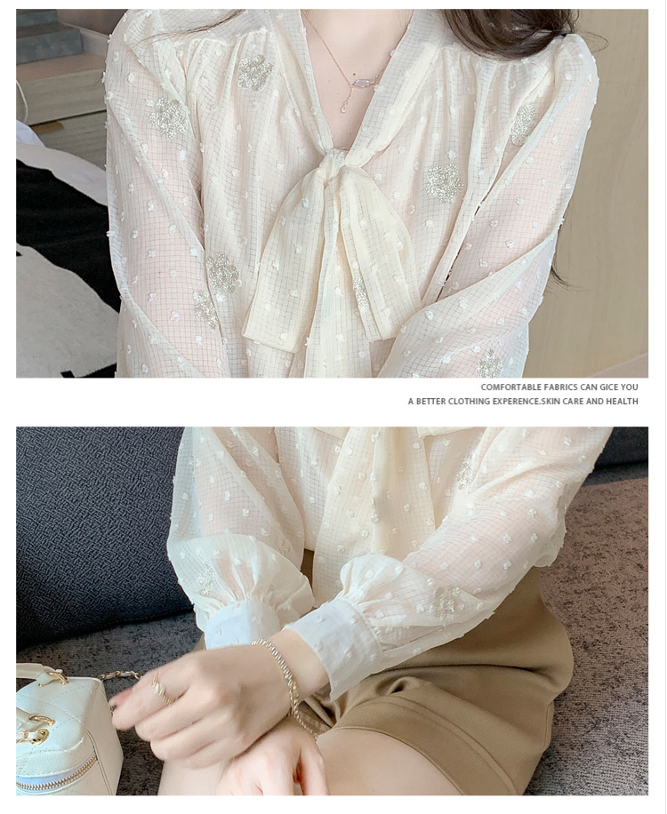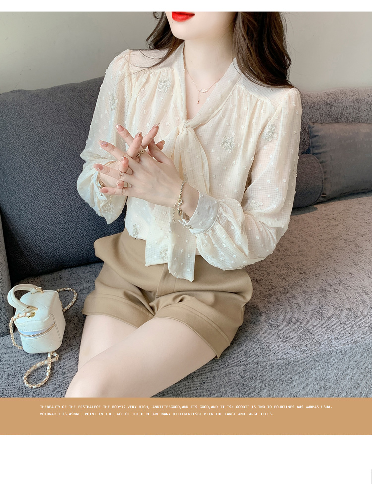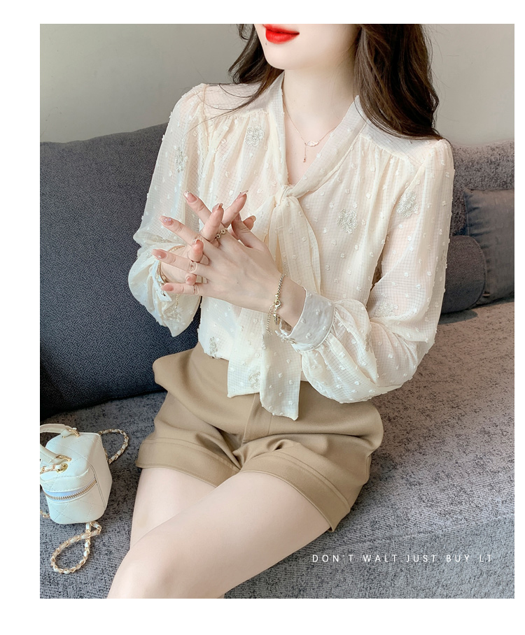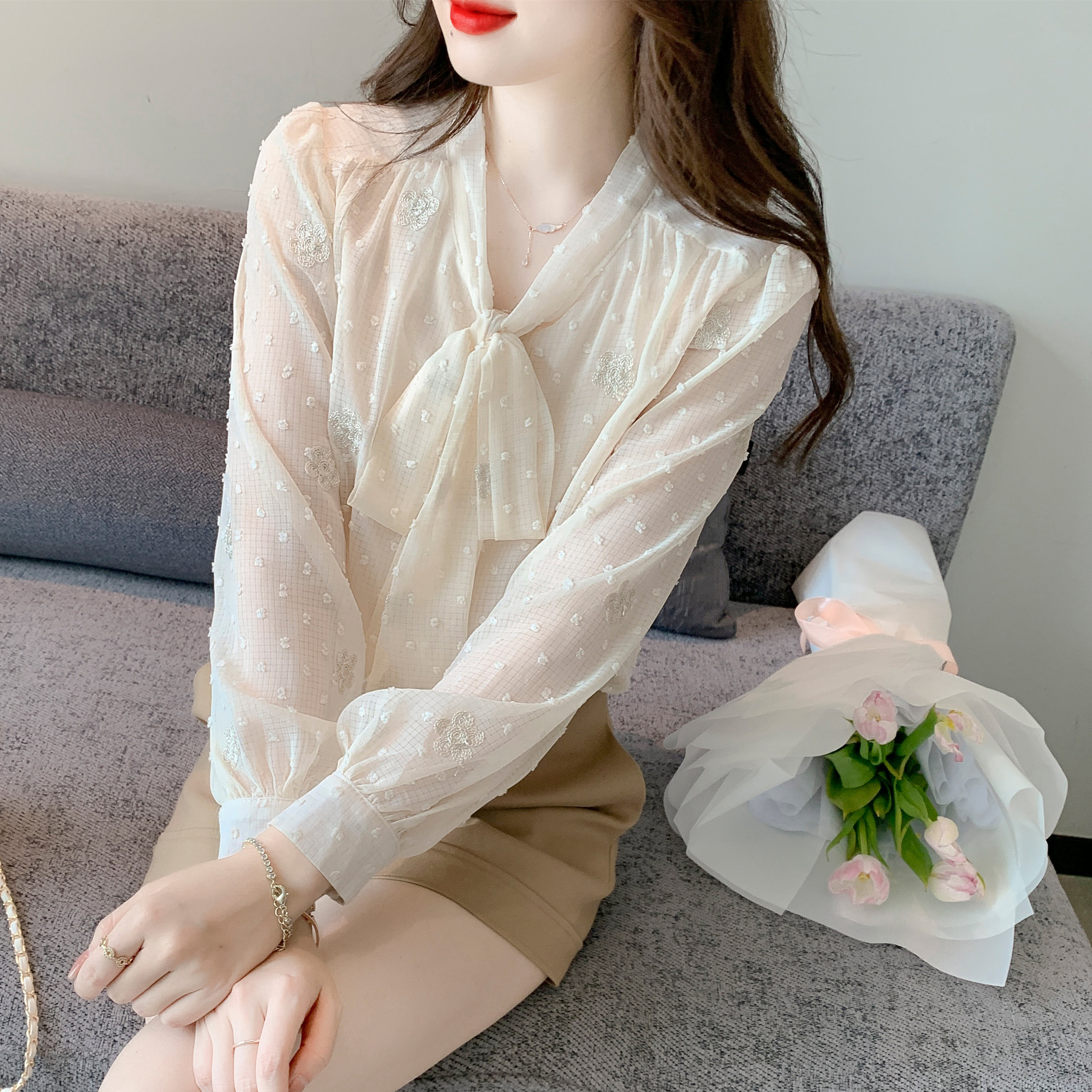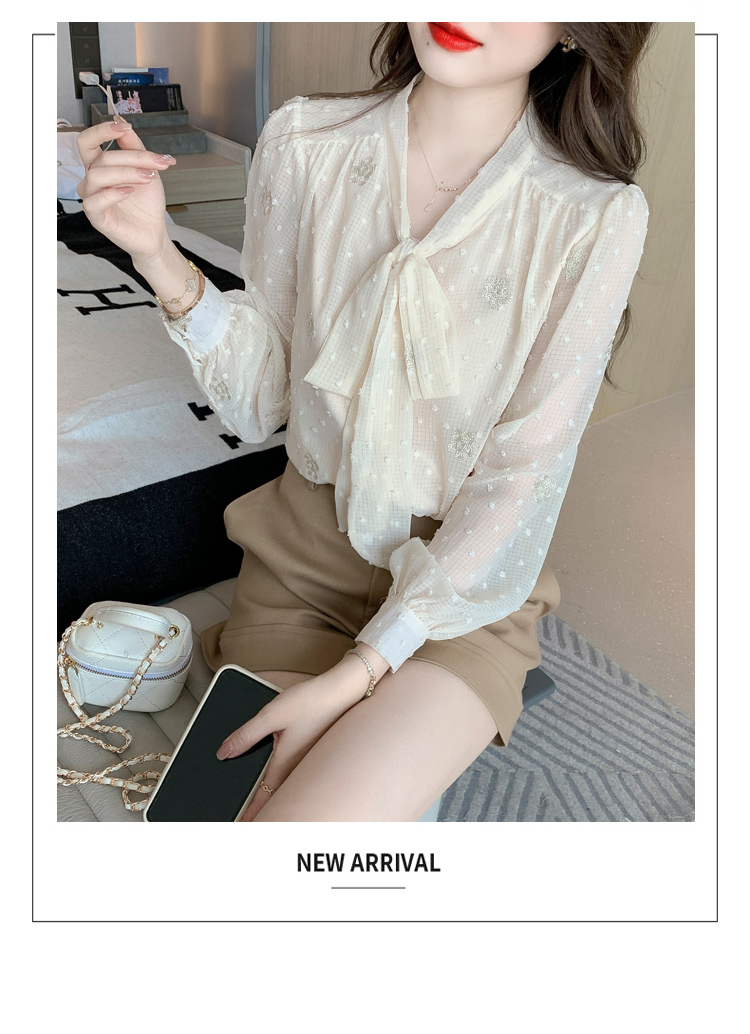 MY15906# 新款法式气质长袖衬衫女别致独特蝴蝶结系带上衣女裝貨源服裝批發
