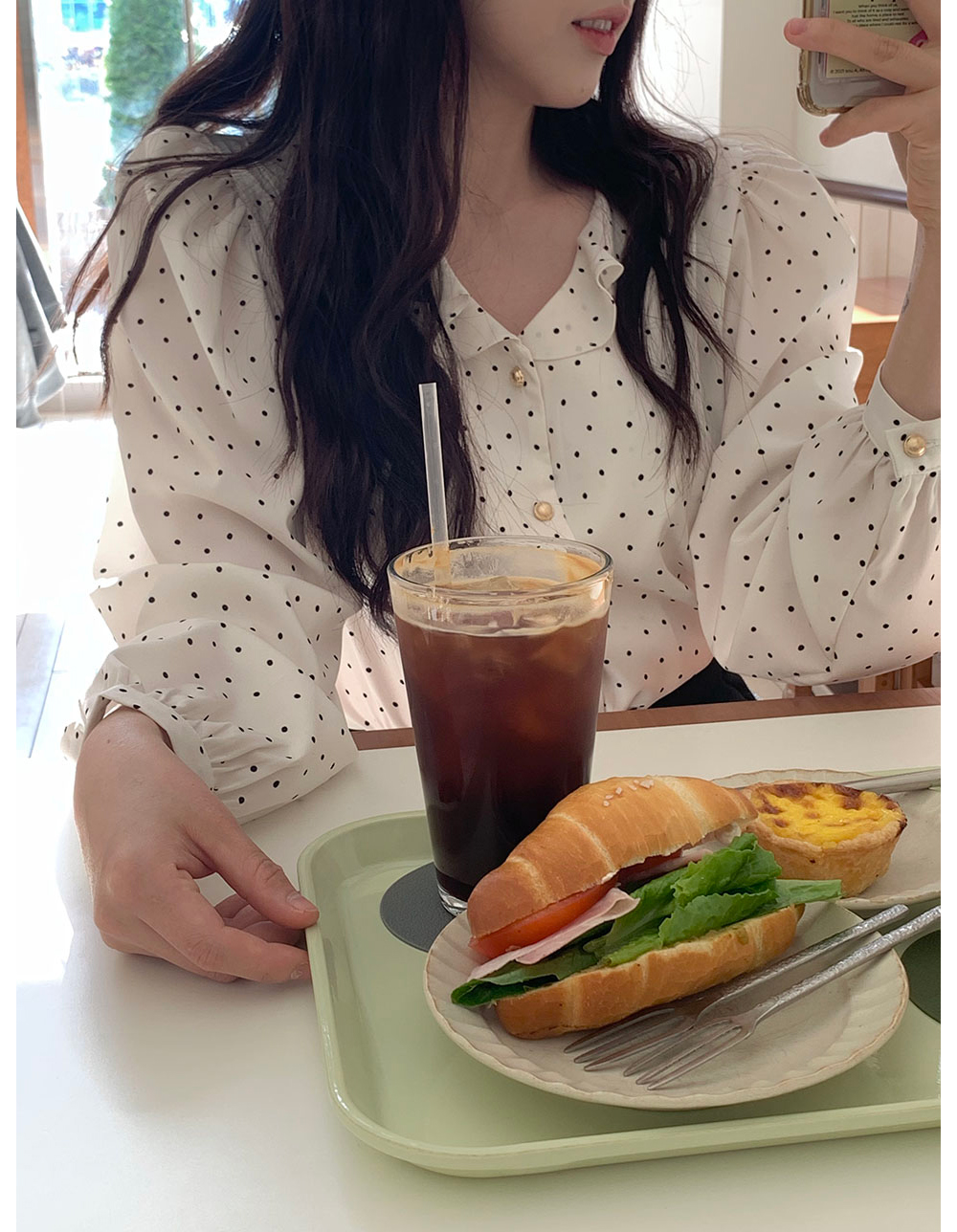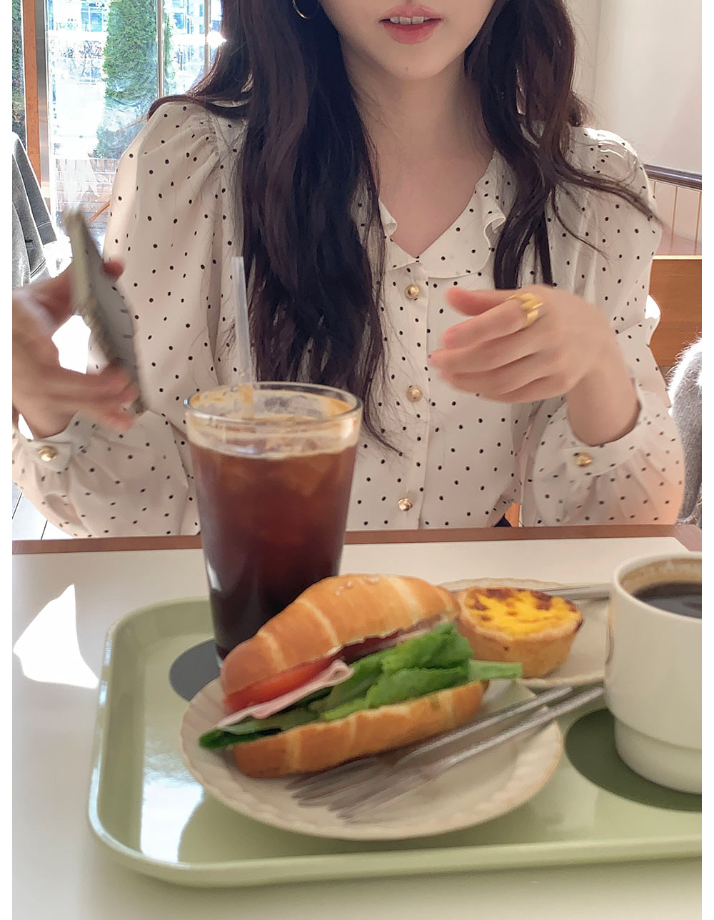 是 “踩着落叶逛古着店的复古感”,小波点不花哨,是低调的甜。