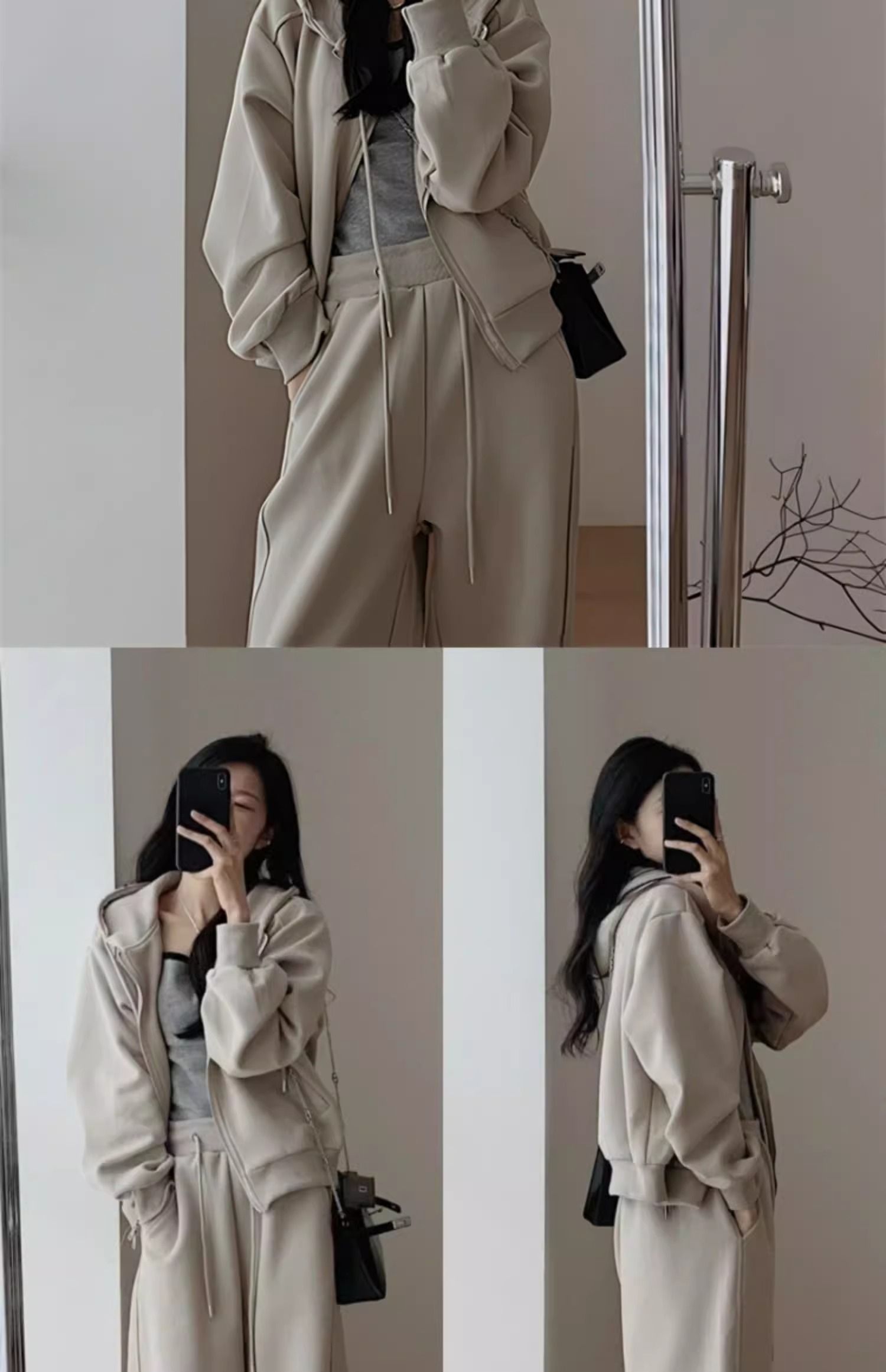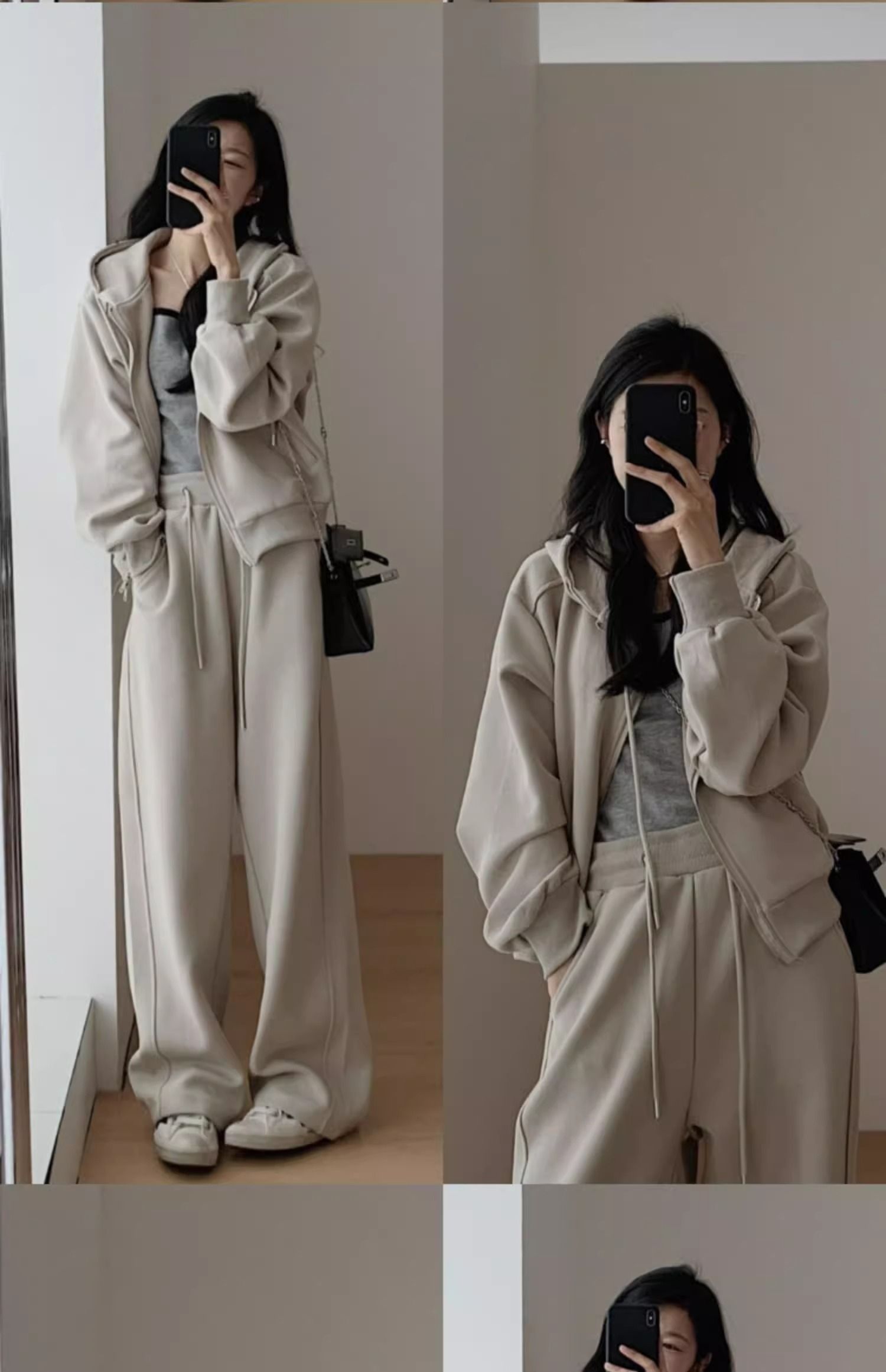 MY15910# 新款茶系穿搭一整套大码女装今年流行盐系卫衣两件套装女裝貨源服裝批發