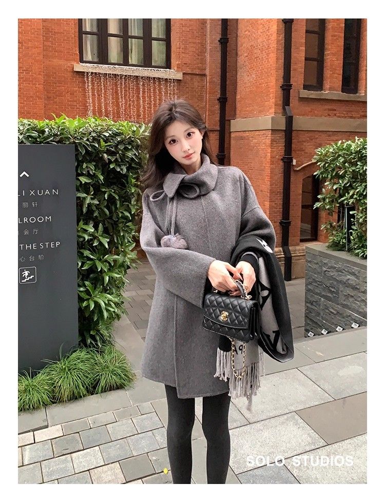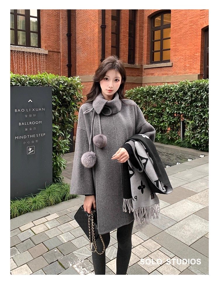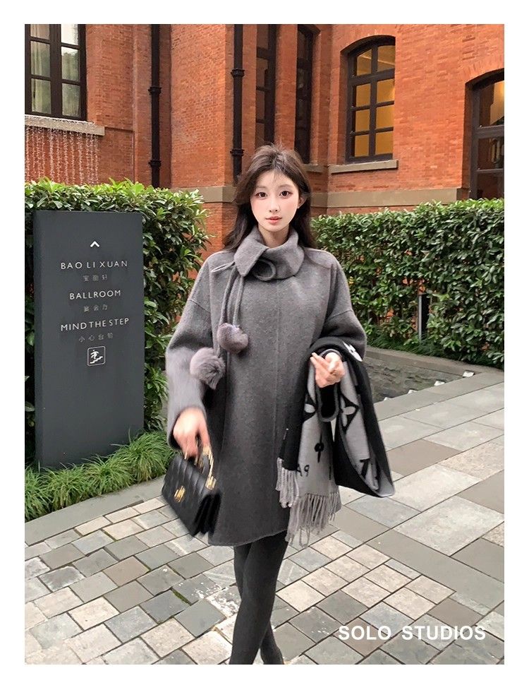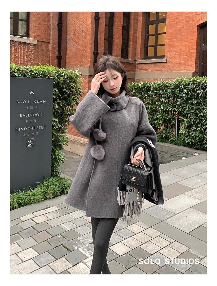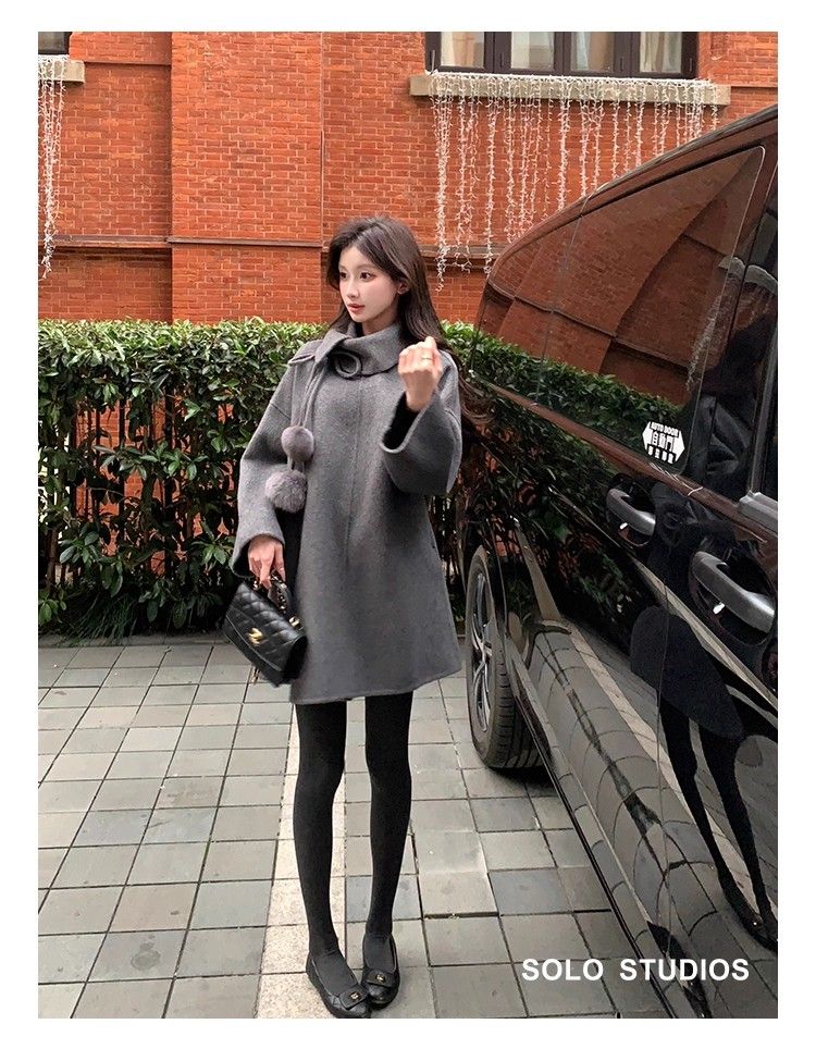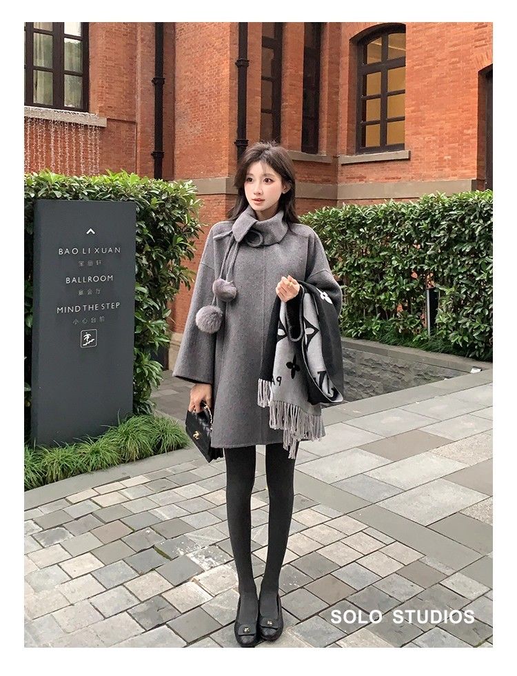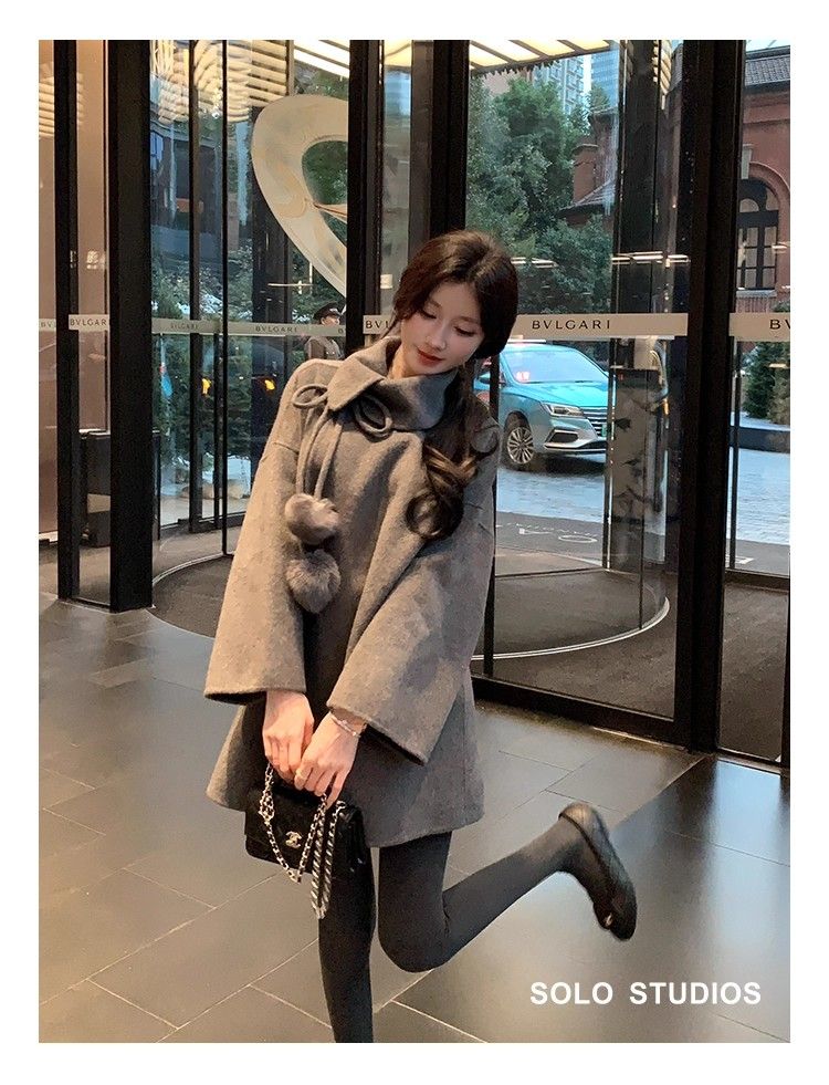 MY15911# 灰色设计感大衣女新款复古高级感韩系中长款时尚毛呢斗篷外套女裝貨源服裝批發