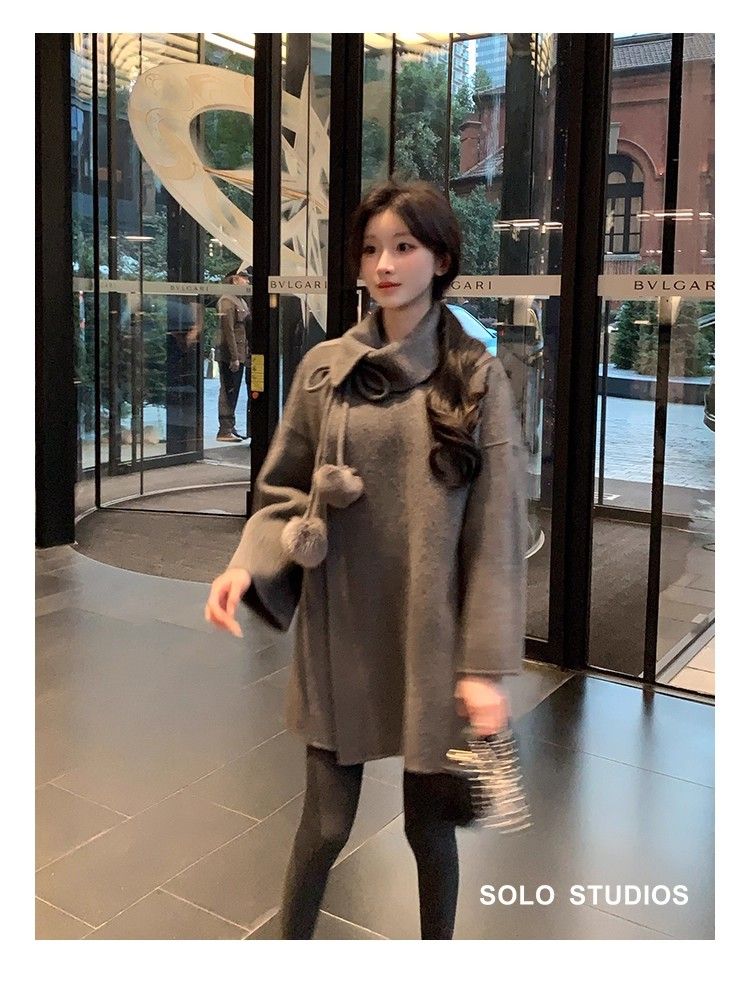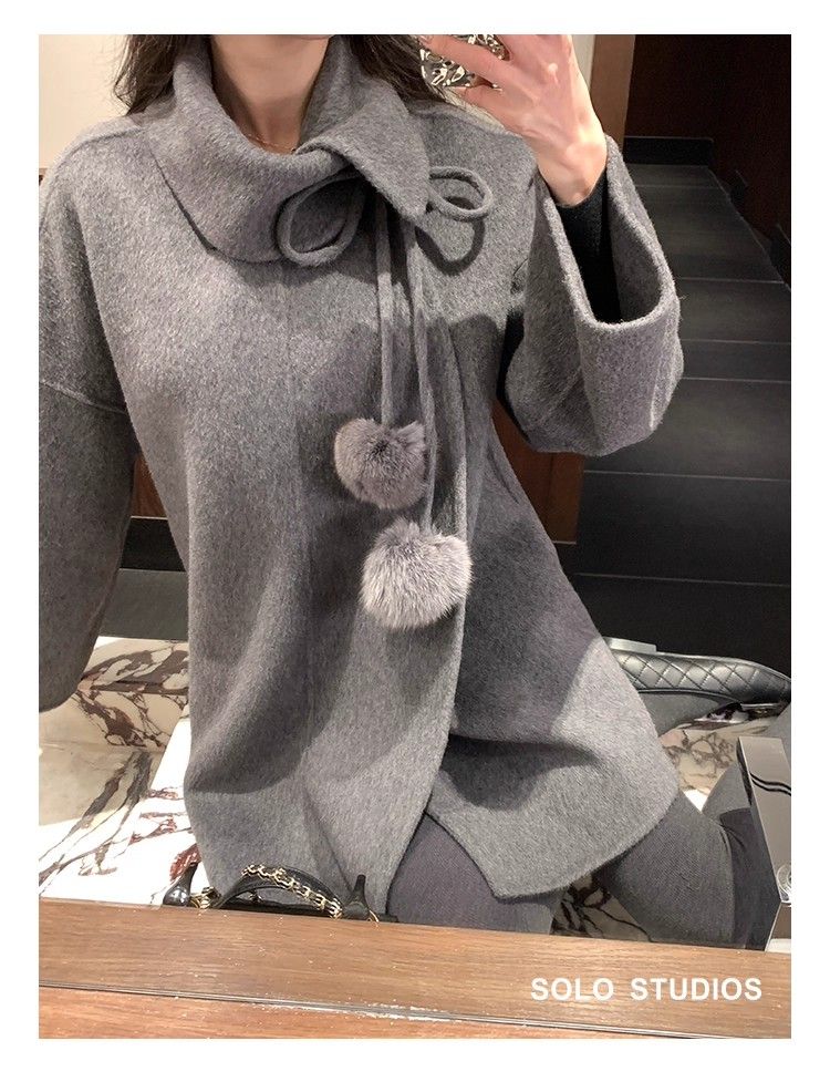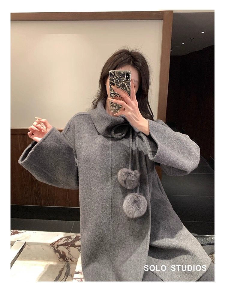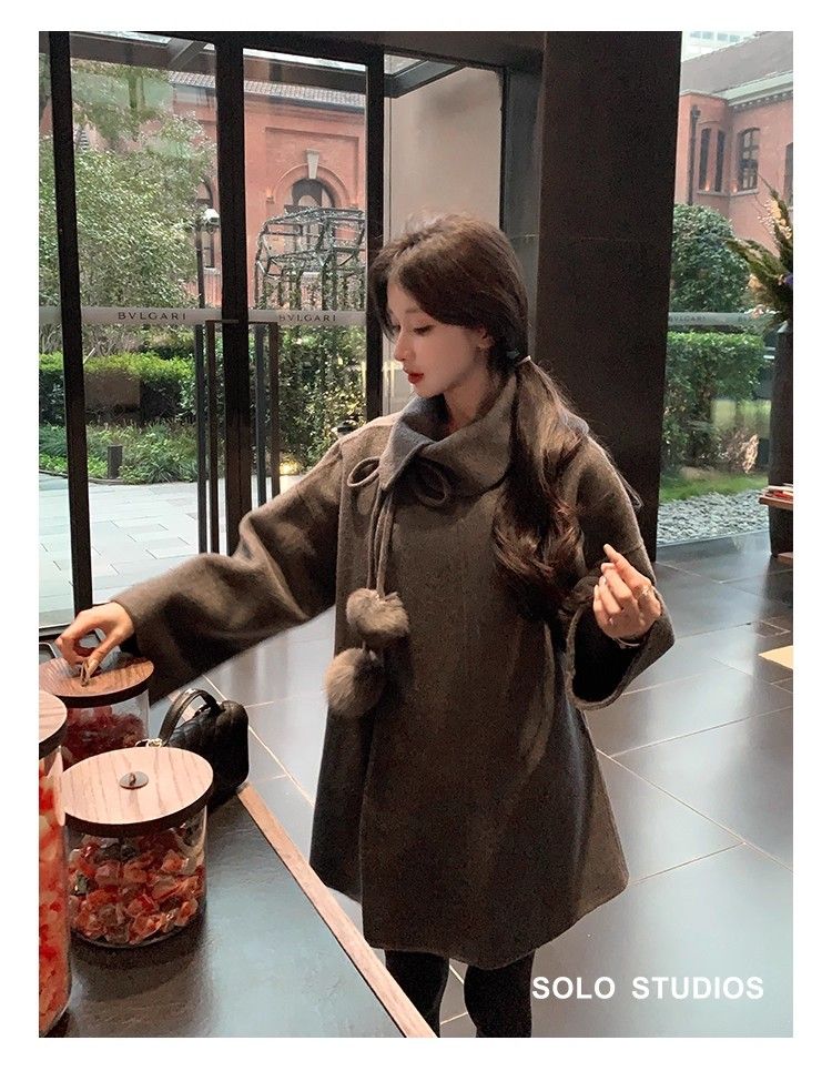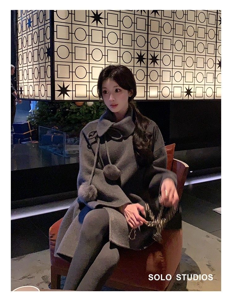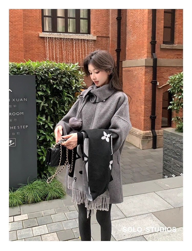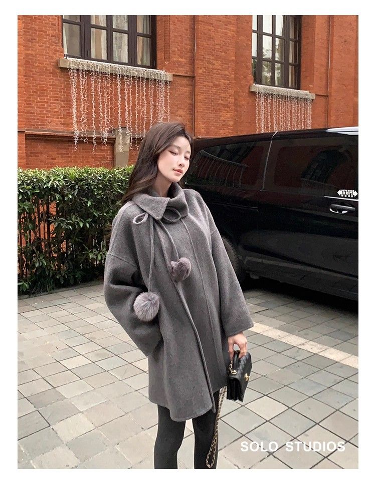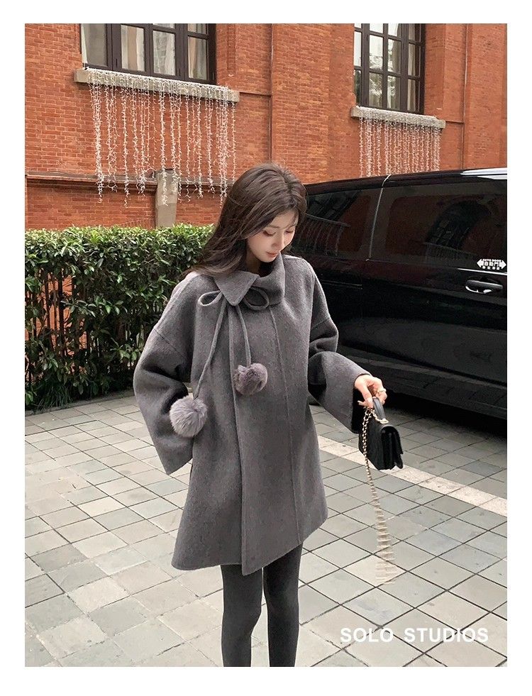 MY15911# 灰色设计感大衣女新款复古高级感韩系中长款时尚毛呢斗篷外套女裝貨源服裝批發