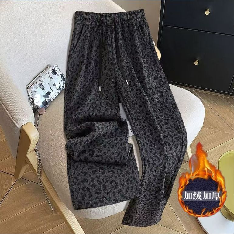 MY15916# 常规/加绒款 加绒加厚豹纹印花休闲长裤女秋冬高腰显瘦阔腿裤女裝貨源服裝批發