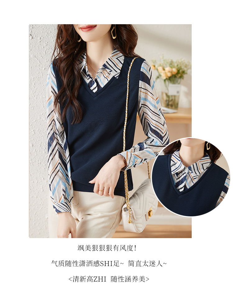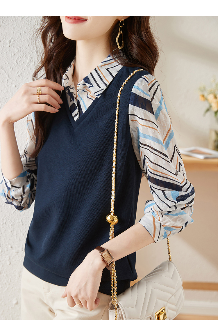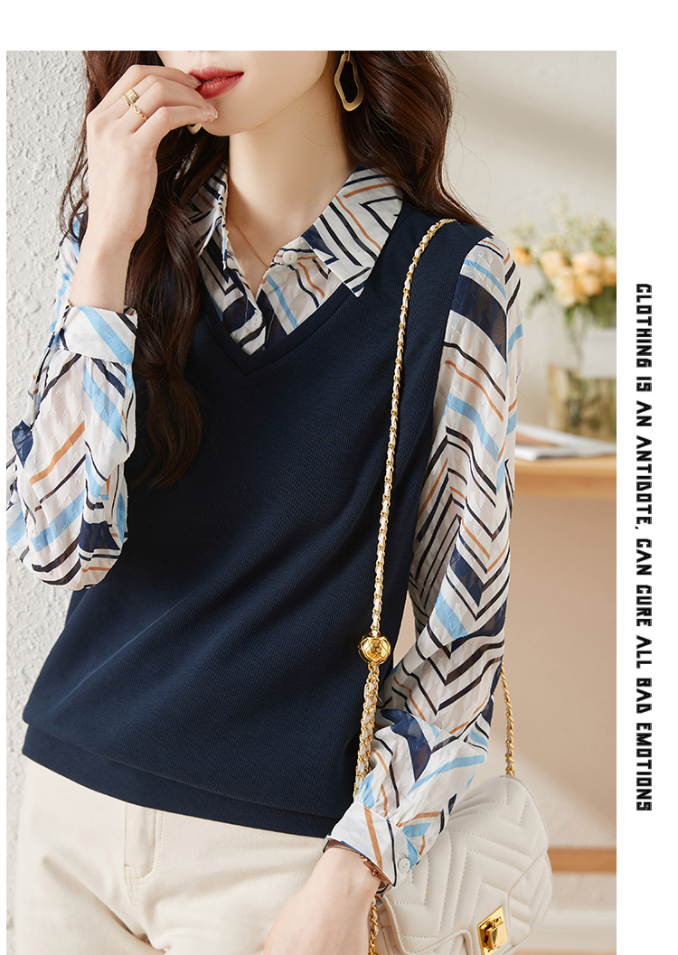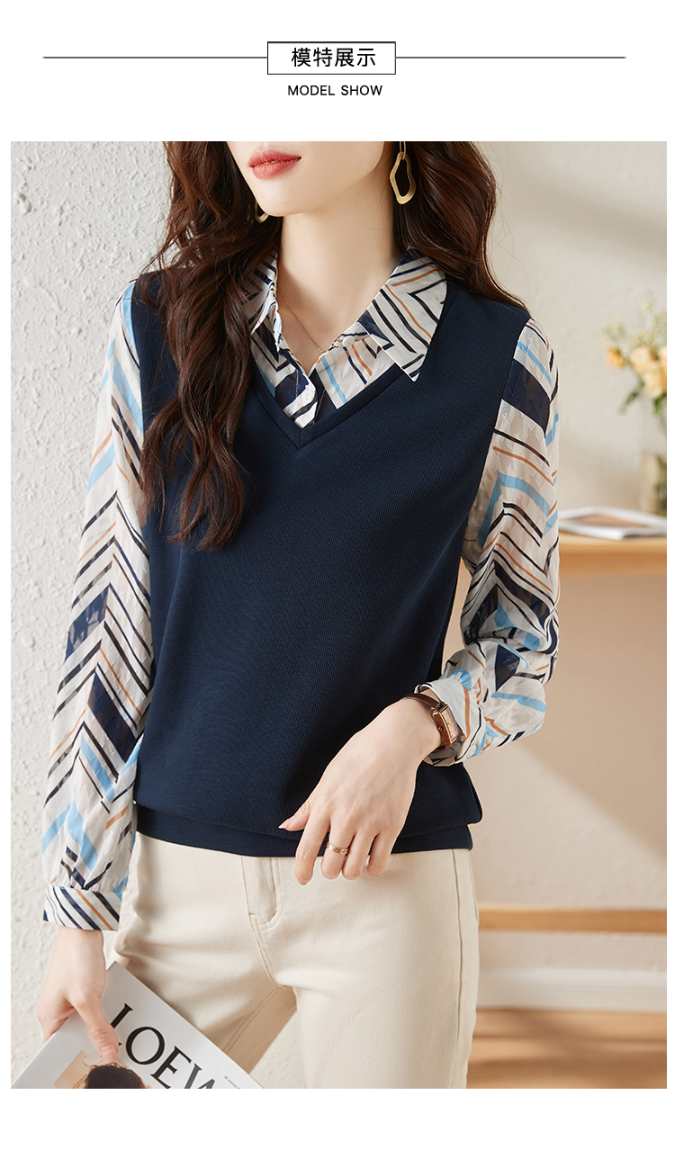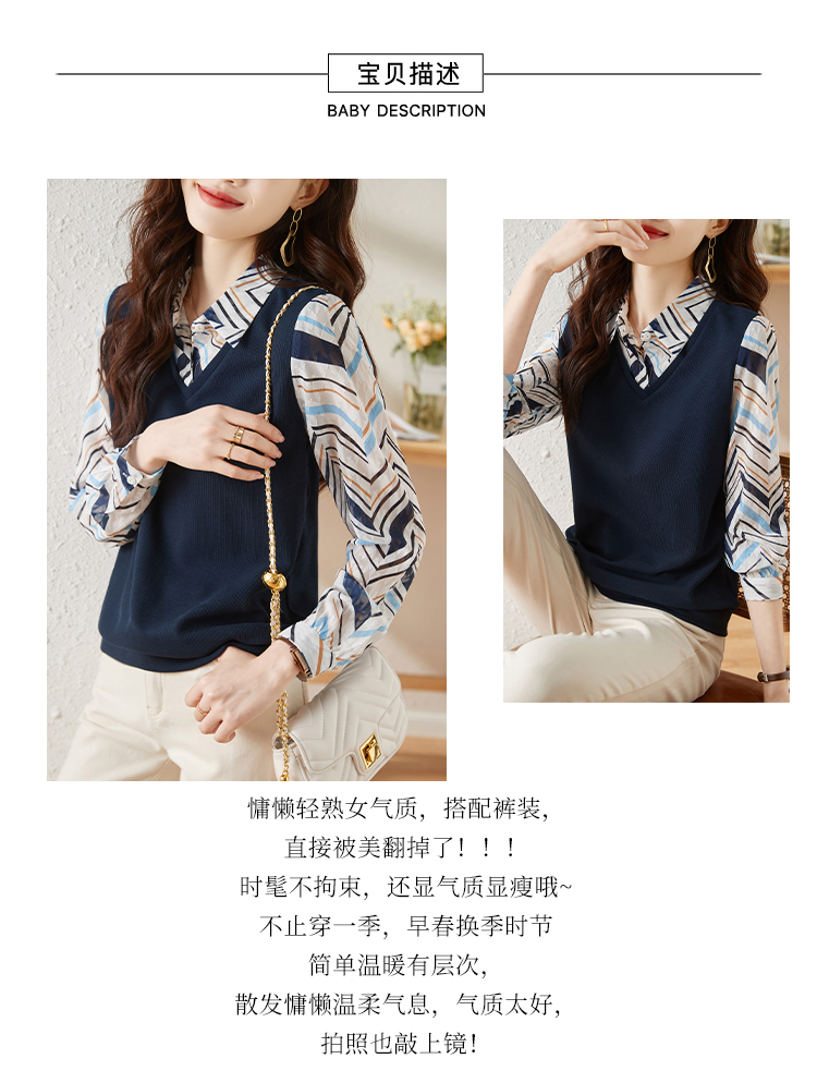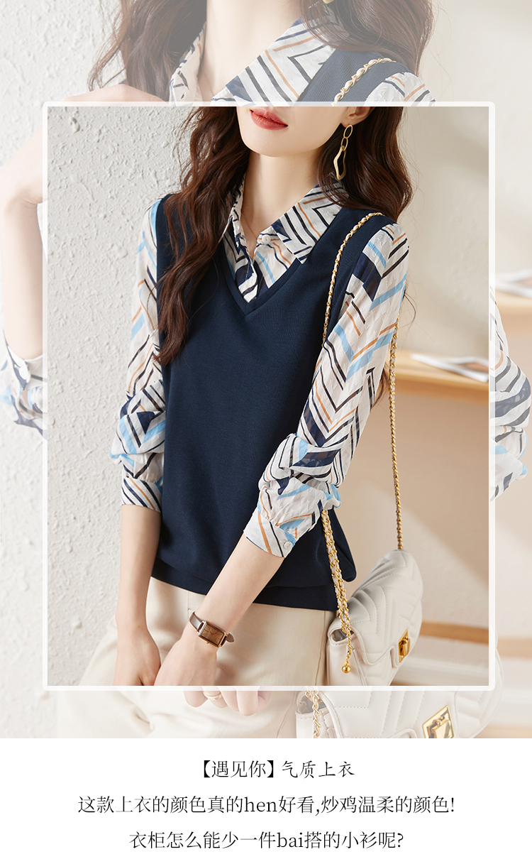 MY15919# 假两件卫衣女设计感小众洋气长袖衬衫领上衣女裝貨源服裝批發