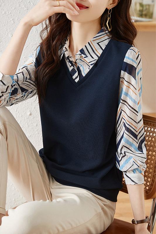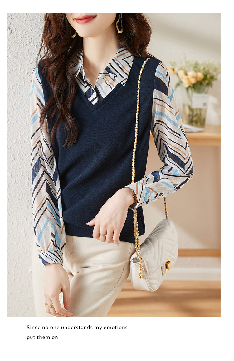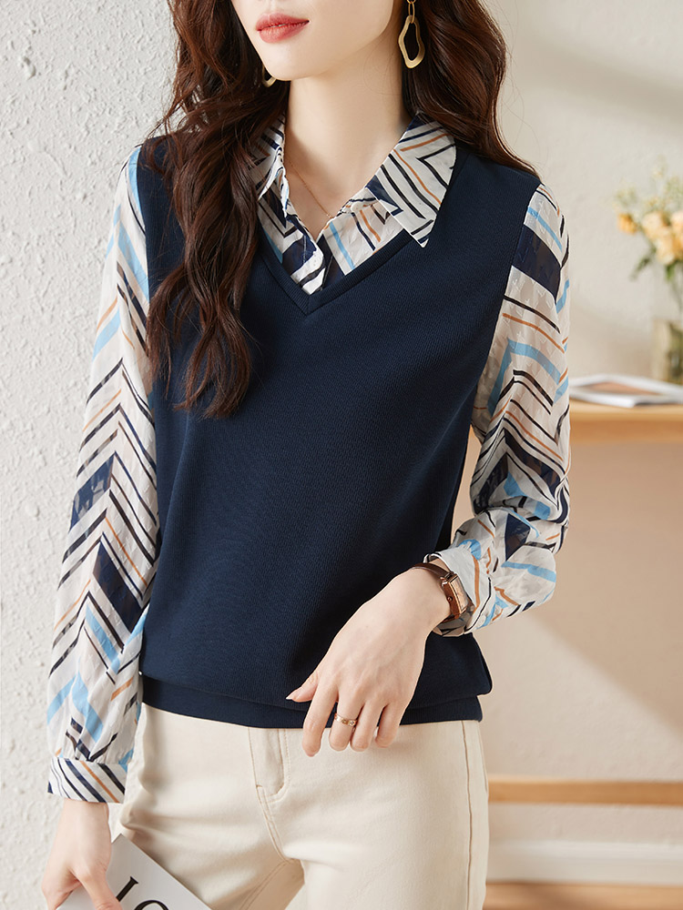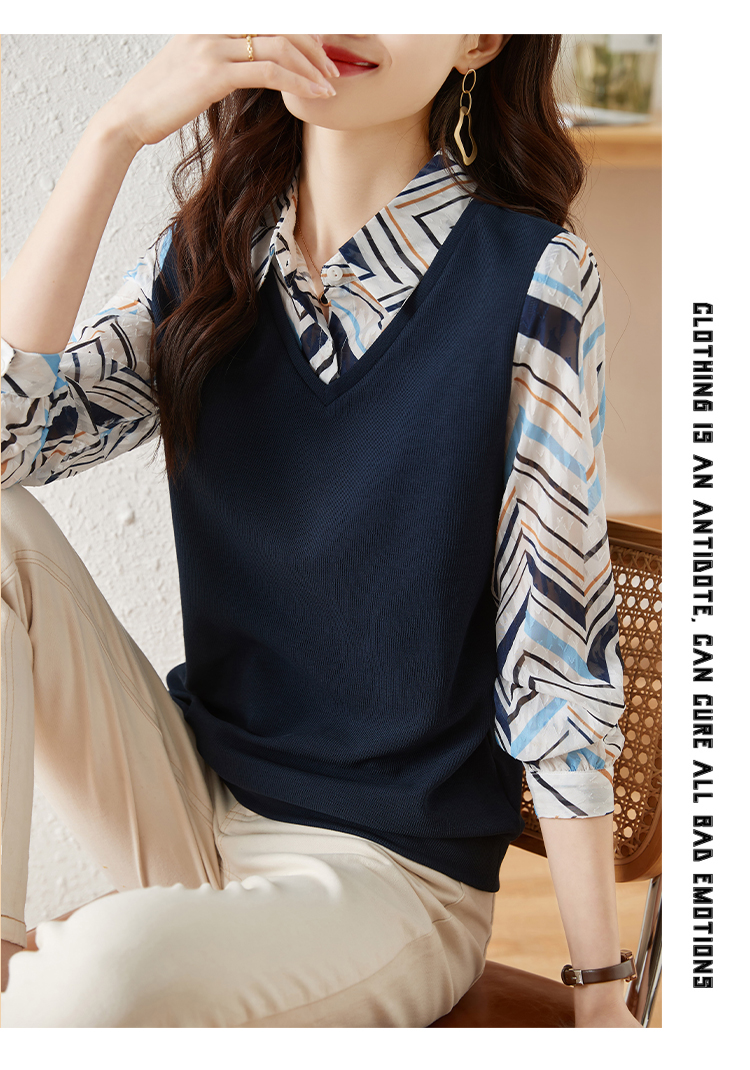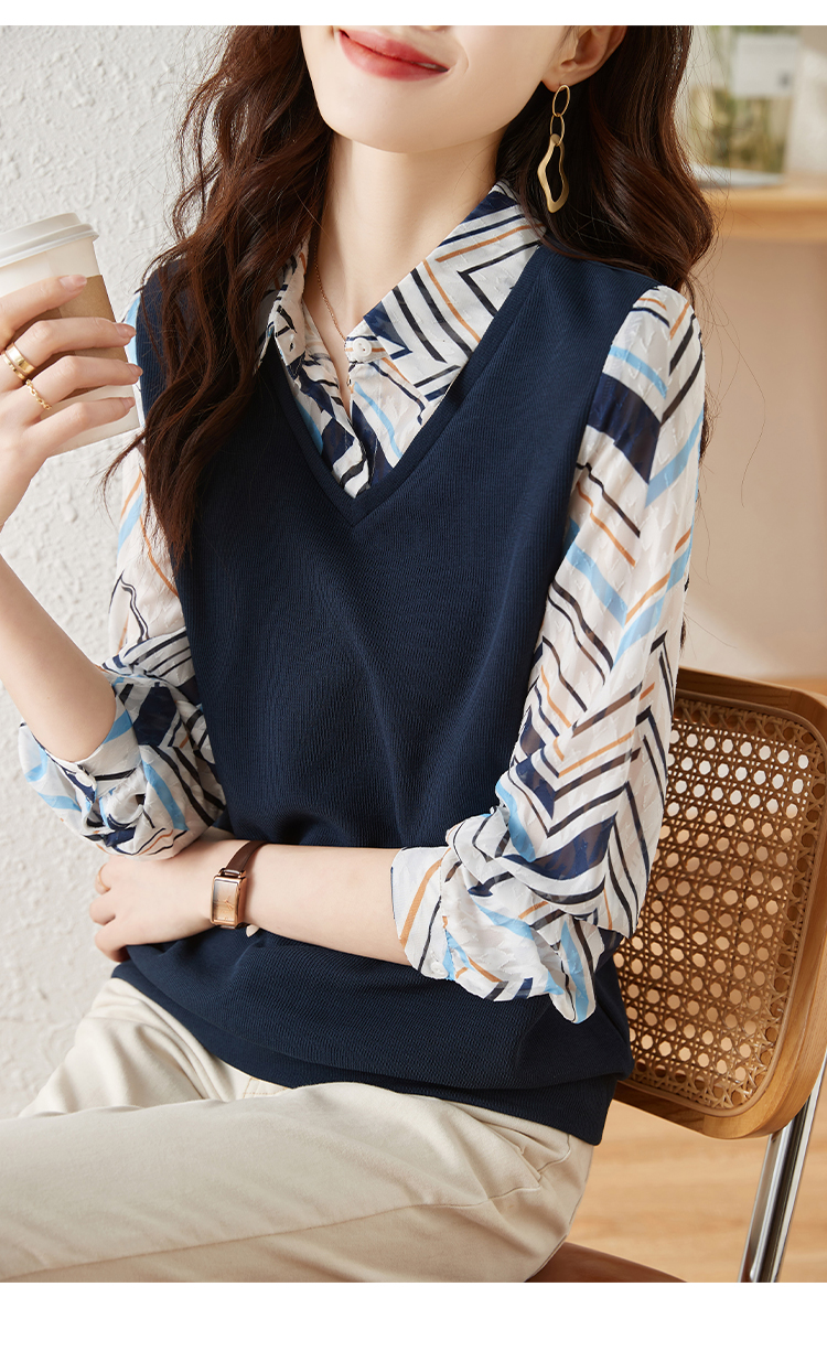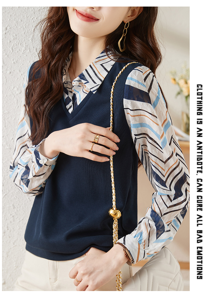 MY15919# 假两件卫衣女设计感小众洋气长袖衬衫领上衣女裝貨源服裝批發