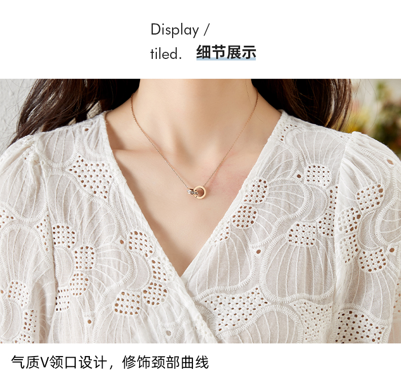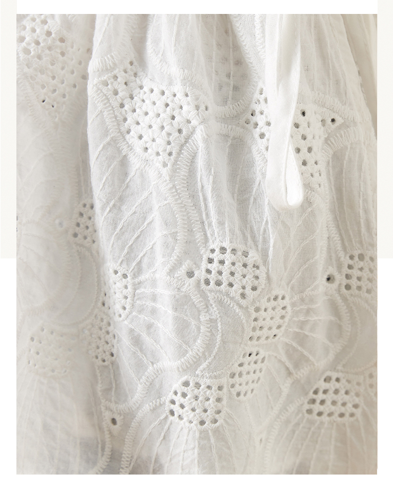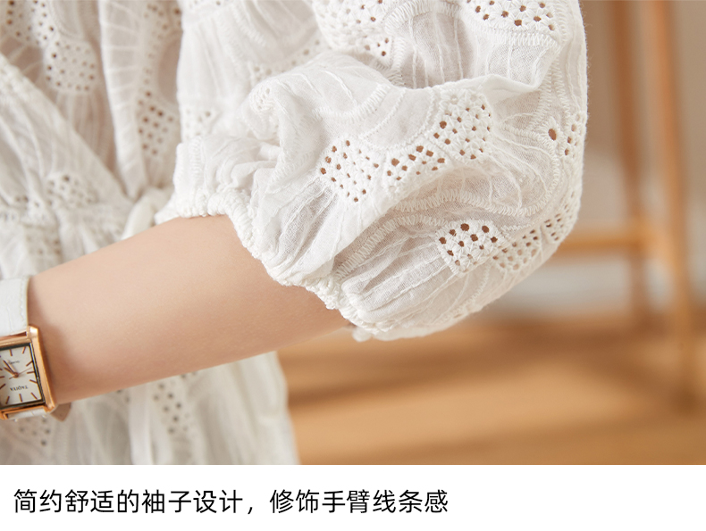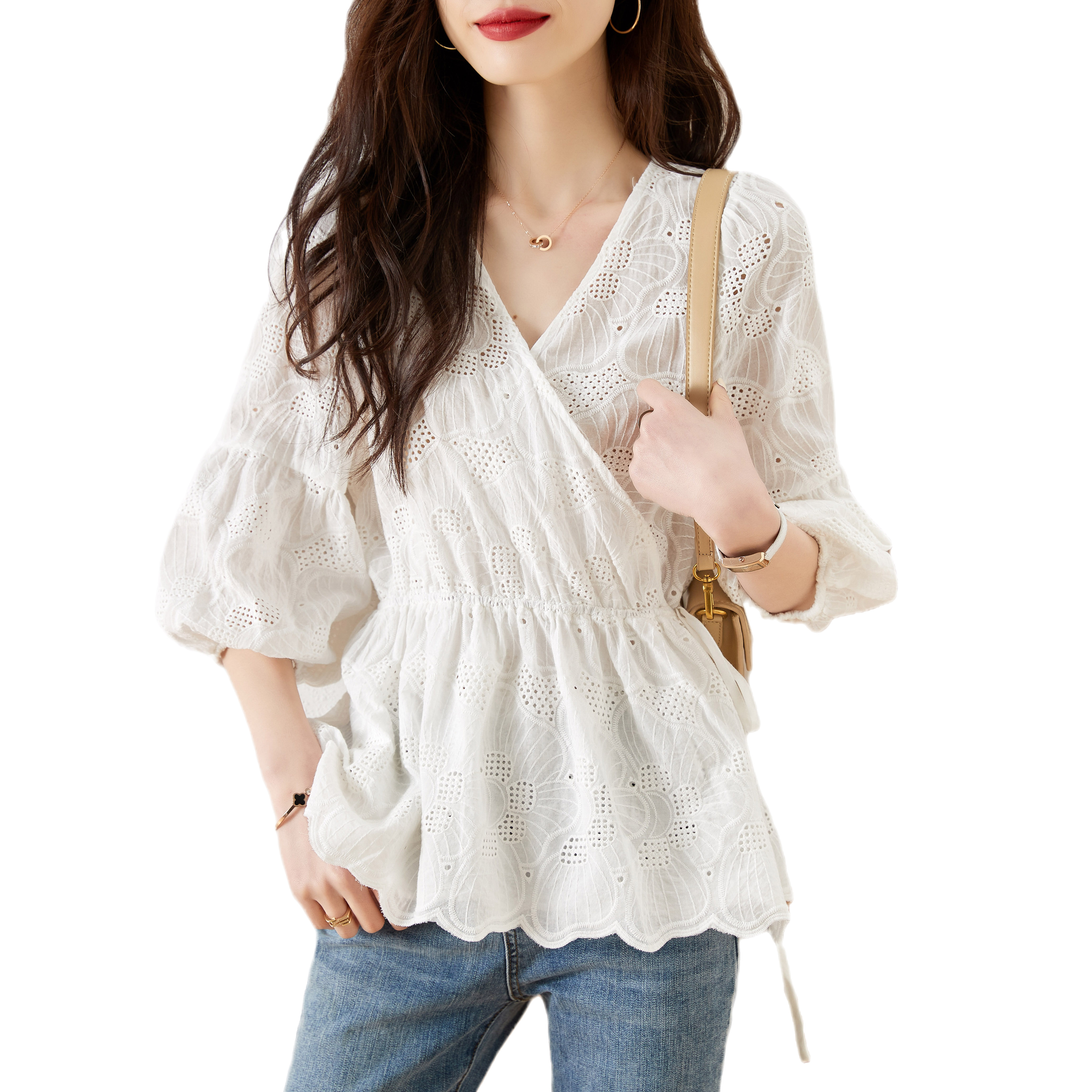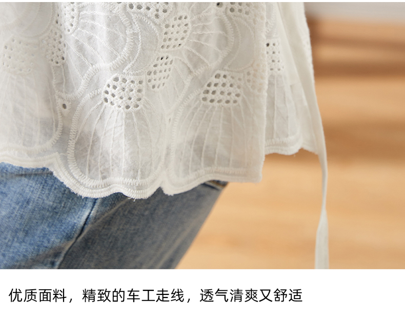 MY15930# 镂空刺绣V领雪纺上衣新款女宽松洋气长袖收腰娃娃衫女裝貨源服裝批發