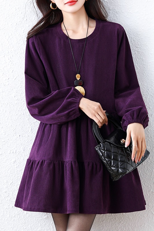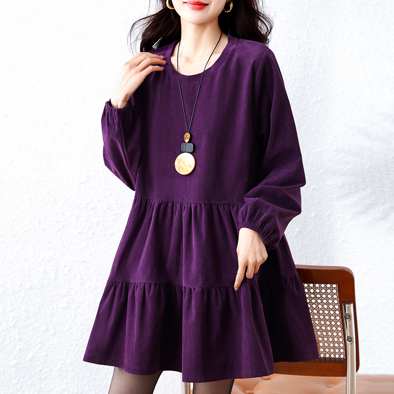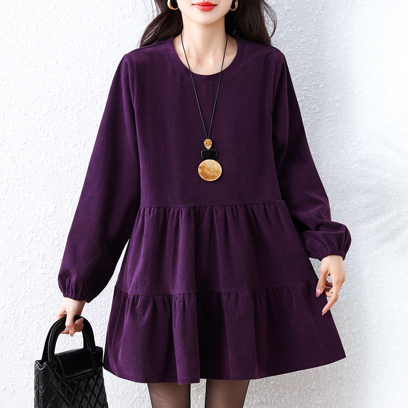 MY15931# 大码女装新款圆领雪尼尔显瘦百搭高级感上衣裙女裝貨源服裝批發